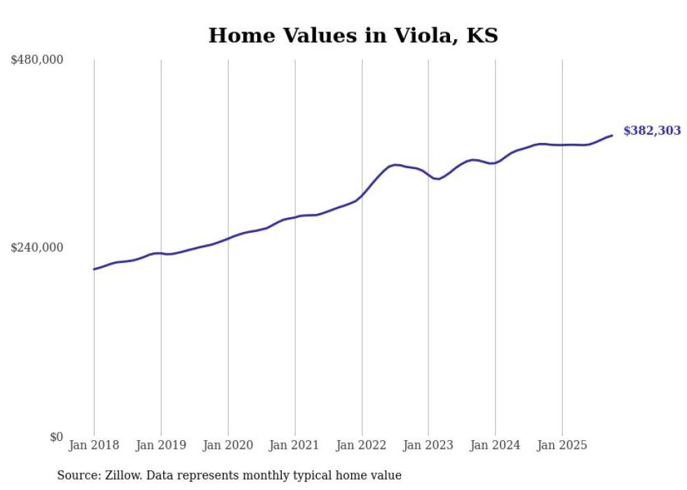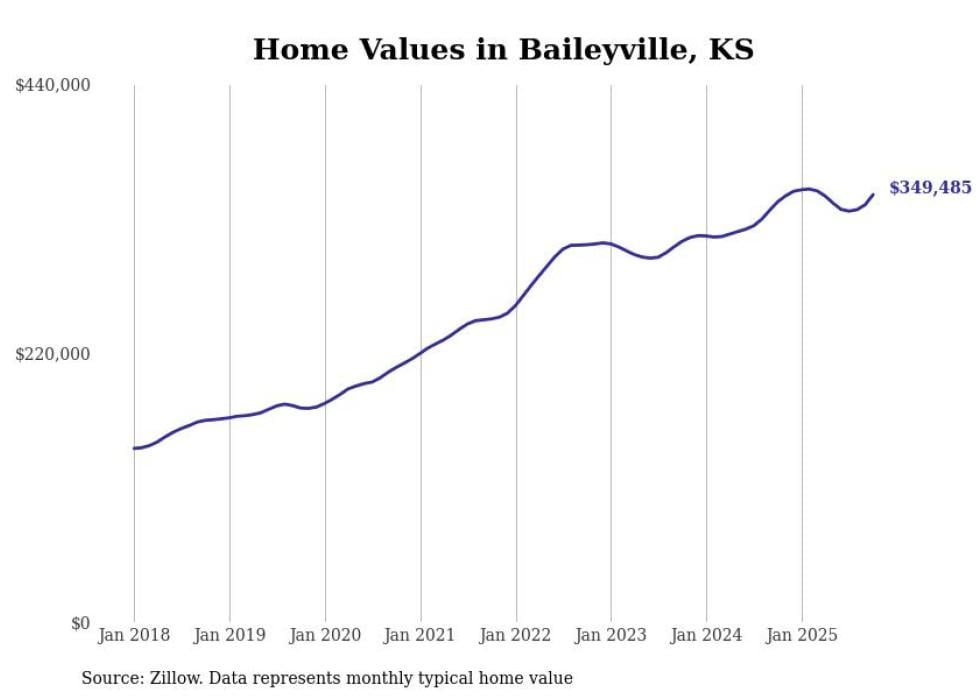 Stacker compiled a list of cities with the most expensive homes in Kansas using data from Zillow. Cities are ranked by the Zillow Home Values Index for all homes as of October 2025. The charts in this story were created automatically using Matplotlib.