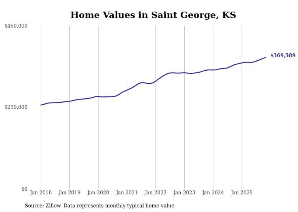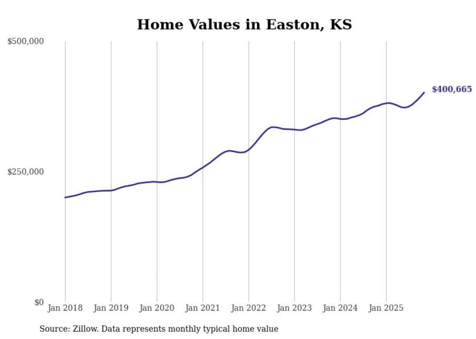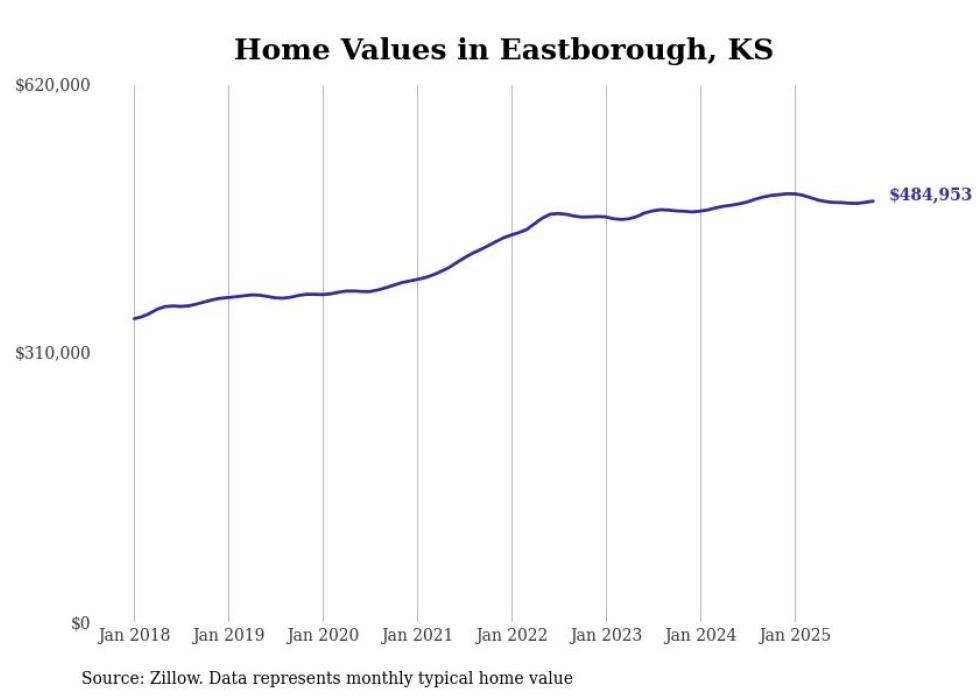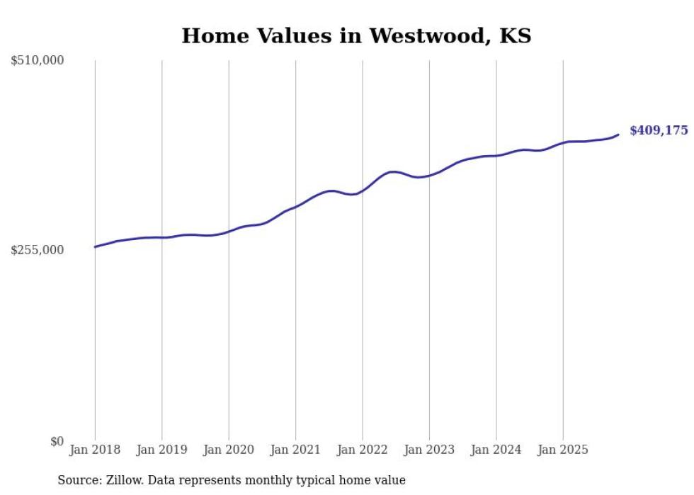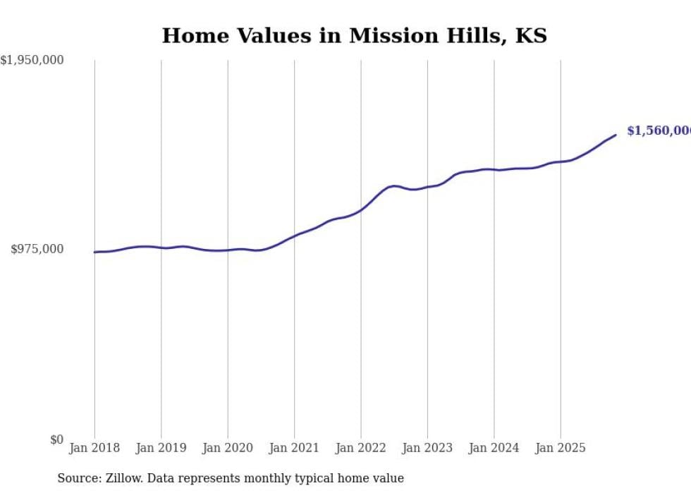 Stacker compiled a list of cities with the most expensive homes in Kansas using data from Zillow. Cities are ranked by the Zillow Home Values Index for all homes as of November 2025. The charts in this story were created automatically using Matplotlib.