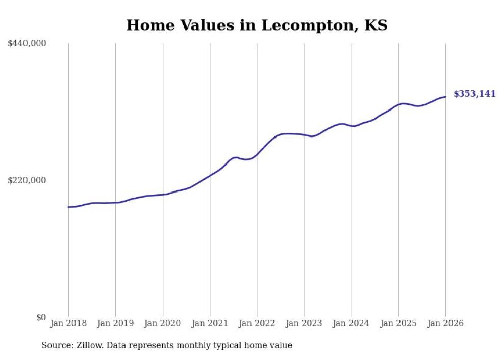 Stacker compiled a list of cities with the most expensive homes in the Lawrence, KS metro area using data from Zillow. Charts show the monthly typical home value since January 2018.