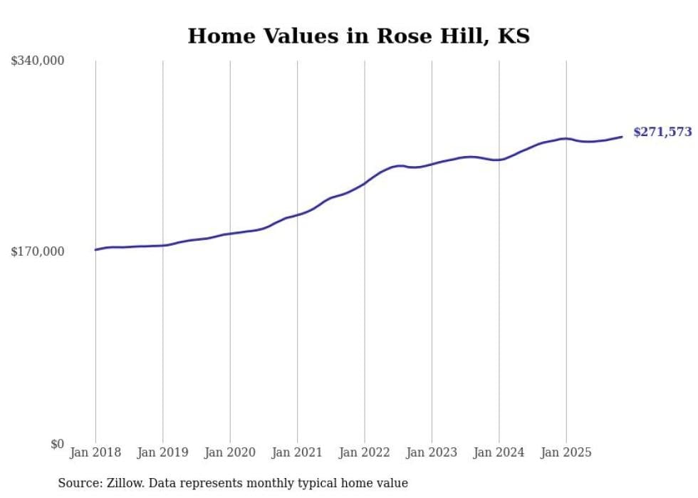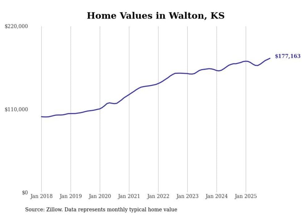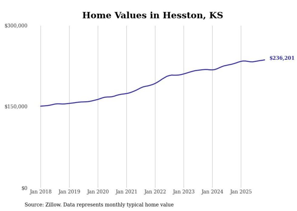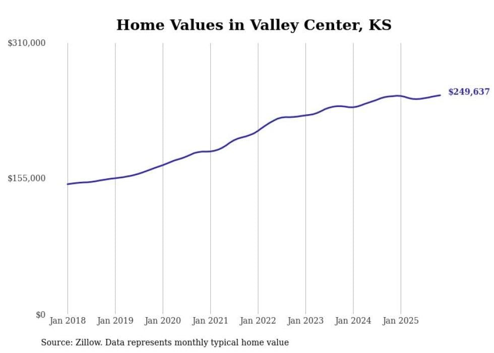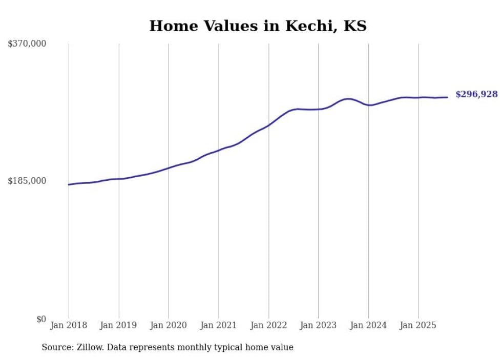 Stacker compiled a list of cities with the most expensive homes in the Wichita, KS metro area using data from Zillow. Charts show the monthly typical home value since January 2018.