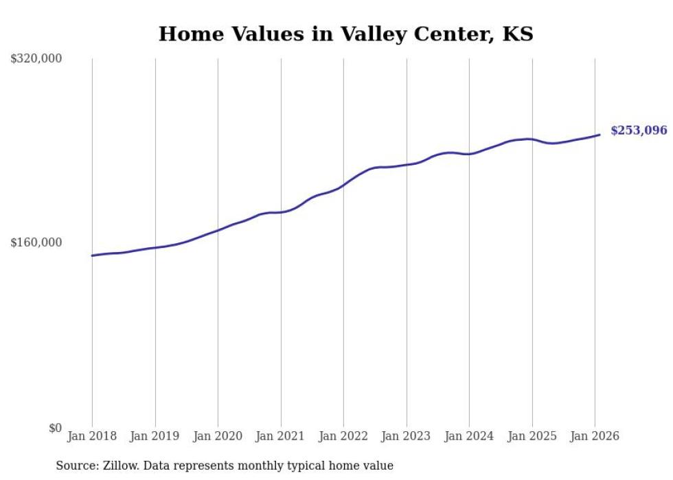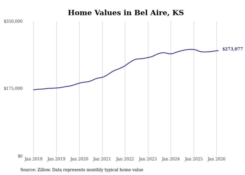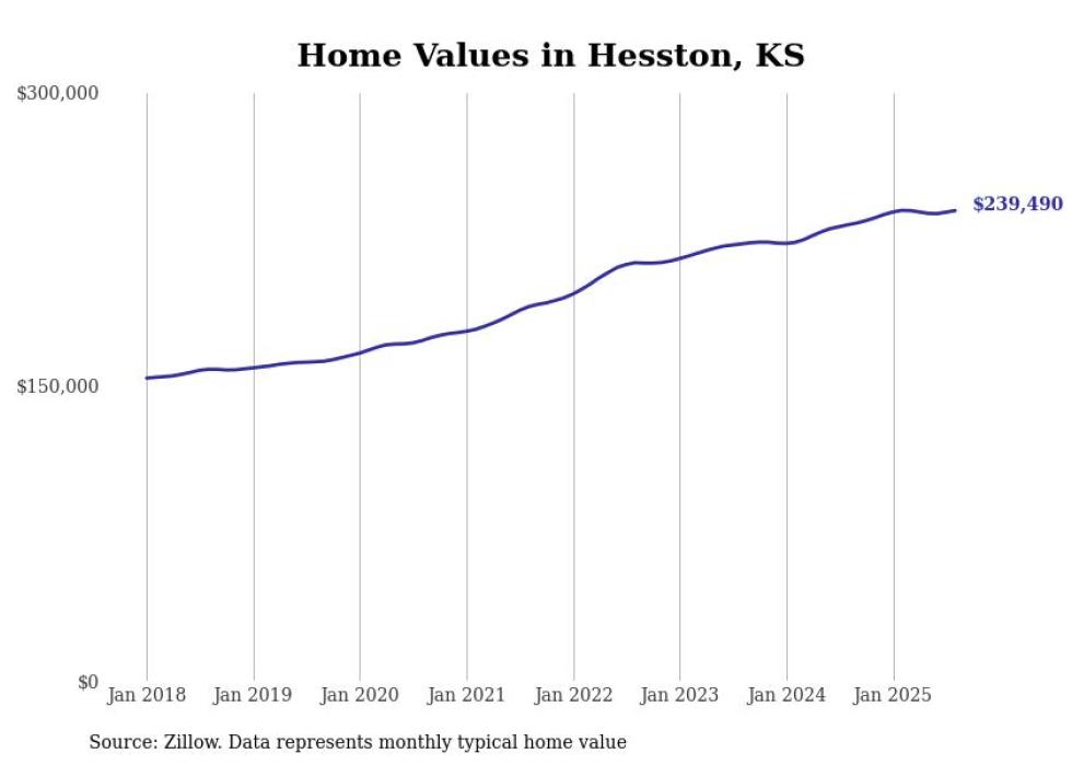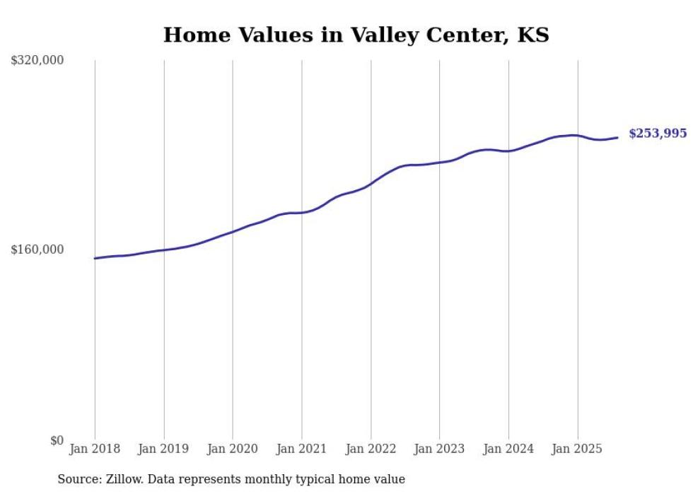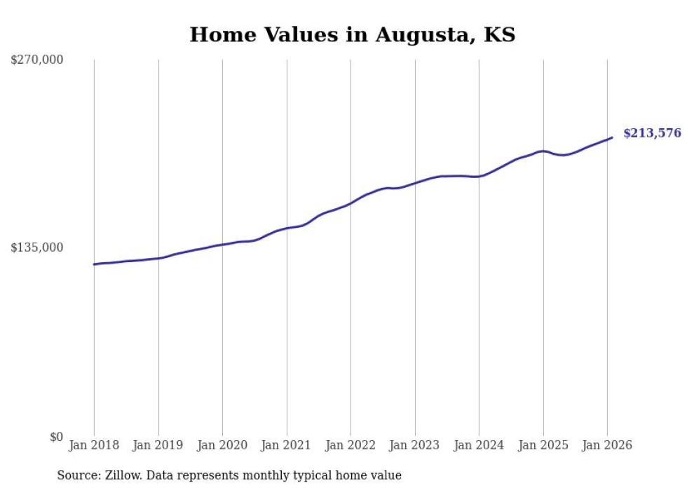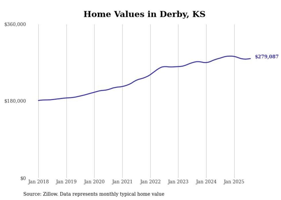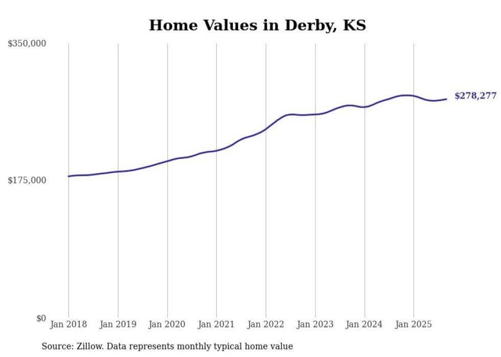 Stacker compiled a list of cities with the most expensive homes in the Wichita metro area using data from Zillow. Charts show the monthly typical home value since January 2018. Data was available for 47 cities and towns.