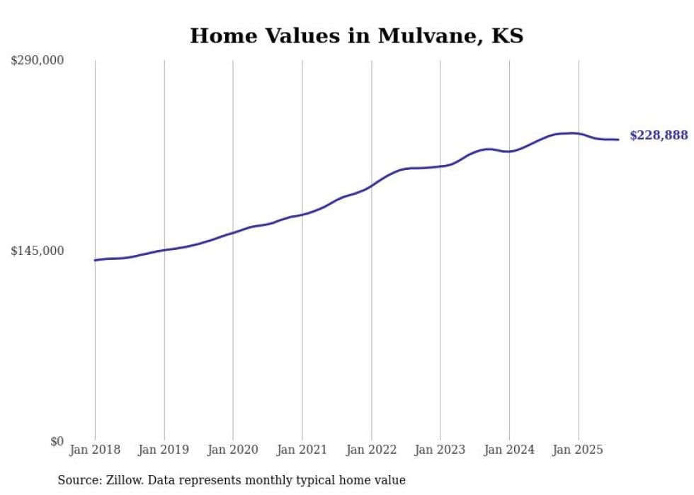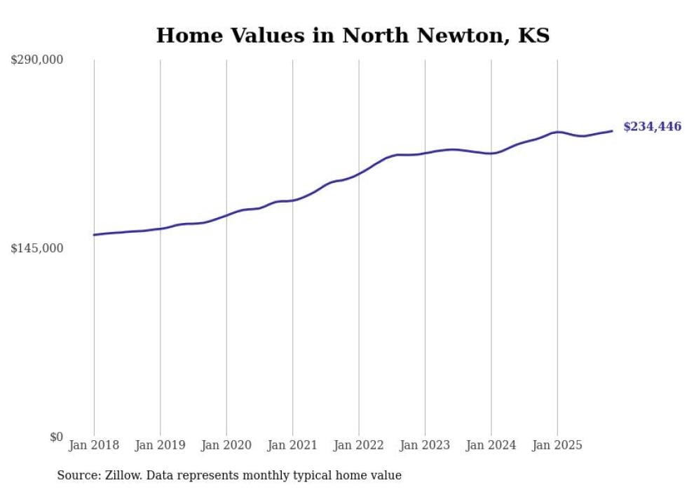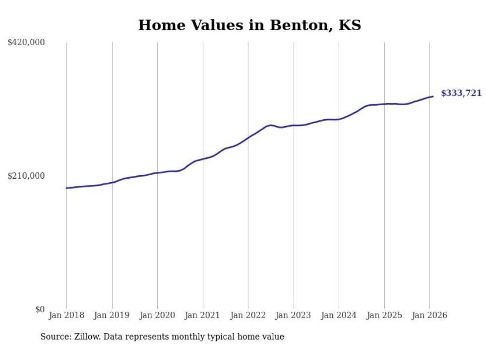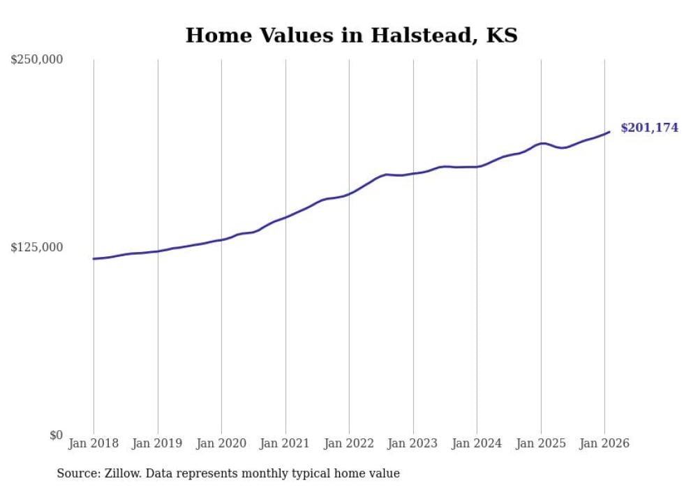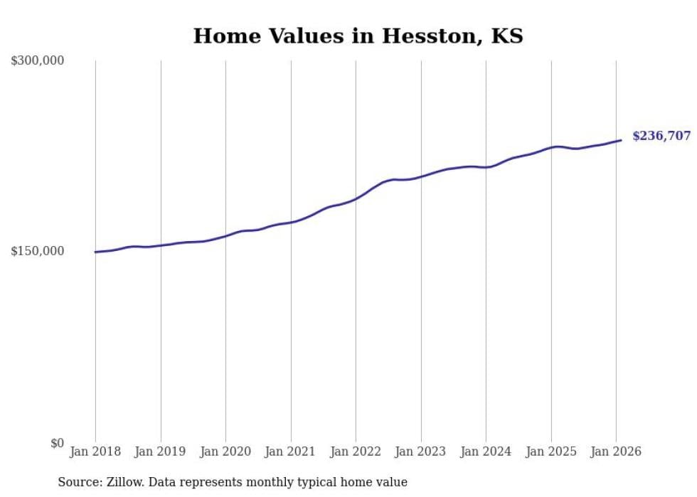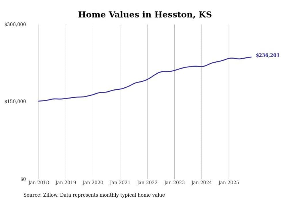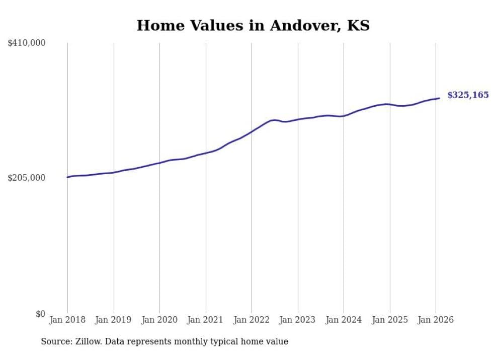 Stacker compiled a list of cities with the most expensive homes in the Wichita metro area using data from Zillow. Charts show the monthly typical home value since January 2018. Data was available for 47 cities and towns.