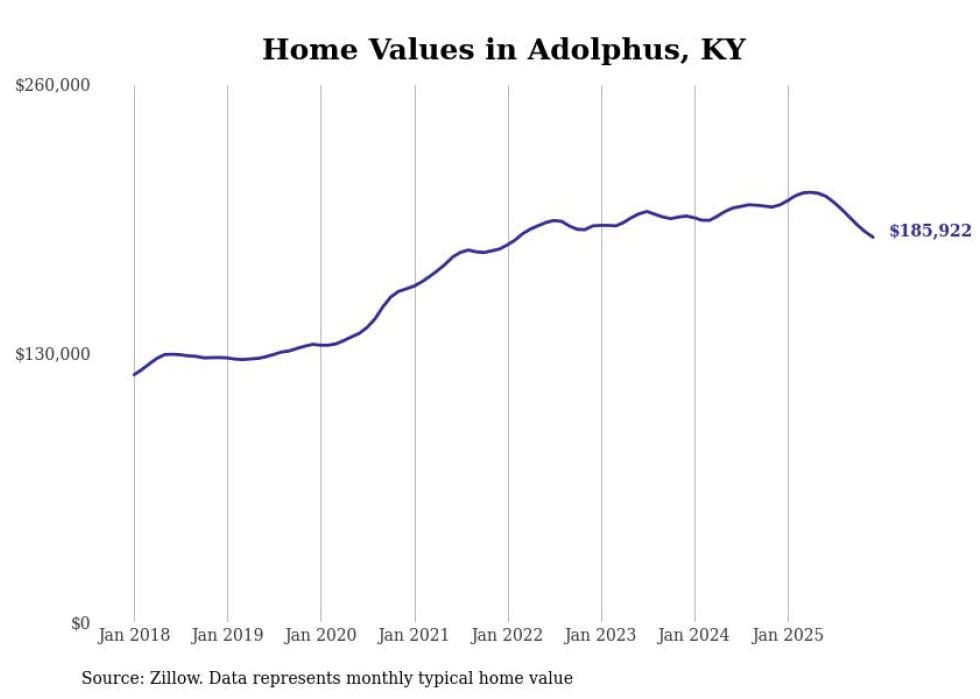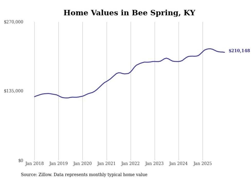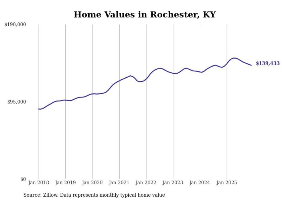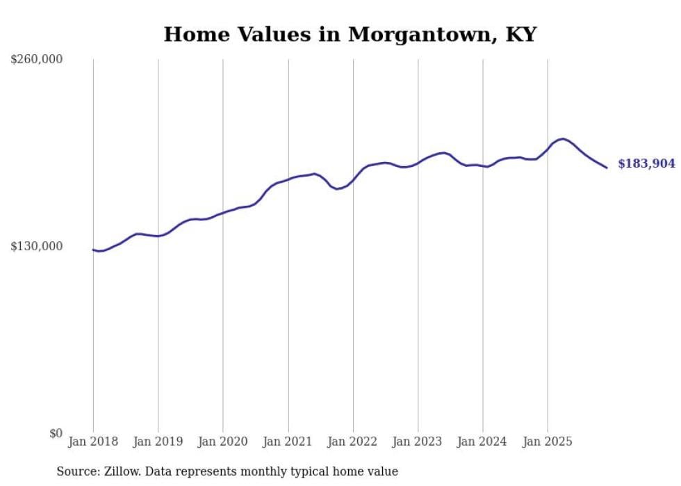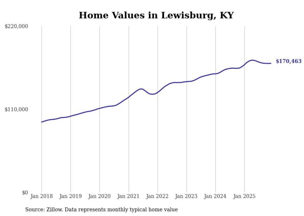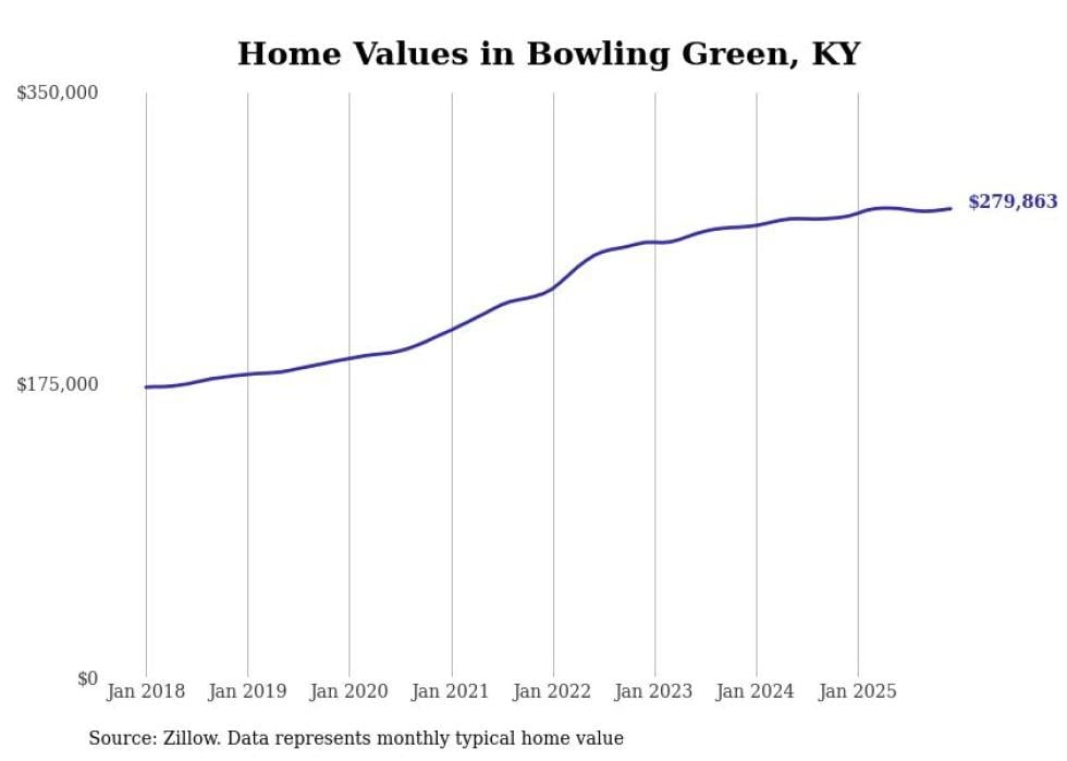 Stacker compiled a list of cities with the most expensive homes in the Bowling Green metro area using data from Zillow. Charts show the monthly typical home value since January 2018. All 18 cities and towns with data available were included in the list.