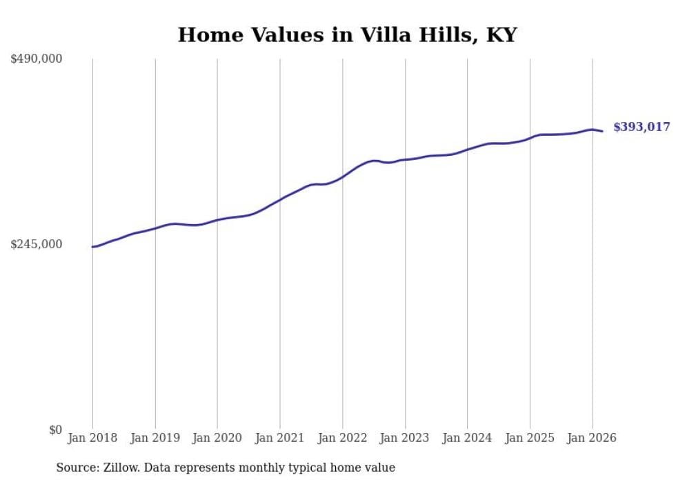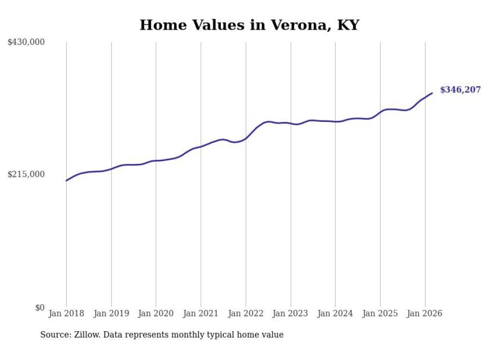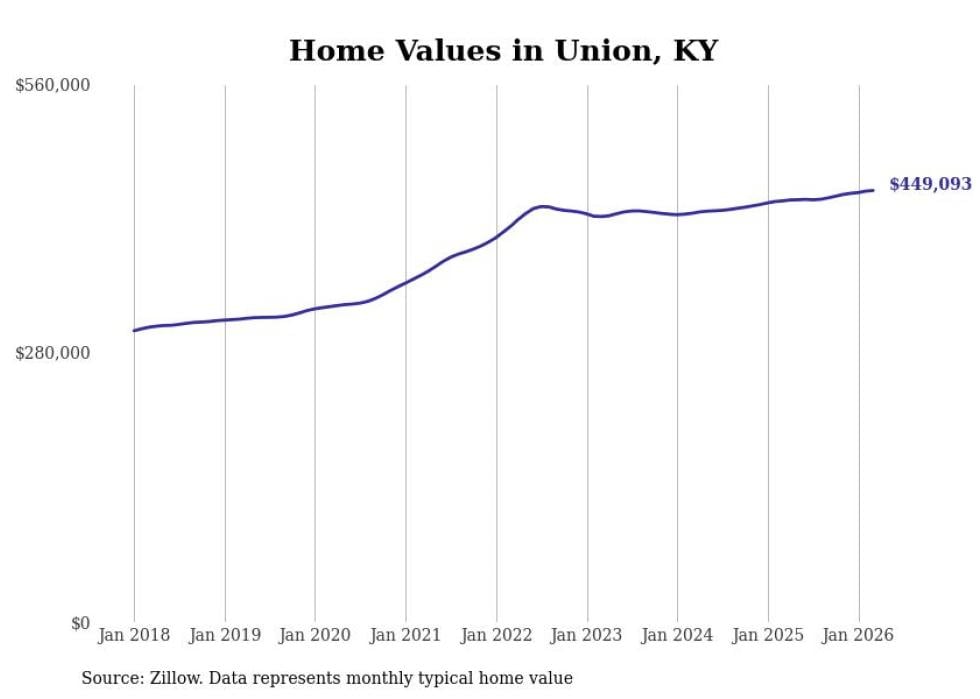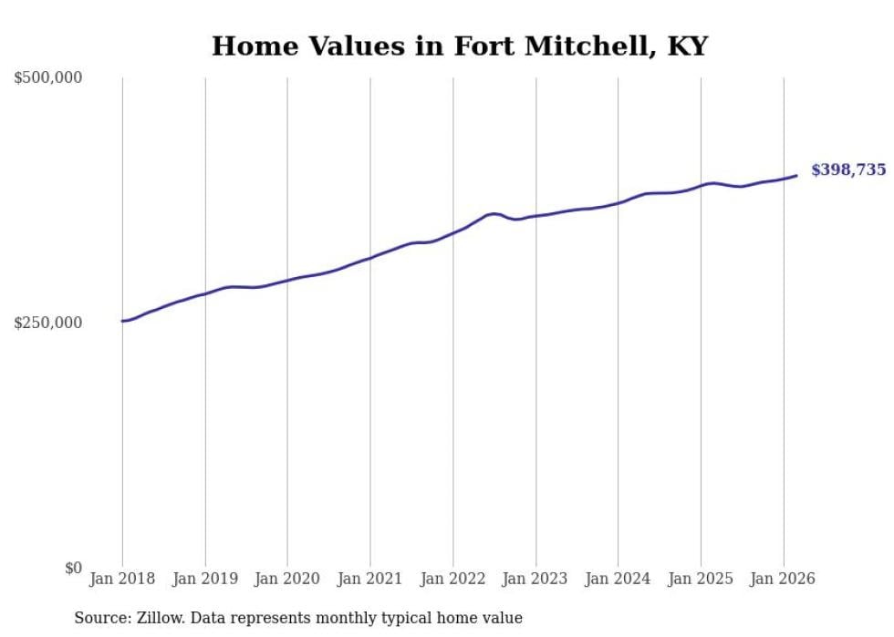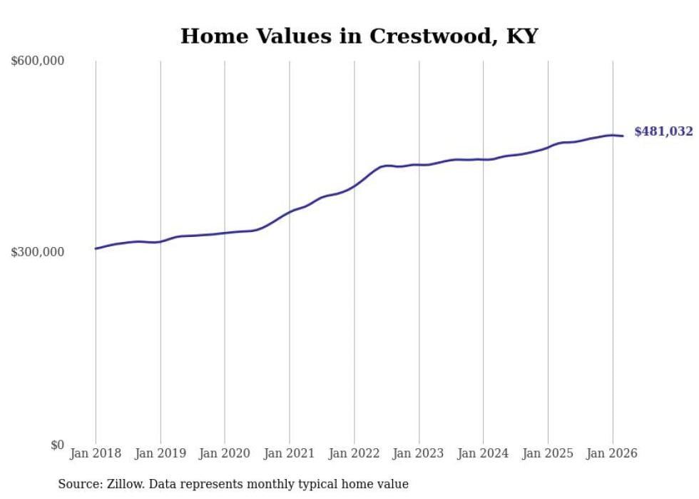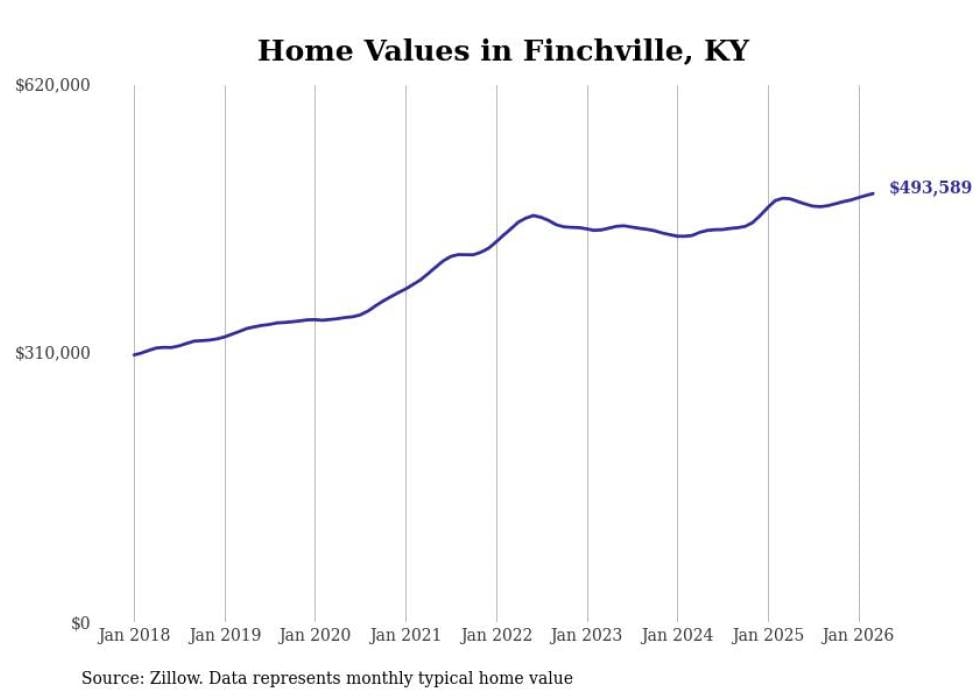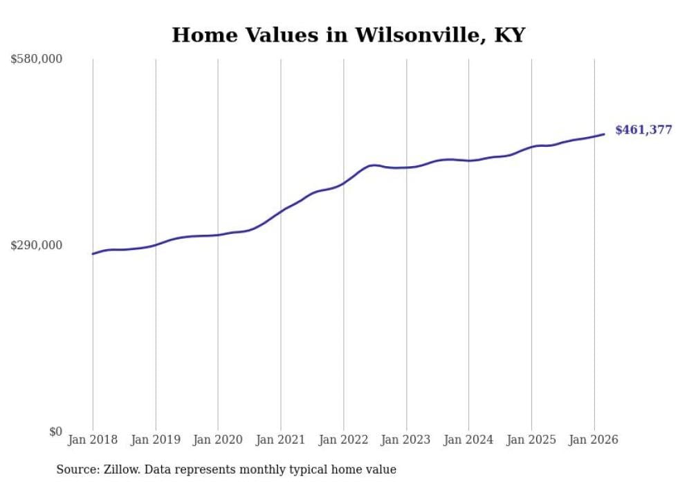 Stacker compiled a list of cities with the most expensive homes in Kentucky using data from Zillow. Cities are ranked by the Zillow Home Values Index for all homes as of March 2026. The charts in this story were created automatically using Matplotlib.
