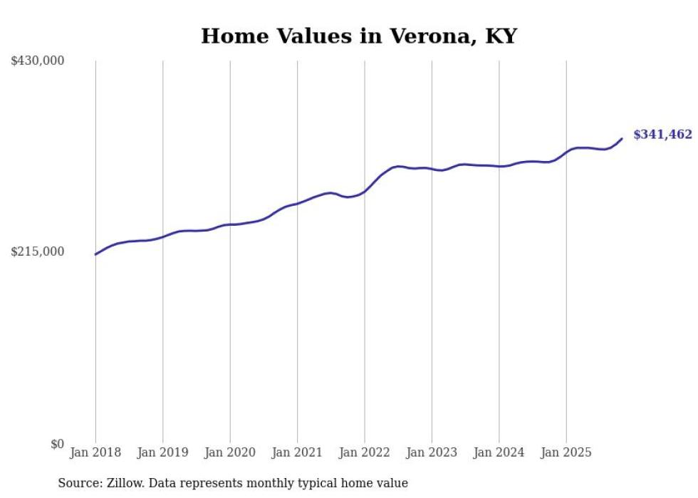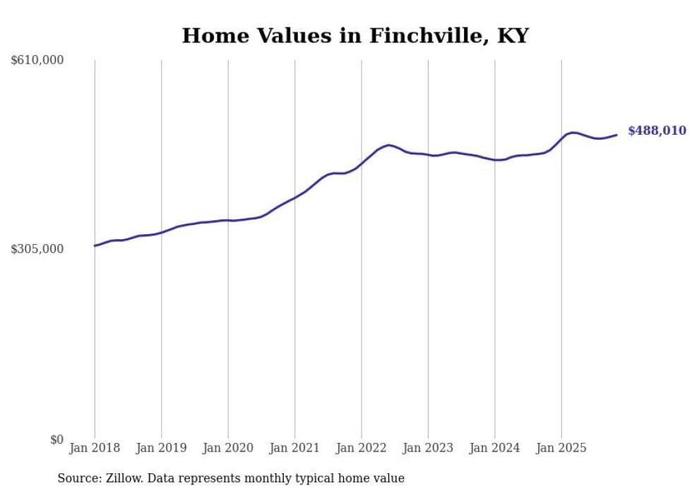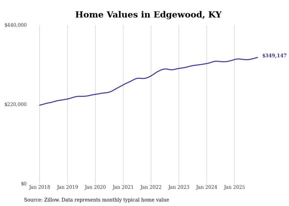 Stacker compiled a list of cities with the most expensive homes in Kentucky using data from Zillow. Cities are ranked by the Zillow Home Values Index for all homes as of November 2025. The charts in this story were created automatically using Matplotlib.
