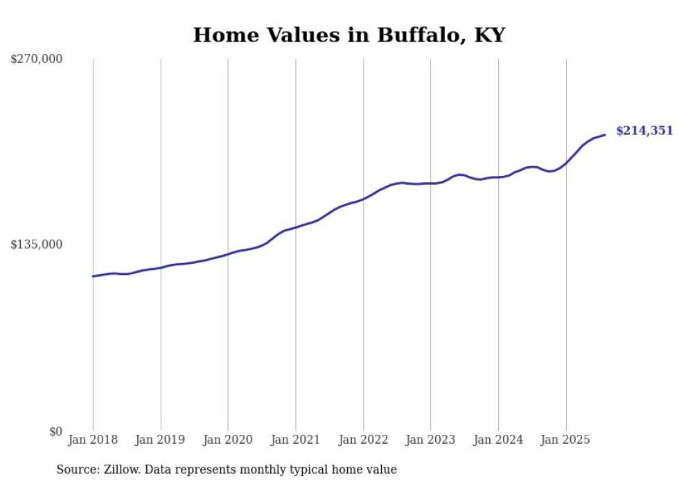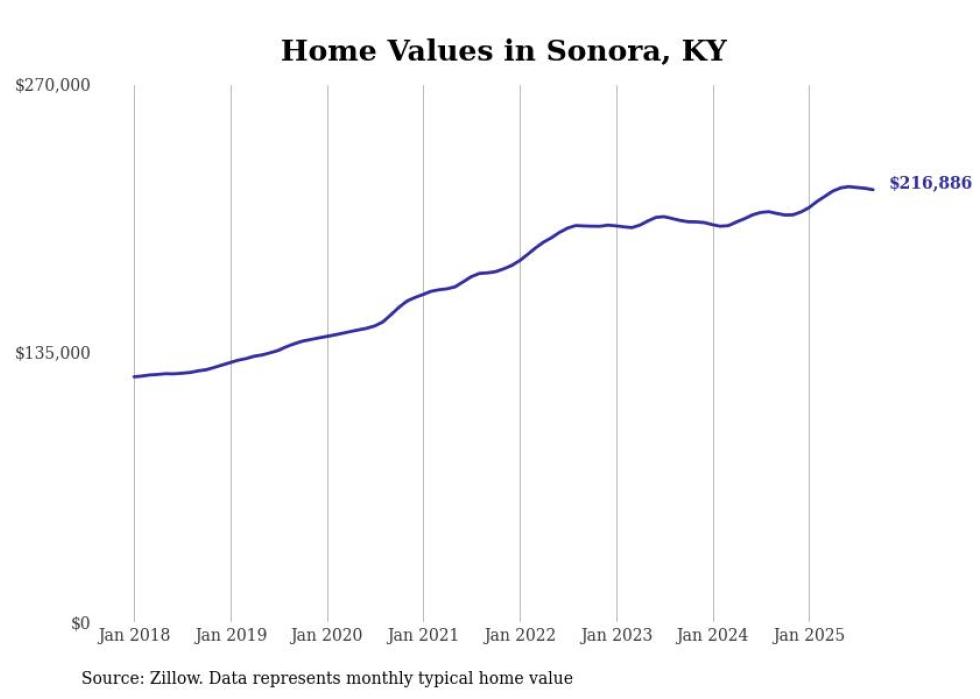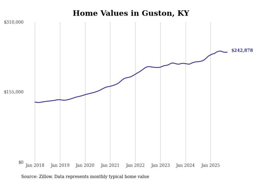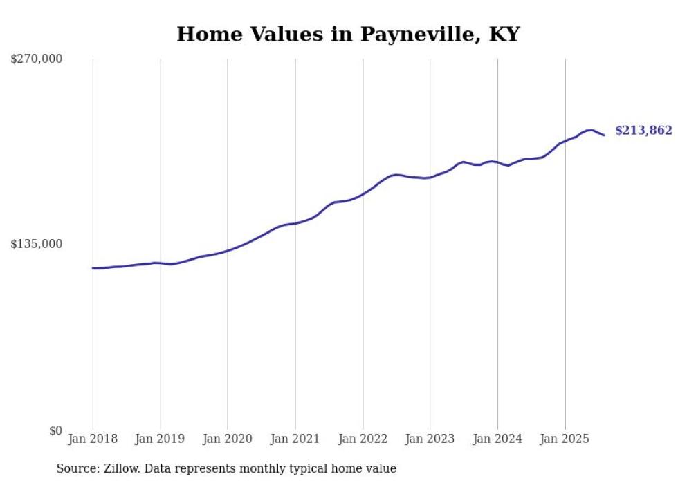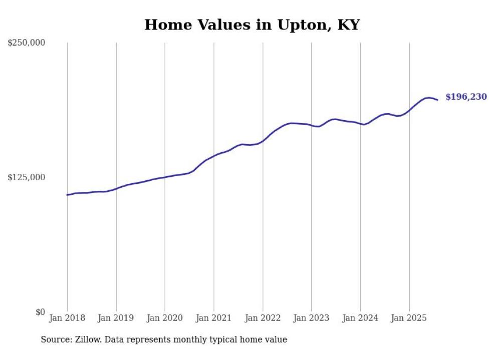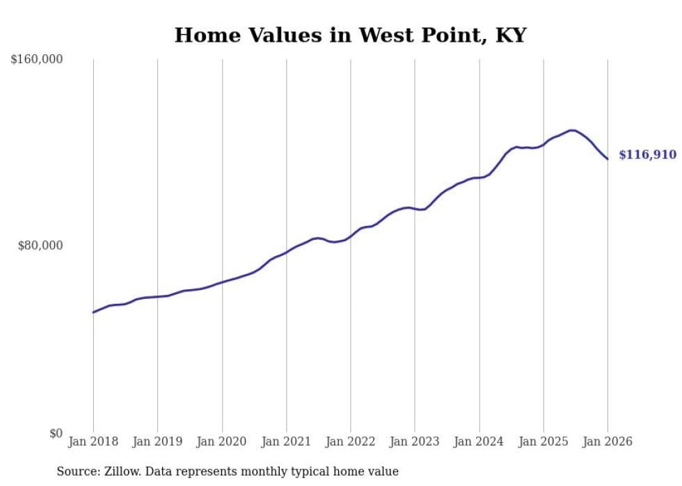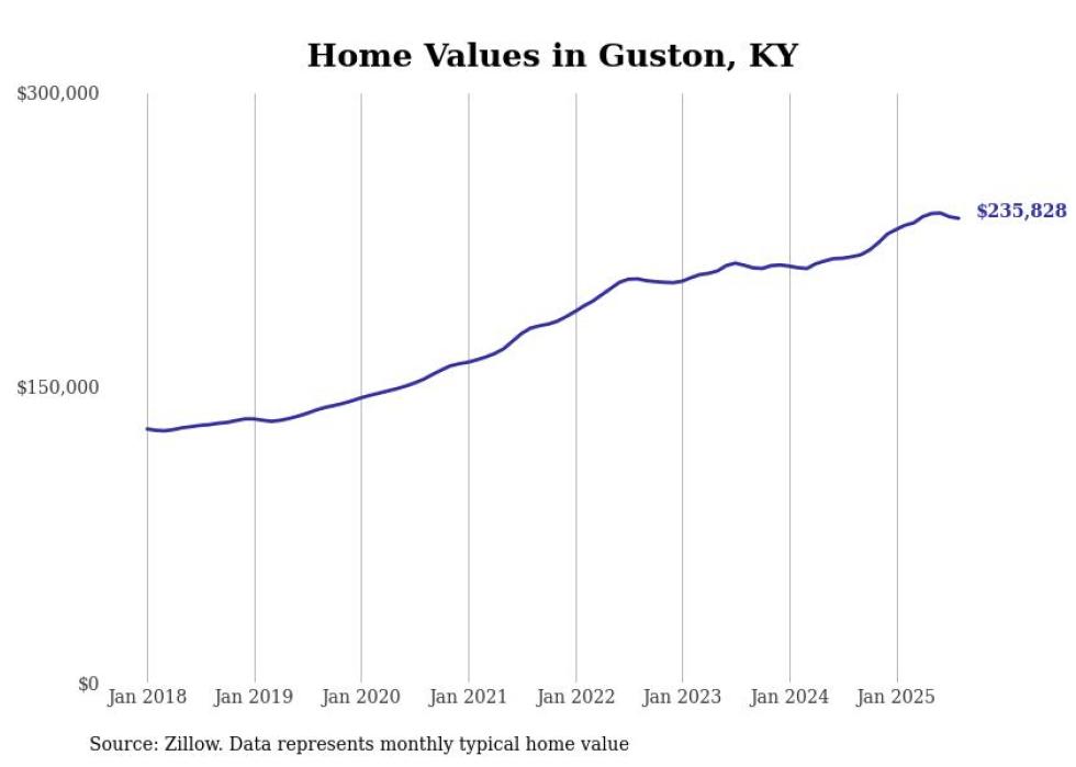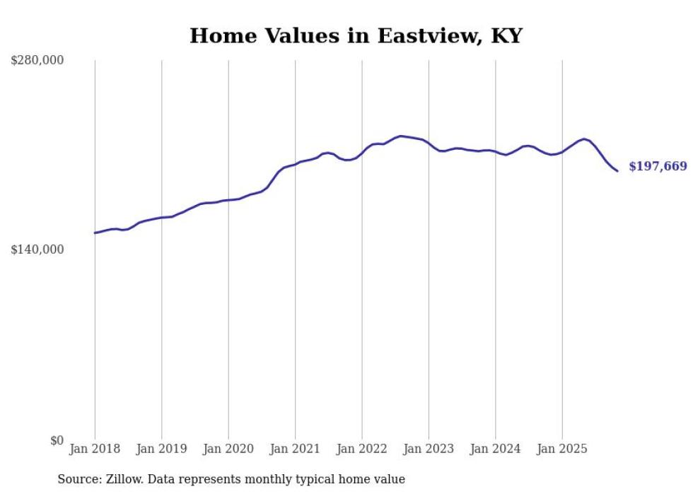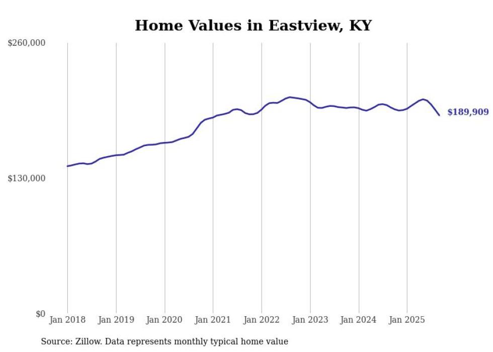 Stacker compiled a list of cities with the most expensive homes in the Elizabethtown-Fort Knox, KY metro area using data from Zillow. Charts show the monthly typical home value since January 2018.