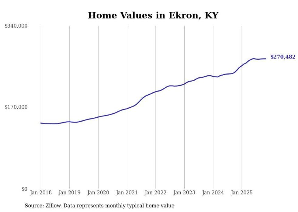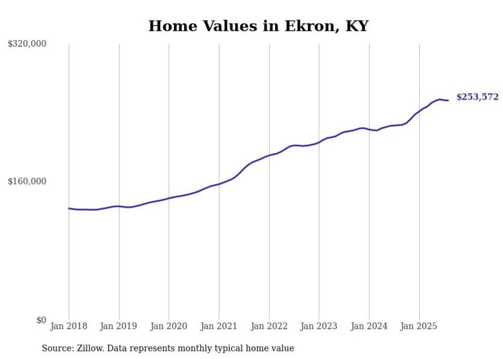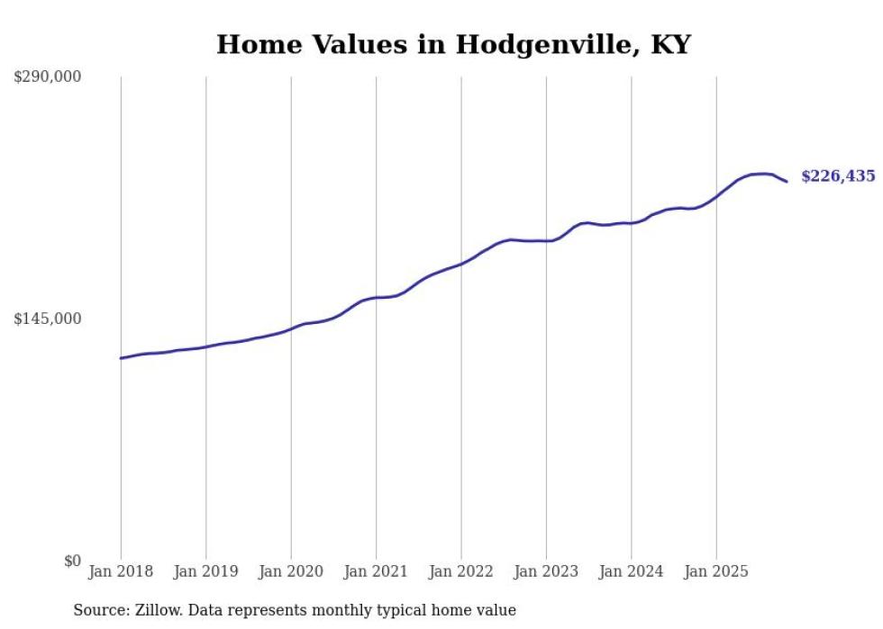 Cities with the fastest-growing home prices in the Elizabethtown metro area