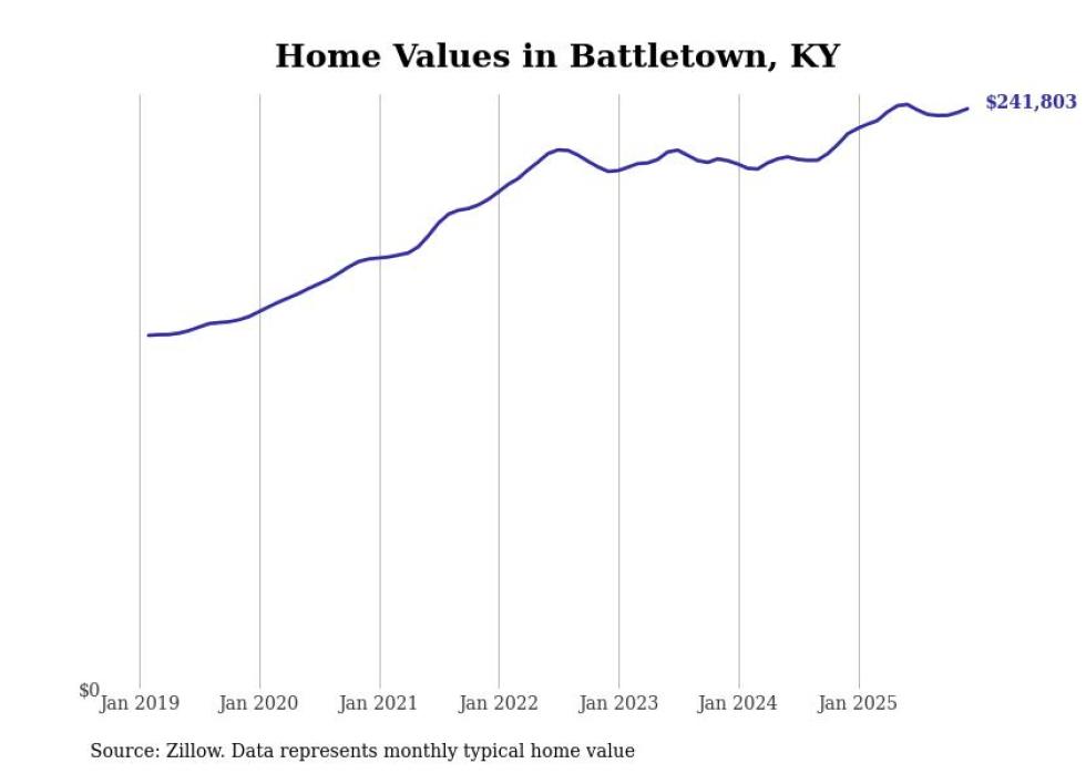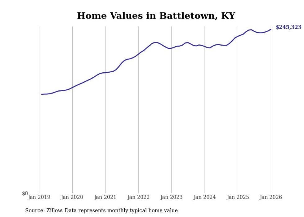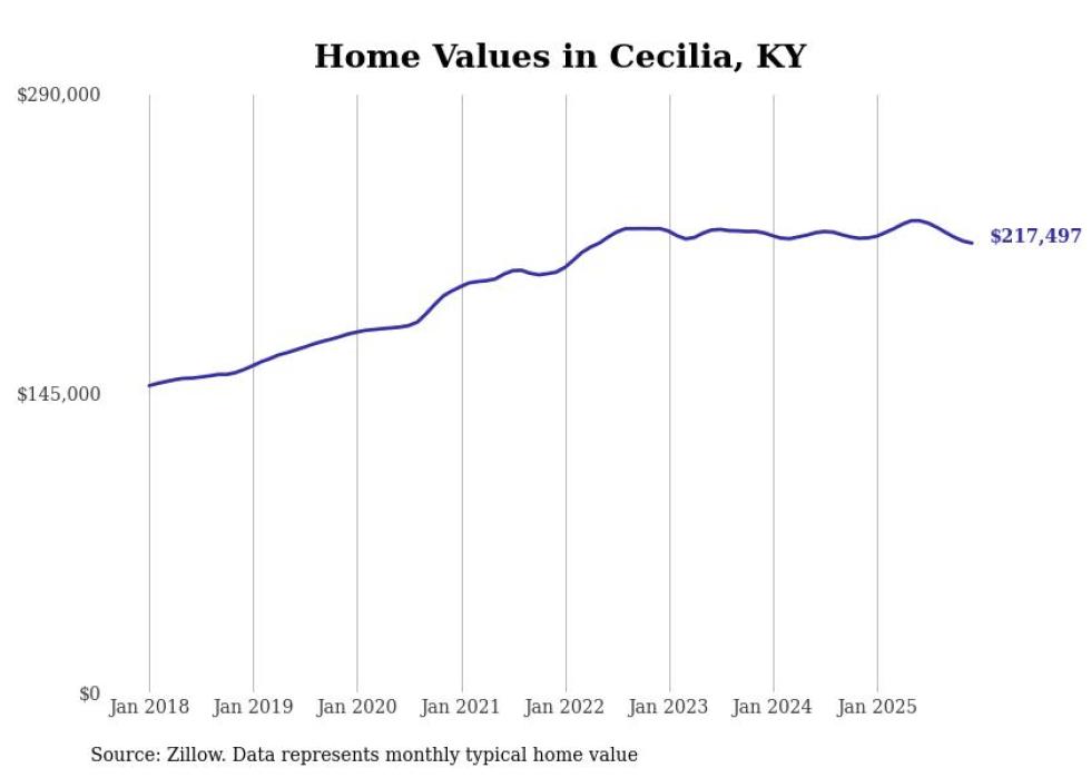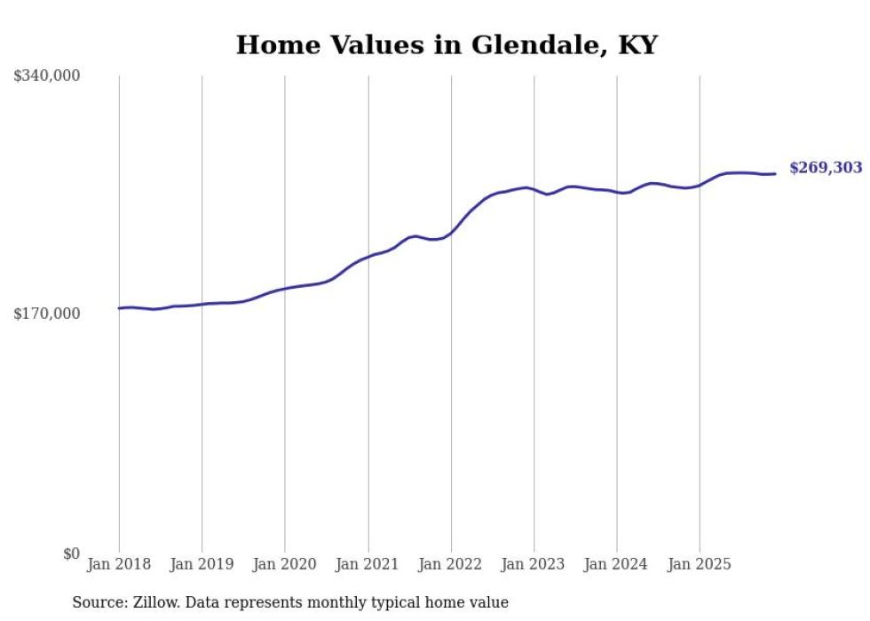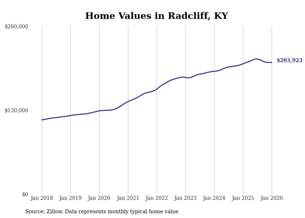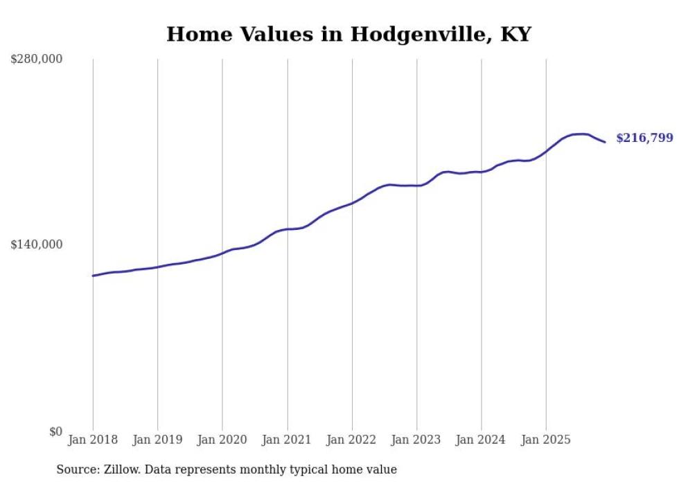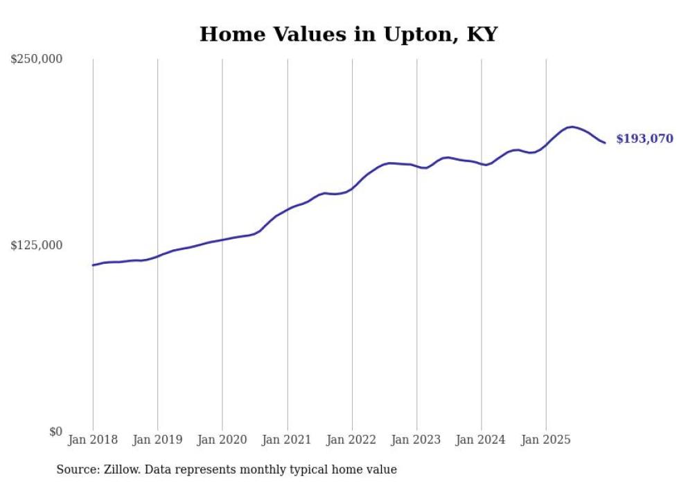 Stacker compiled a list of cities with the most expensive homes in the Elizabethtown metro area using data from Zillow. Charts show the monthly typical home value since January 2018. All 21 cities and towns with data available were included in the list.
