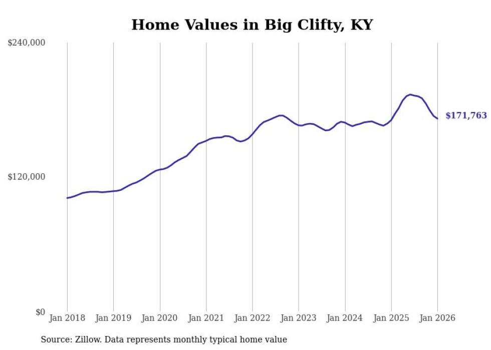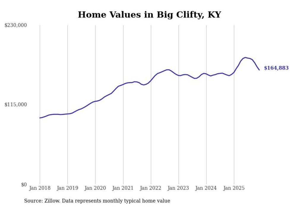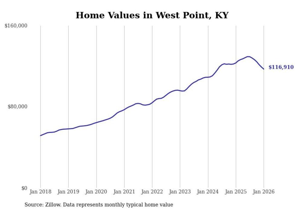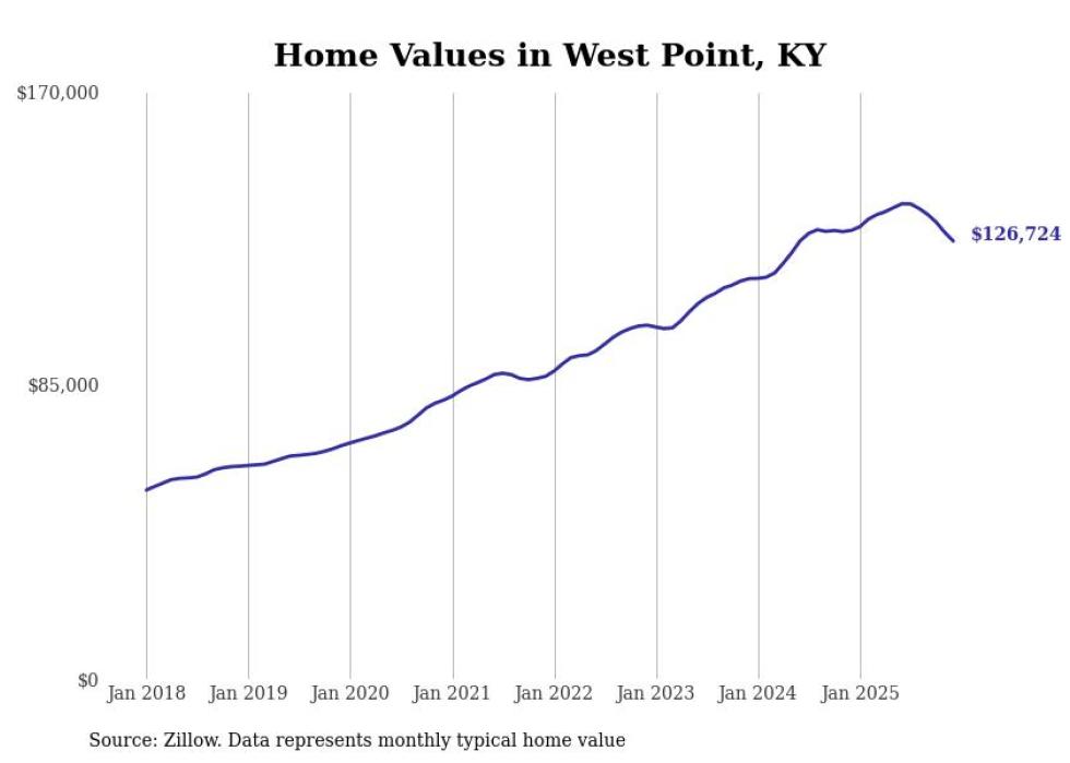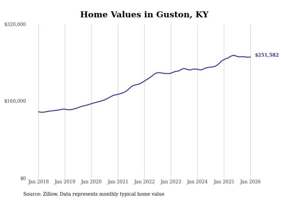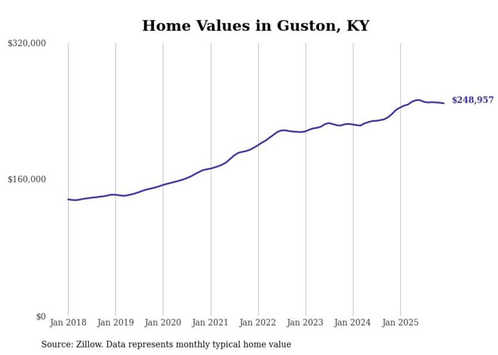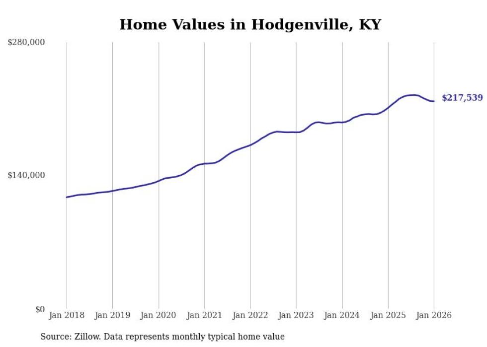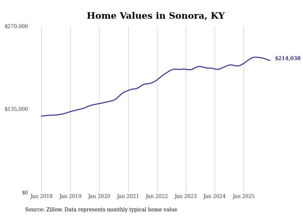 Stacker compiled a list of cities with the most expensive homes in the Elizabethtown metro area using data from Zillow. Charts show the monthly typical home value since January 2018. All 21 cities and towns with data available were included in the list.