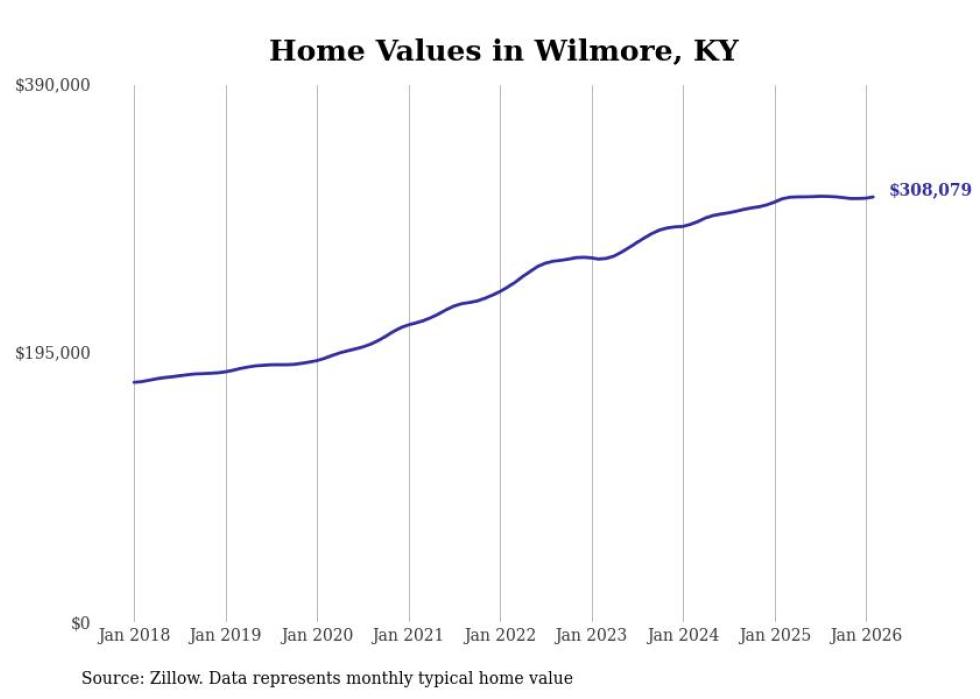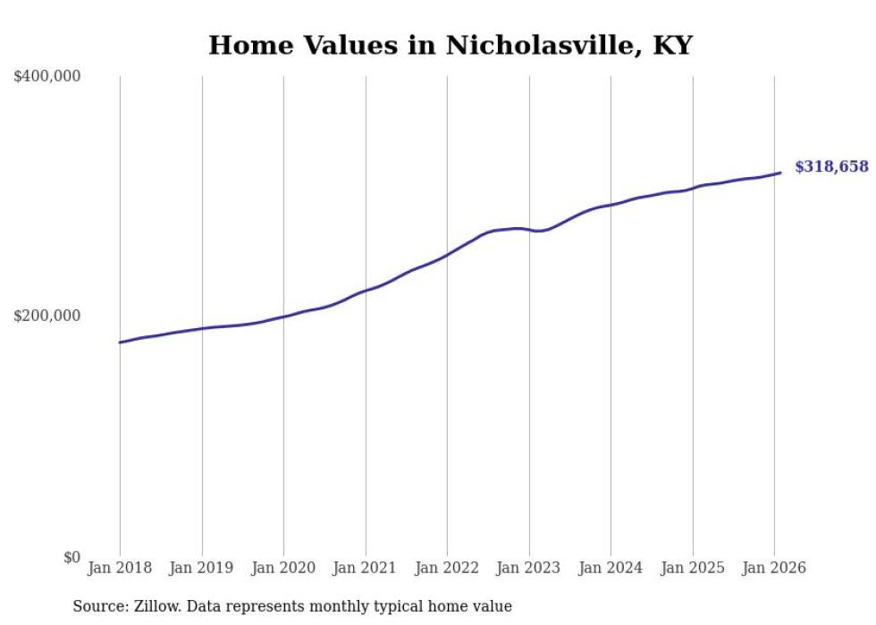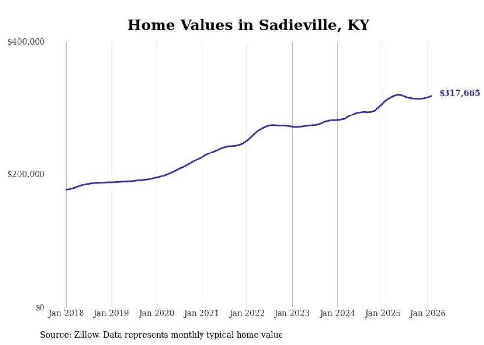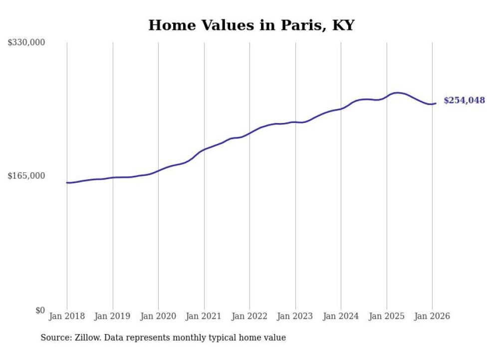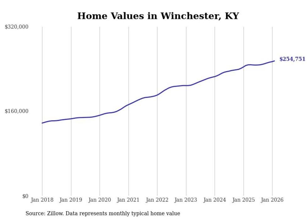 Stacker compiled a list of cities with the most expensive homes in the Lexington-Fayette, KY metro area using data from Zillow. Charts show the monthly typical home value since January 2018.
