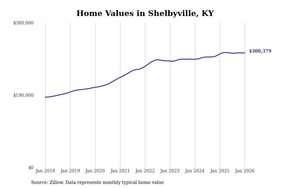 - Typical home value: $300,379