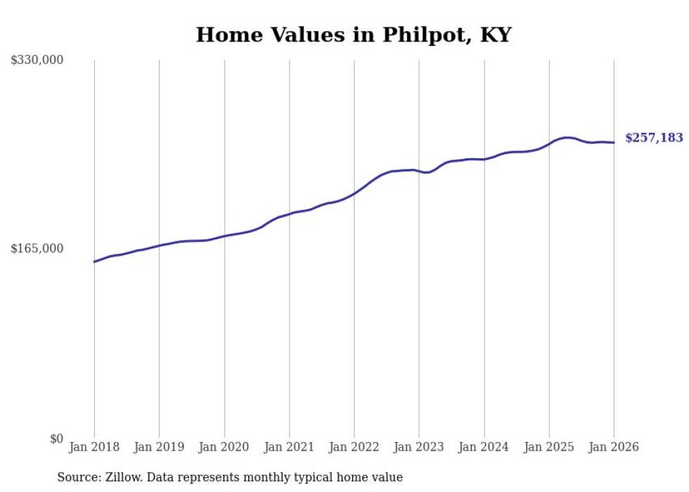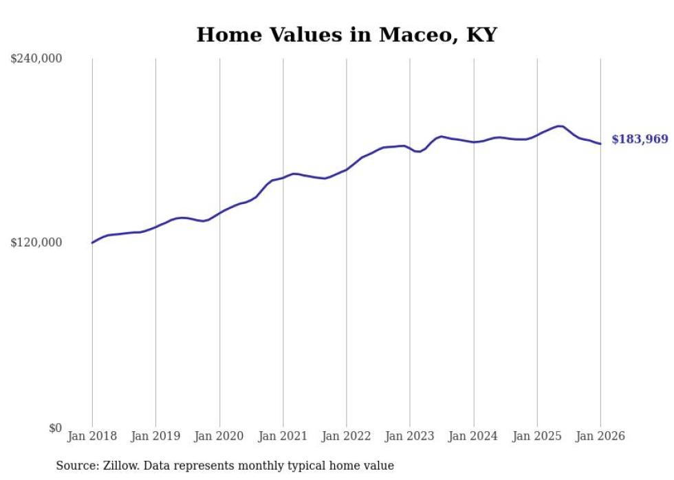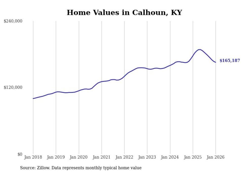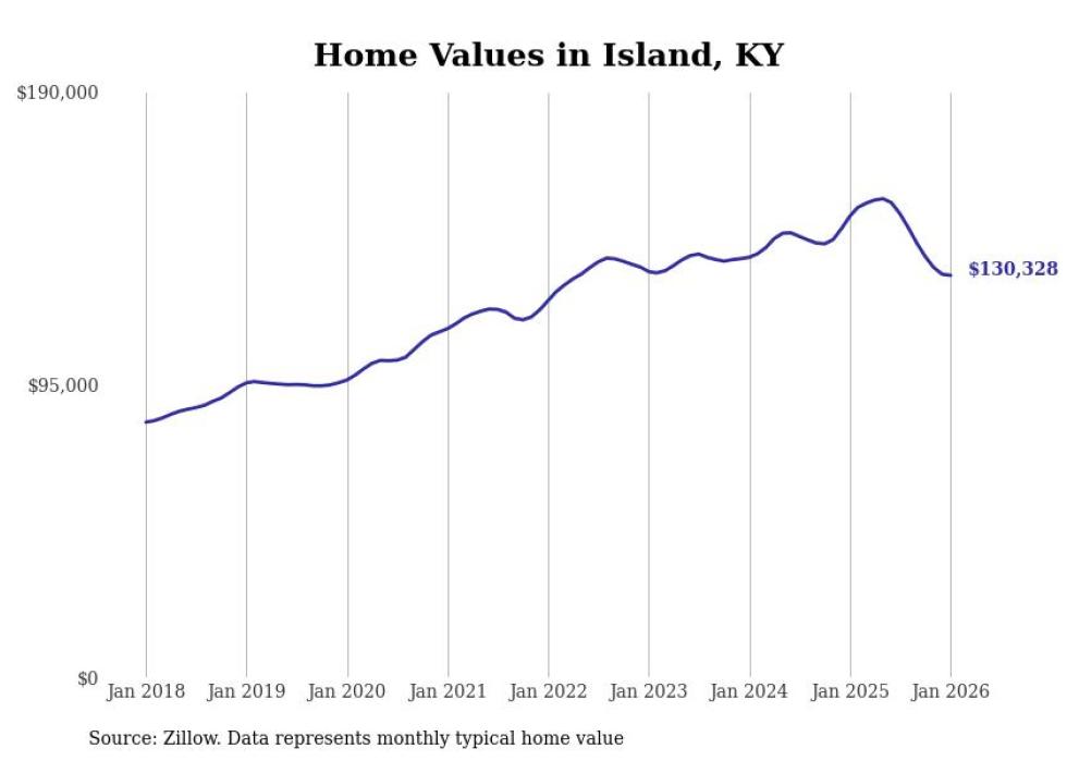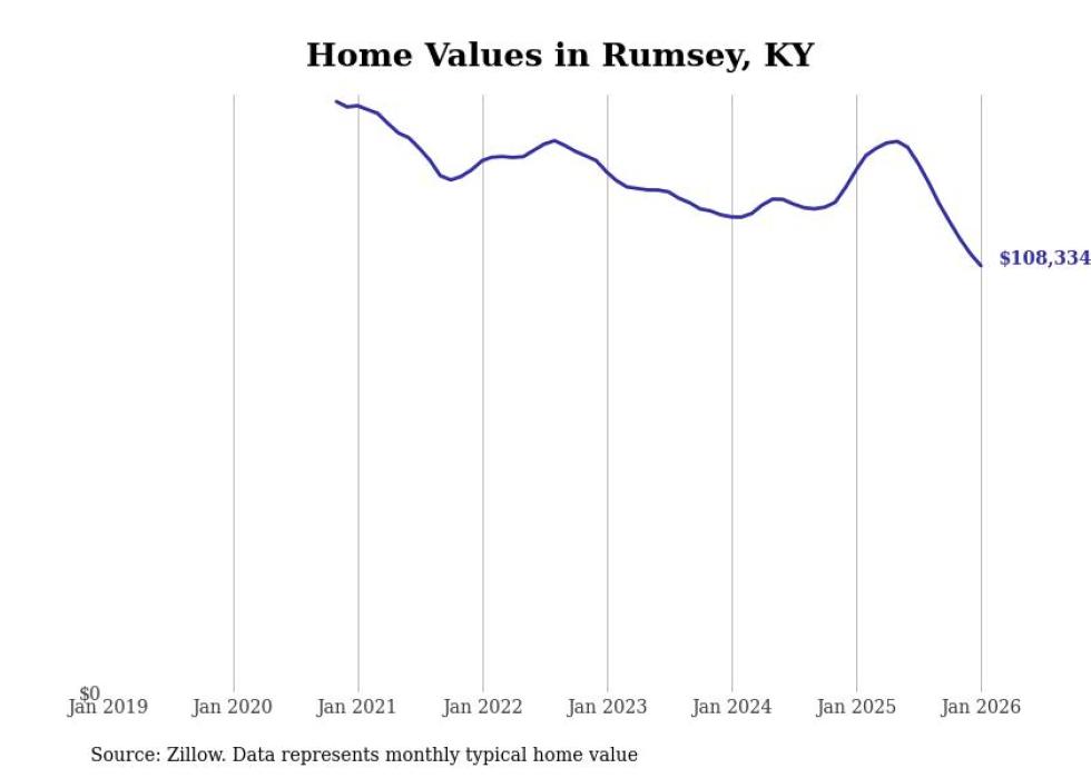 Stacker compiled a list of cities with the most expensive homes in the Owensboro, KY metro area using data from Zillow. Charts show the monthly typical home value since January 2018.