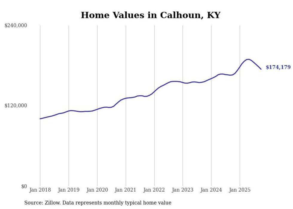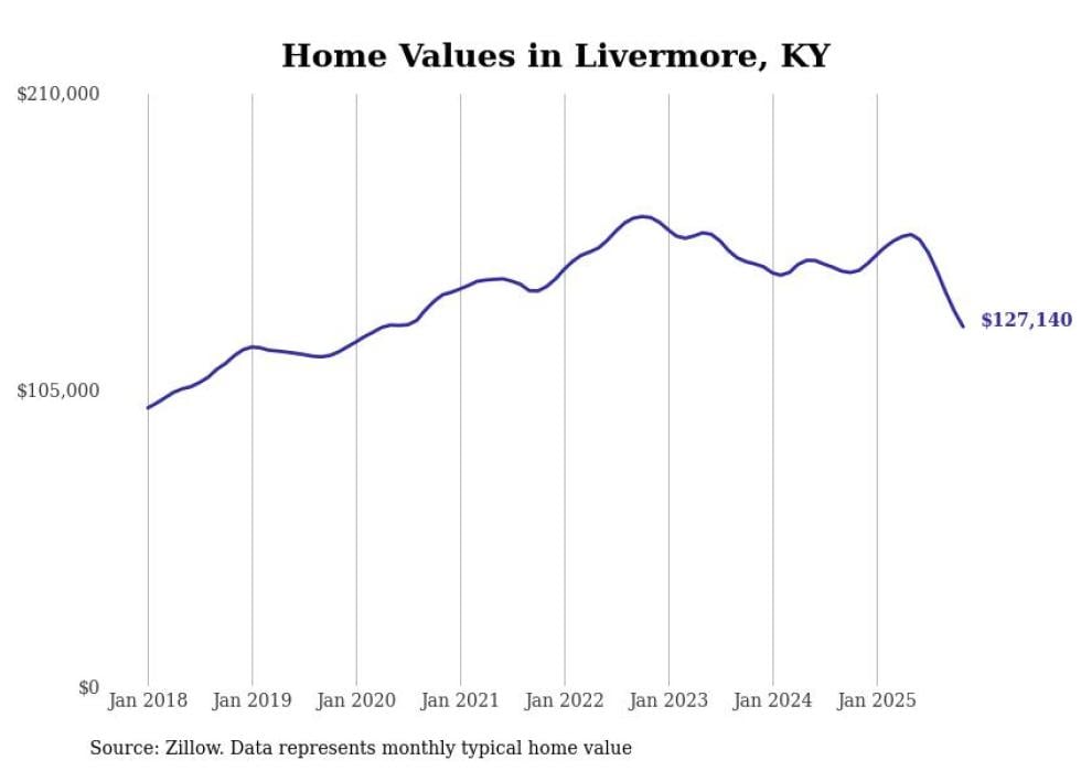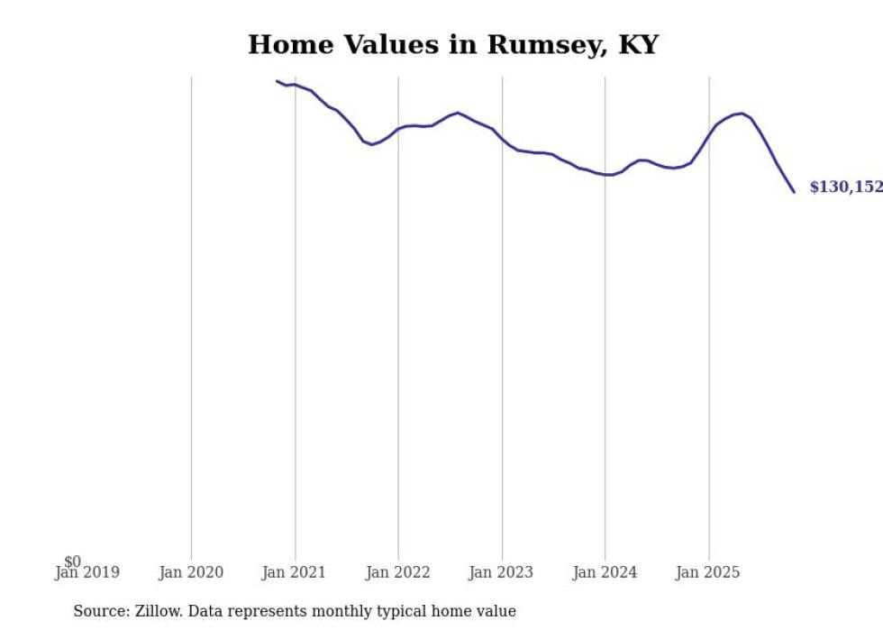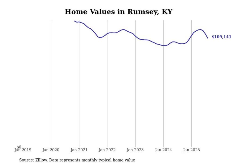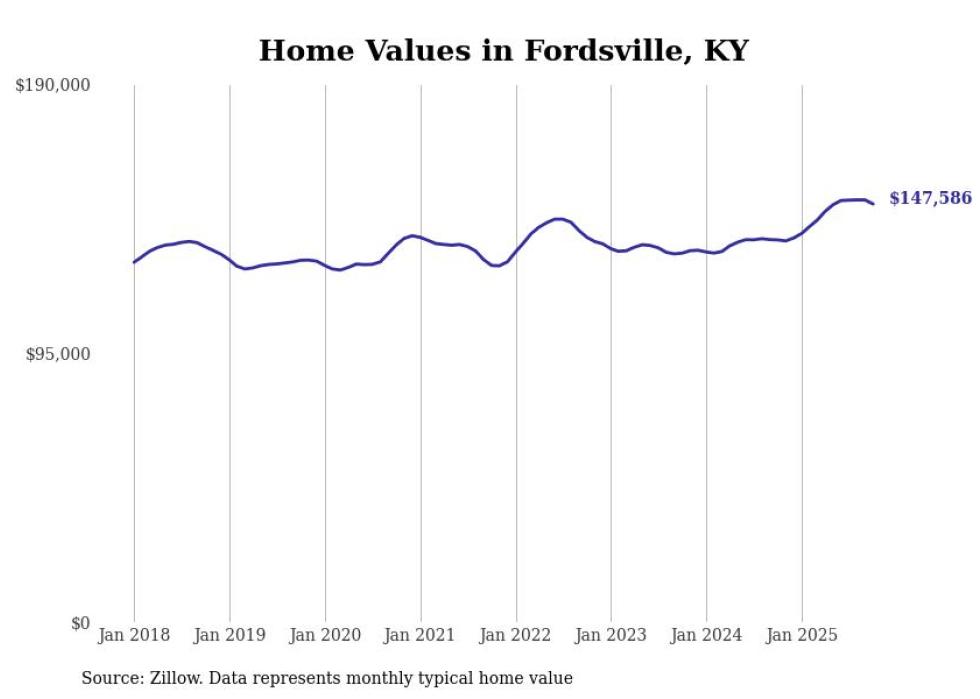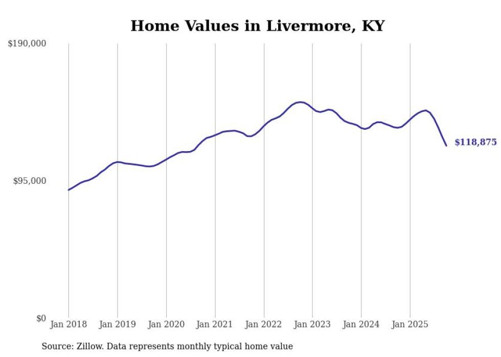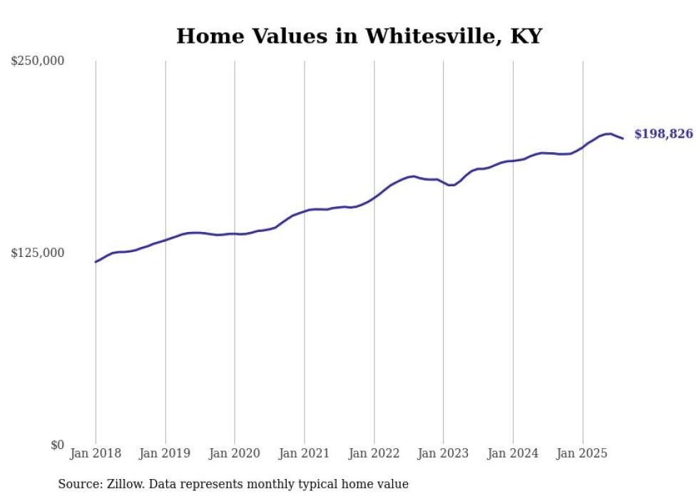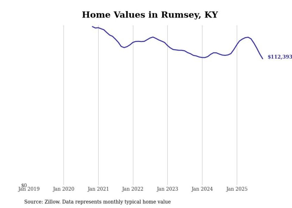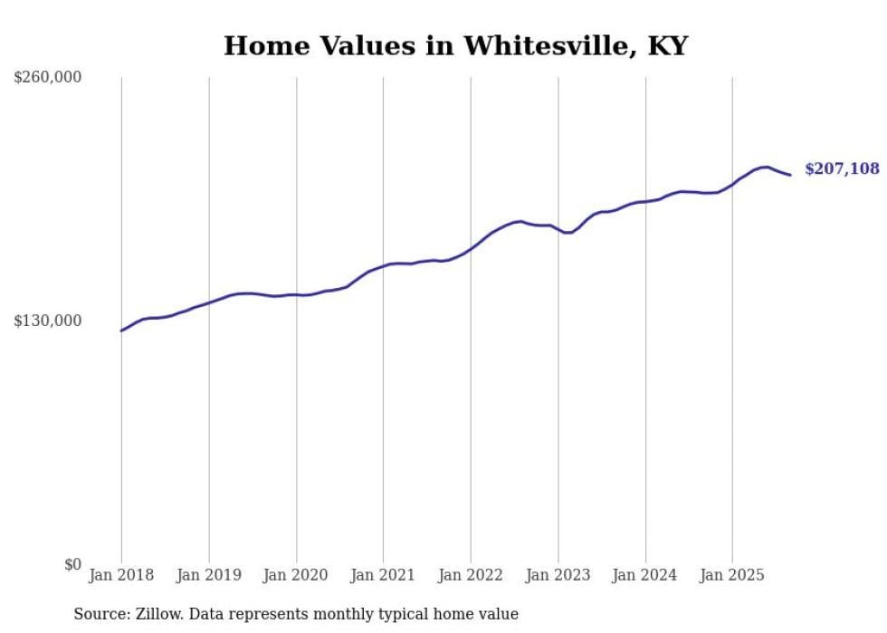 Stacker compiled a list of cities with the most expensive homes in the Owensboro metro area using data from Zillow. Charts show the monthly typical home value since January 2018. All 13 cities and towns with data available were included in the list.