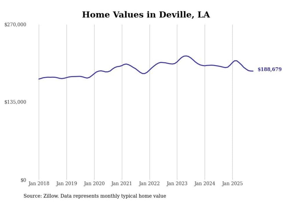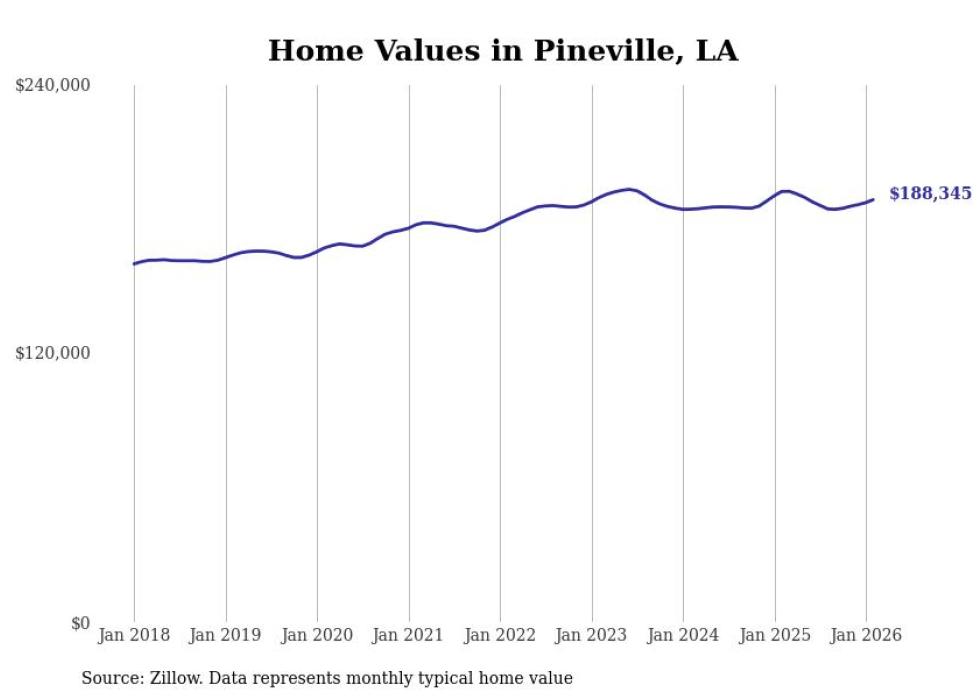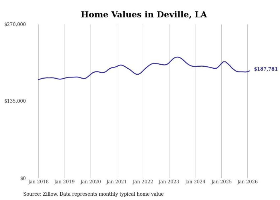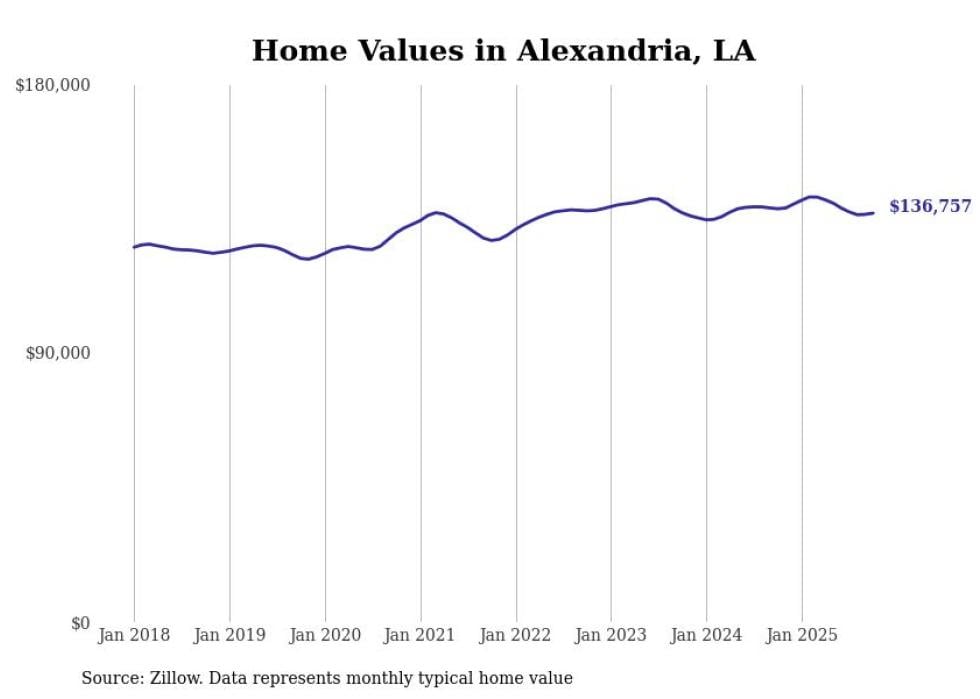 Stacker compiled a list of cities with the most expensive homes in the Alexandria, LA metro area using data from Zillow. Charts show the monthly typical home value since January 2018.