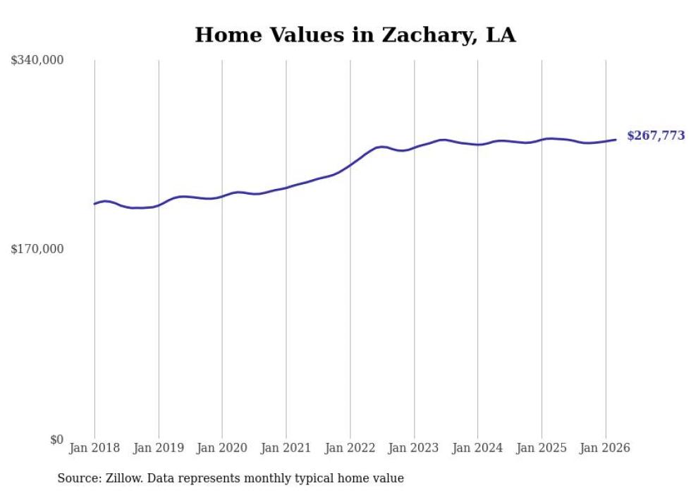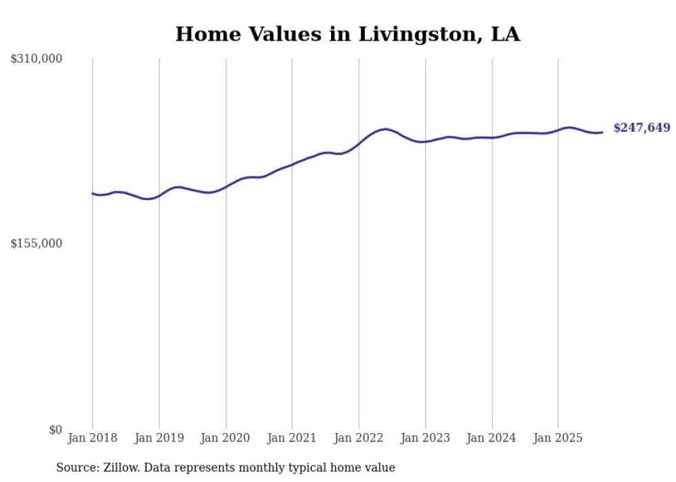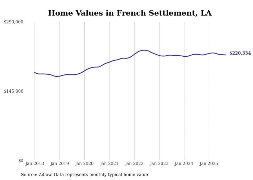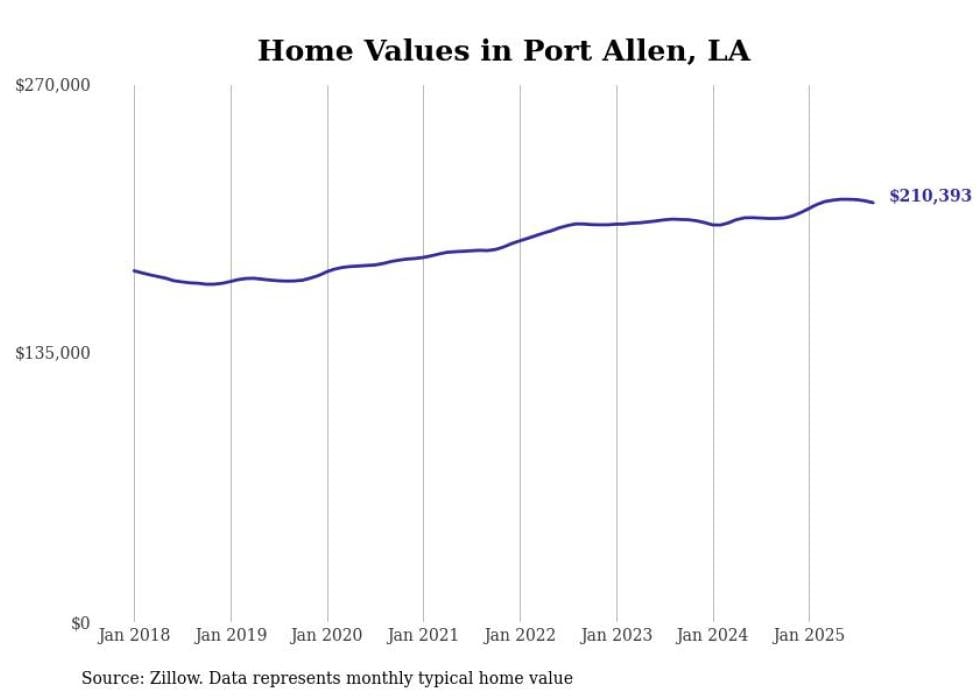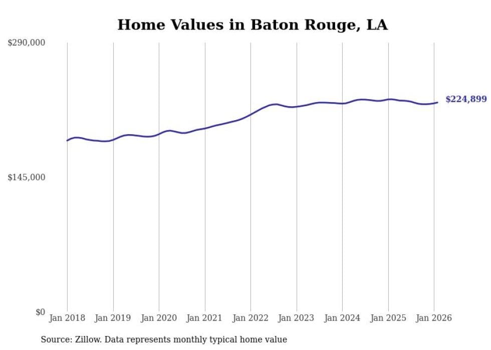 Stacker compiled a list of cities with the most expensive homes in the Baton Rouge, LA metro area using data from Zillow. Charts show the monthly typical home value since January 2018.