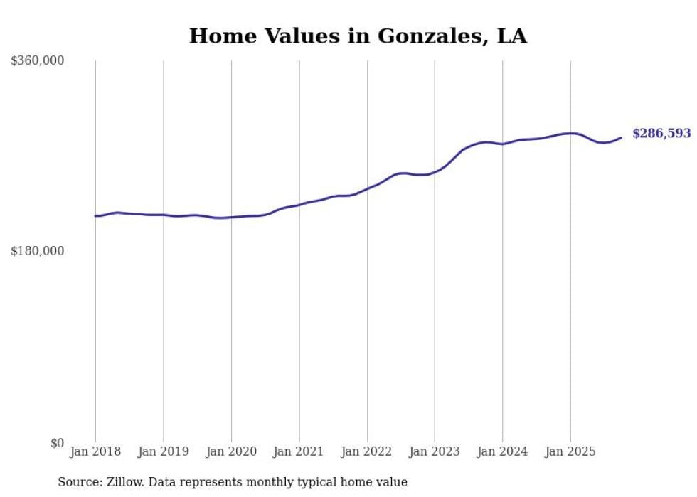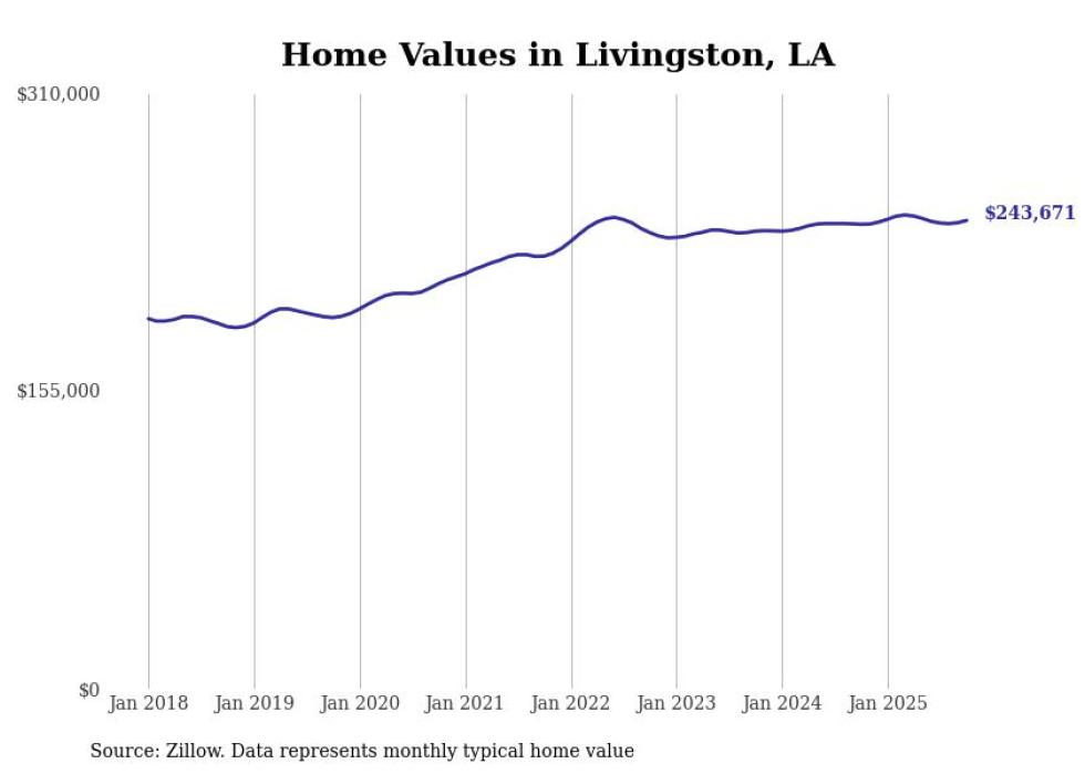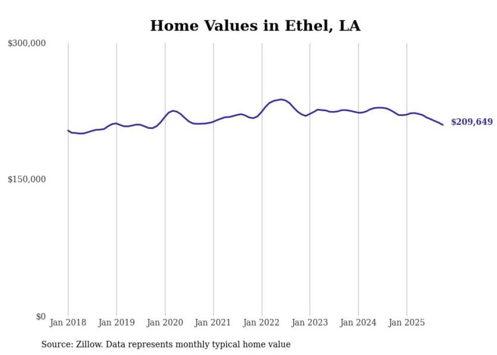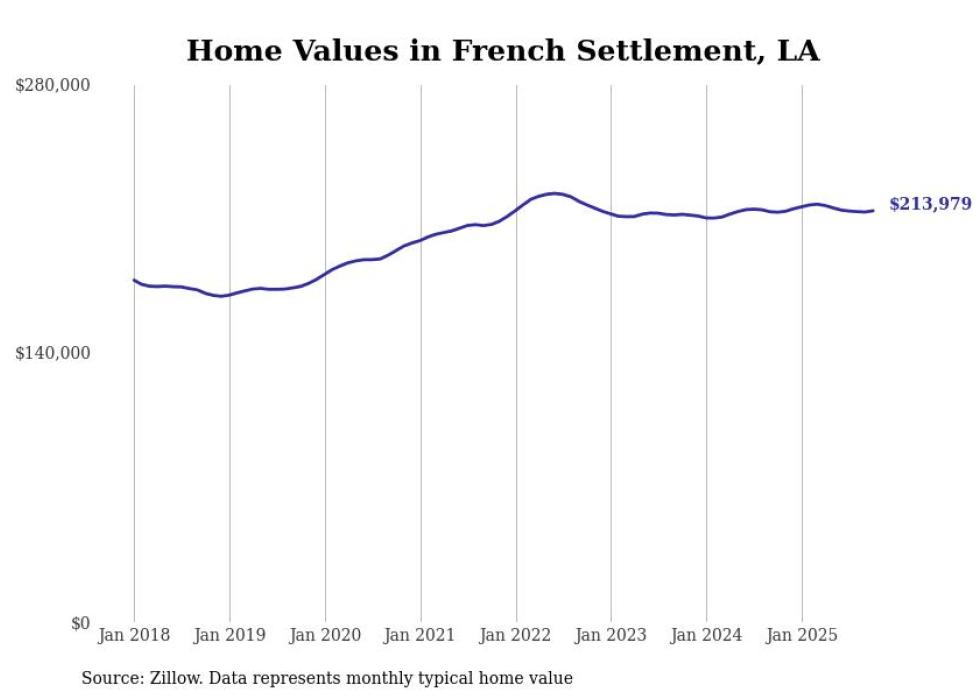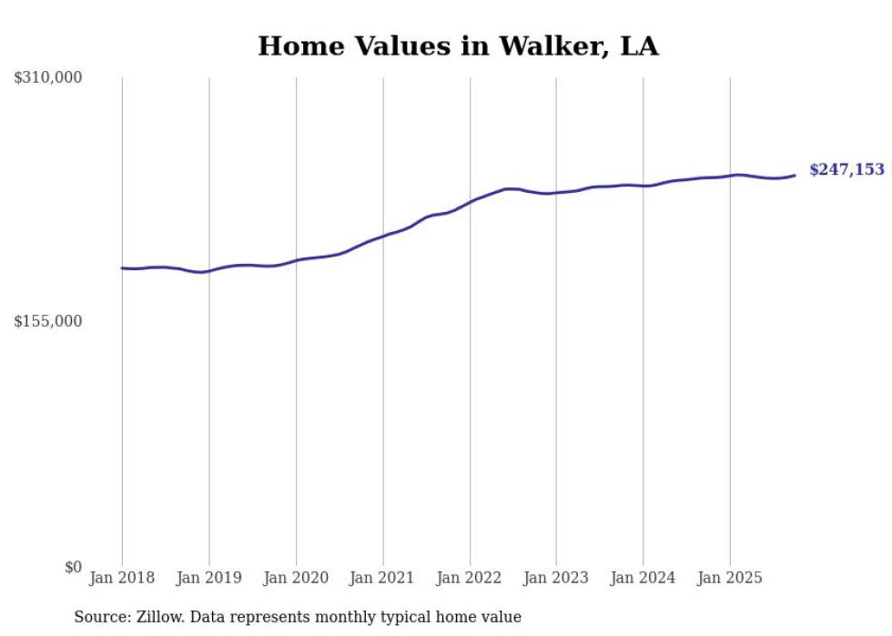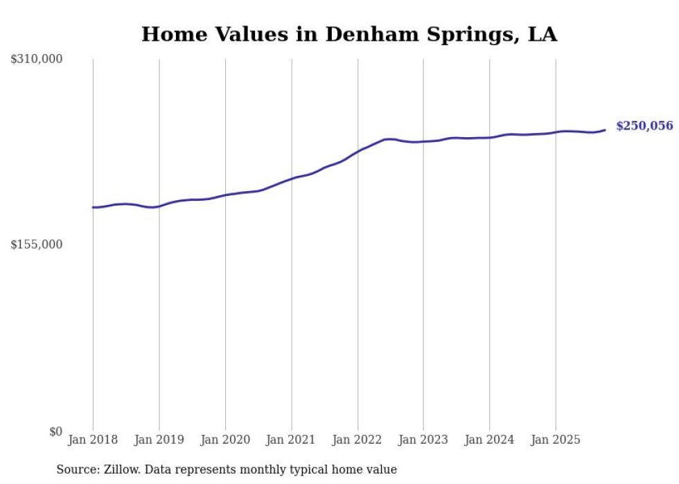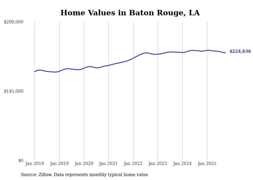 Stacker compiled a list of cities with the most expensive homes in the Baton Rouge metro area using data from Zillow. Charts show the monthly typical home value since January 2018. Data was available for 37 cities and towns.