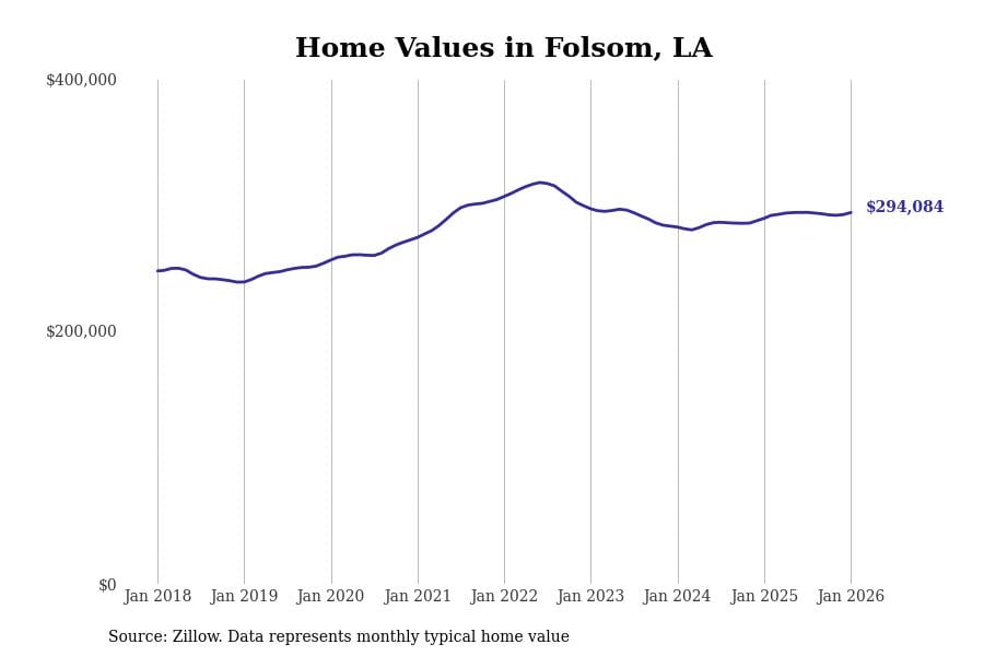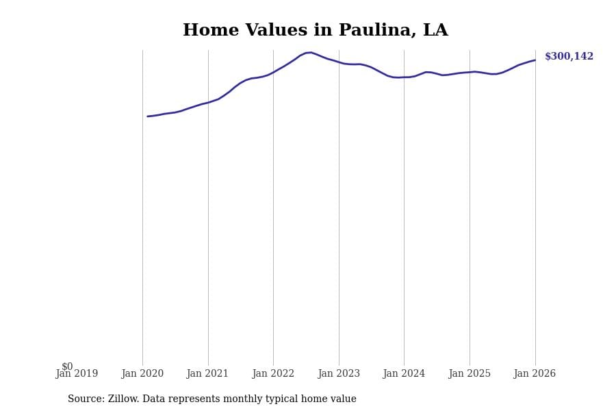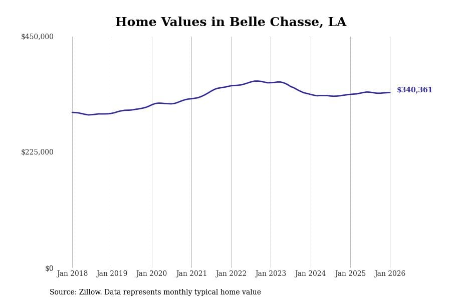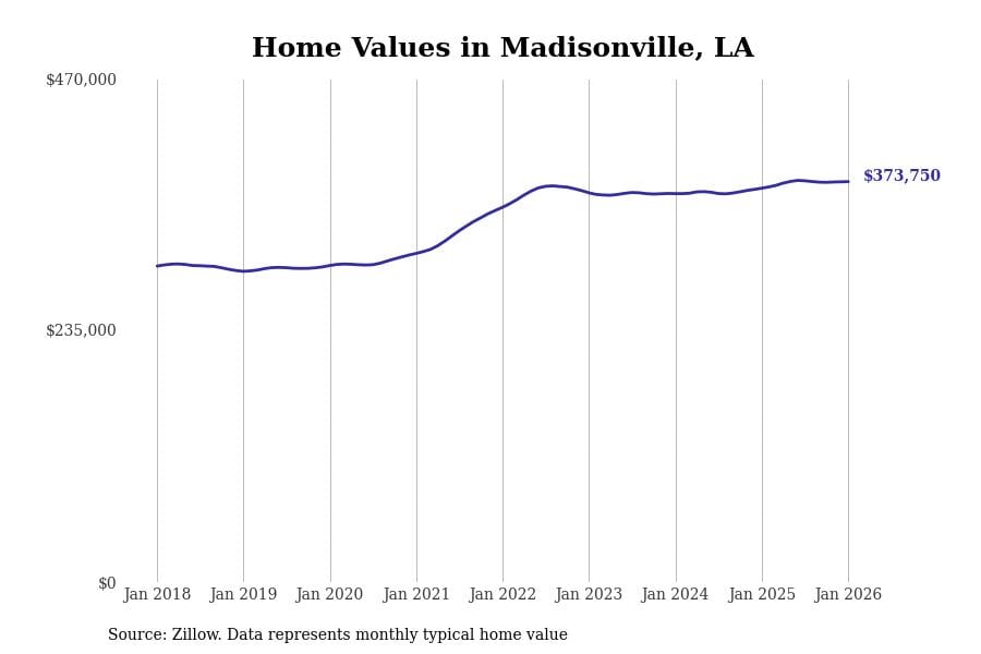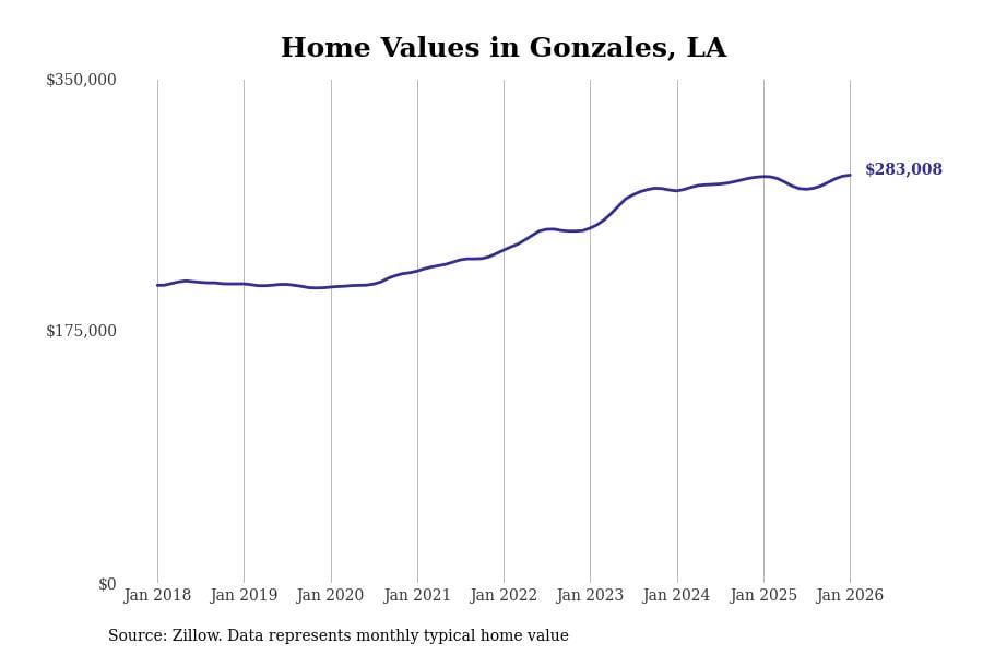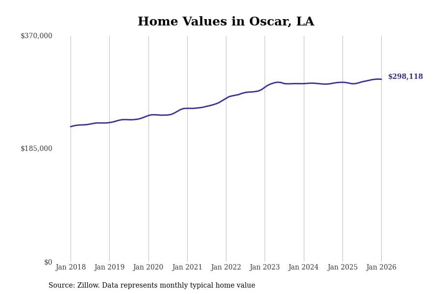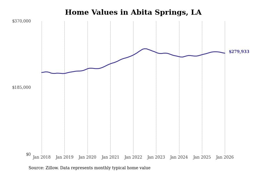 Stacker compiled a list of cities with the most expensive homes in Louisiana using data from Zillow. Cities are ranked by the Zillow Home Values Index for all homes as of January 2026. The charts in this story were created automatically using Matplotlib.