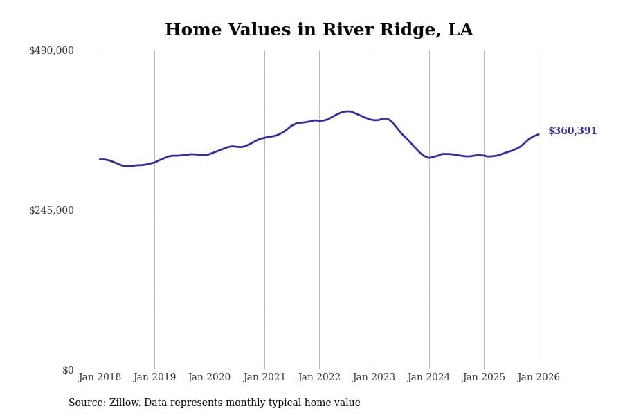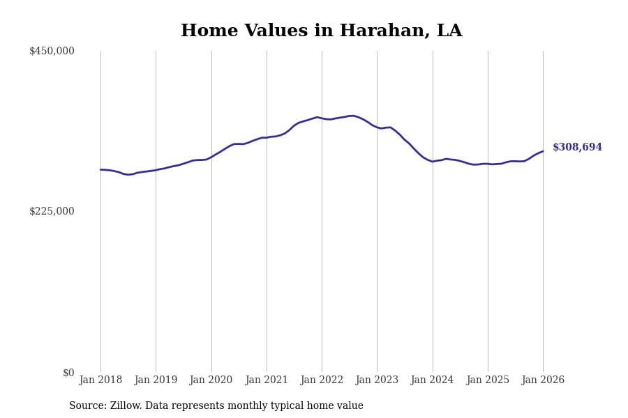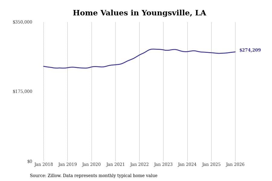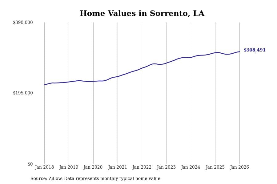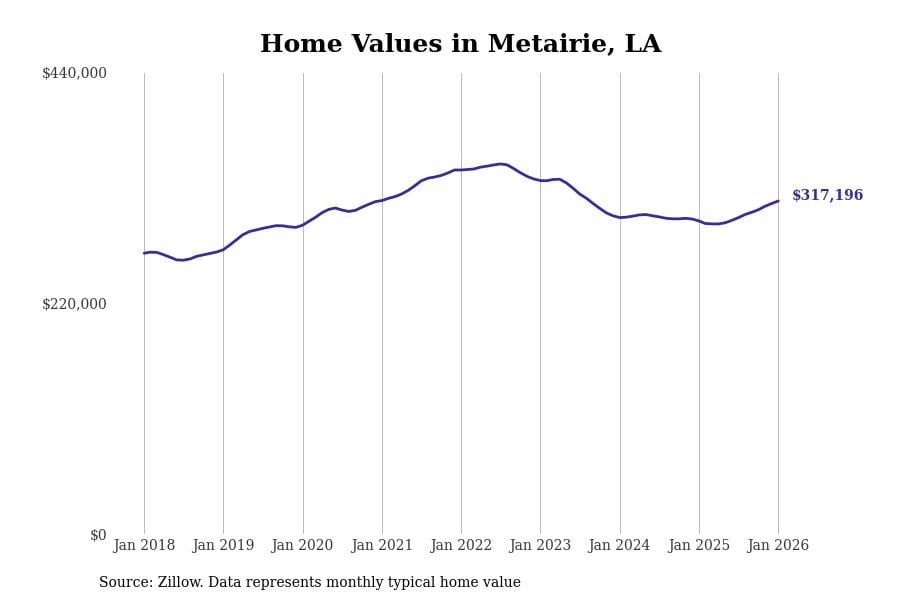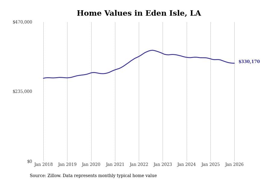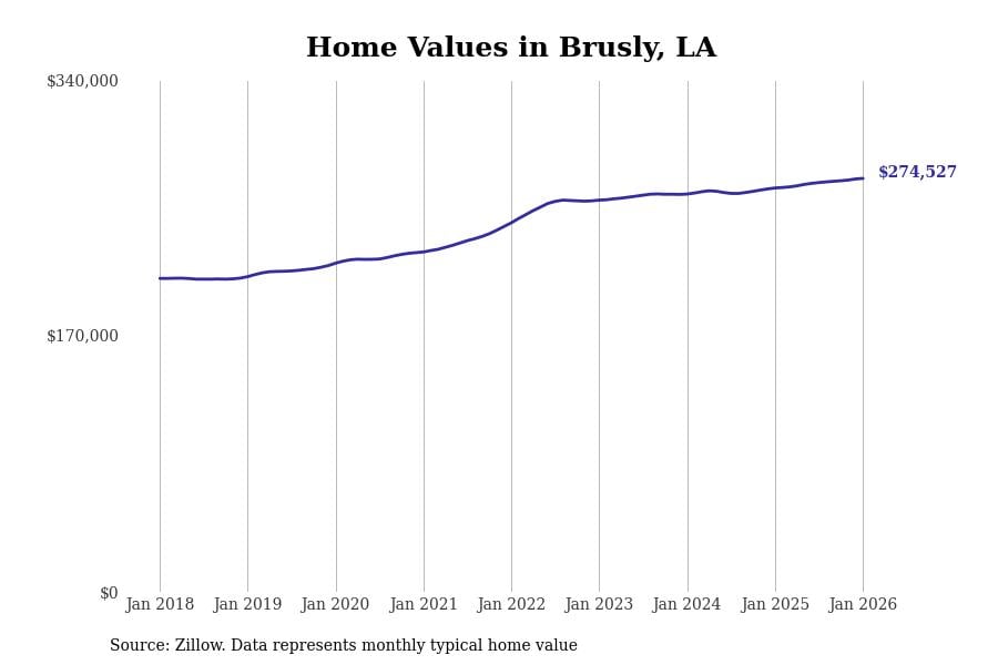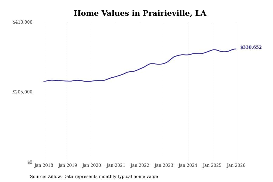 Stacker compiled a list of cities with the most expensive homes in Louisiana using data from Zillow. Cities are ranked by the Zillow Home Values Index for all homes as of January 2026. The charts in this story were created automatically using Matplotlib.