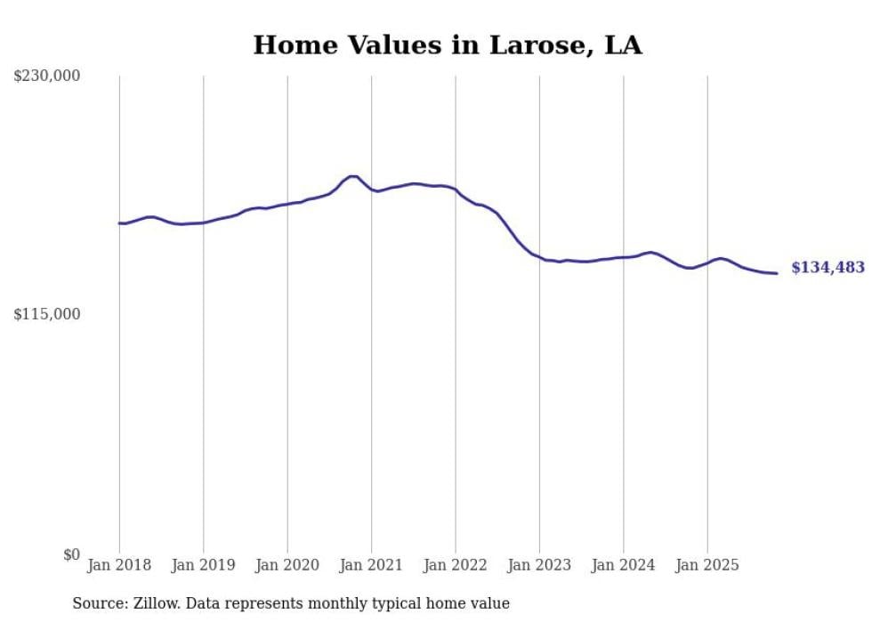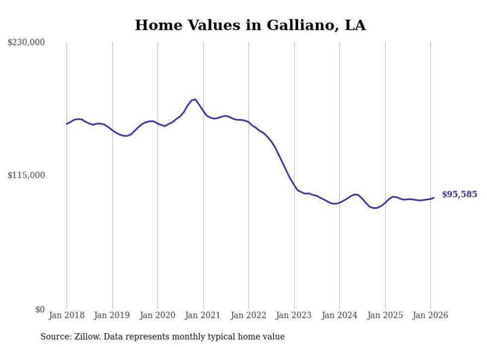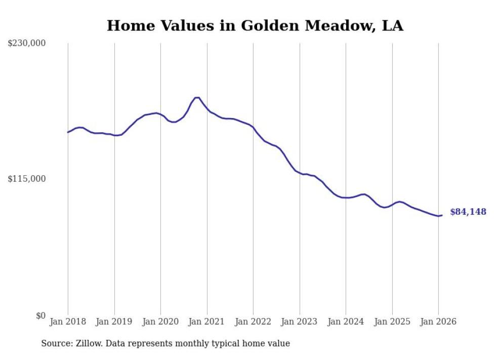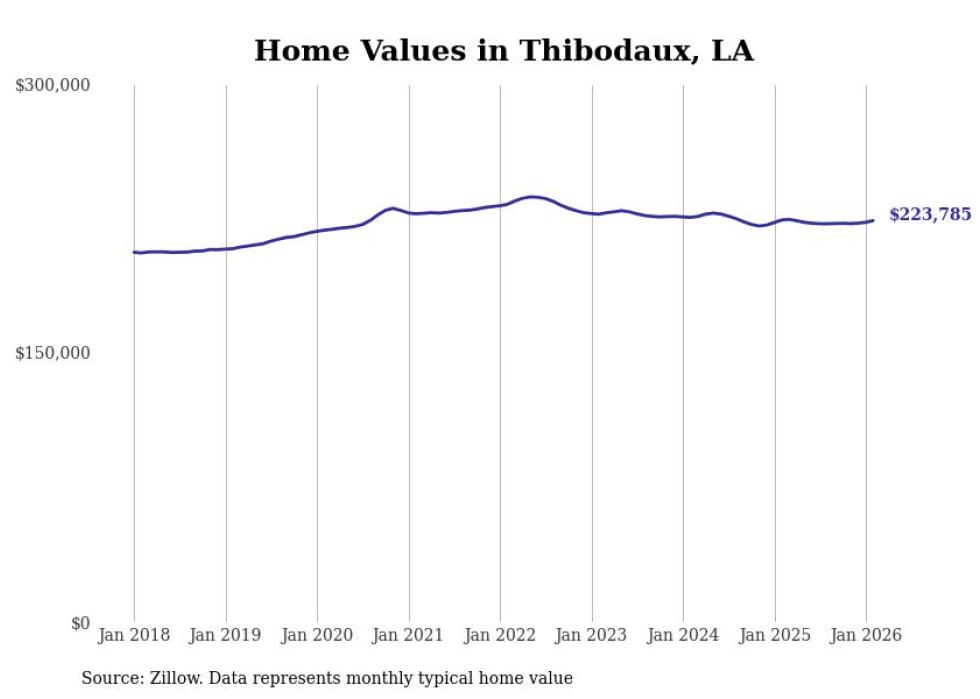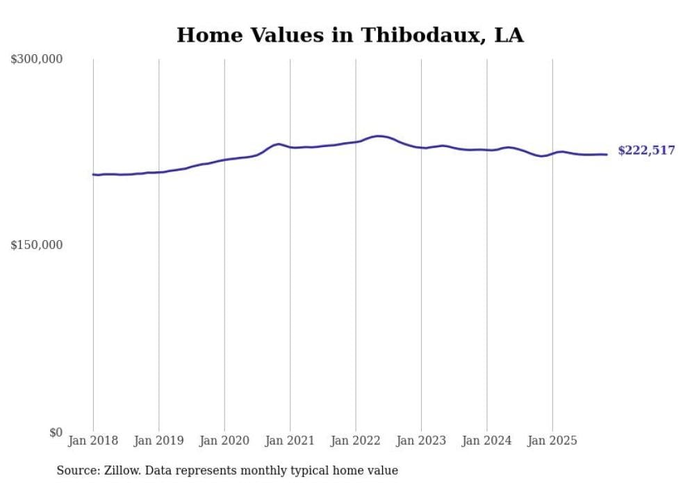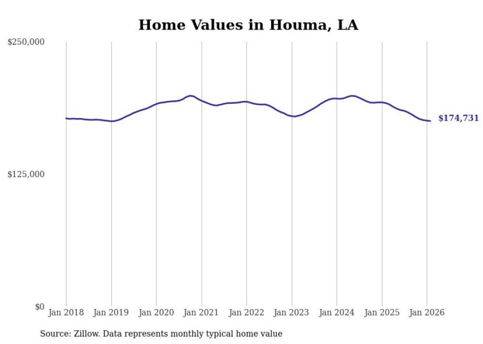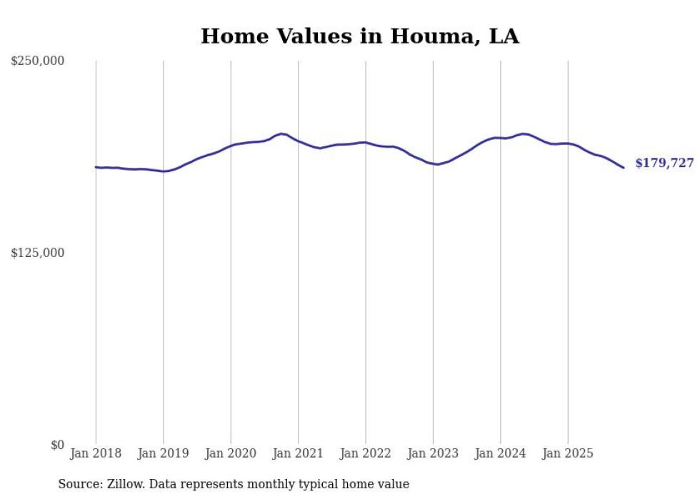 Stacker compiled a list of cities with the most expensive homes in the Houma-Thibodaux, LA metro area using data from Zillow. Charts show the monthly typical home value since January 2018.