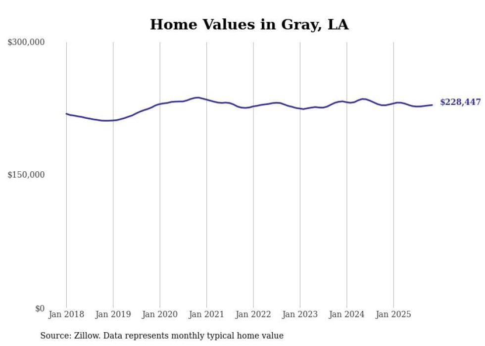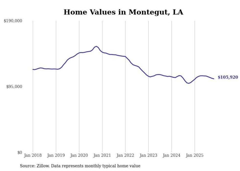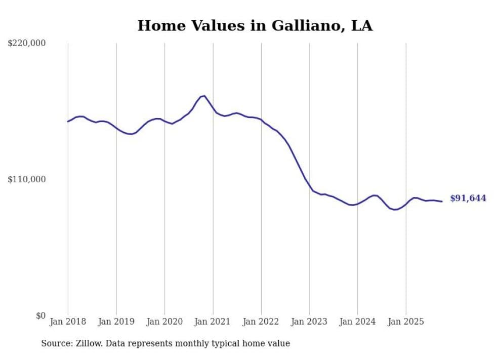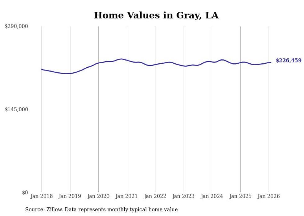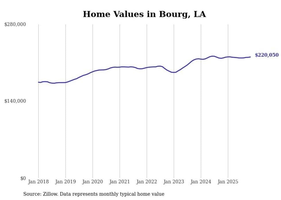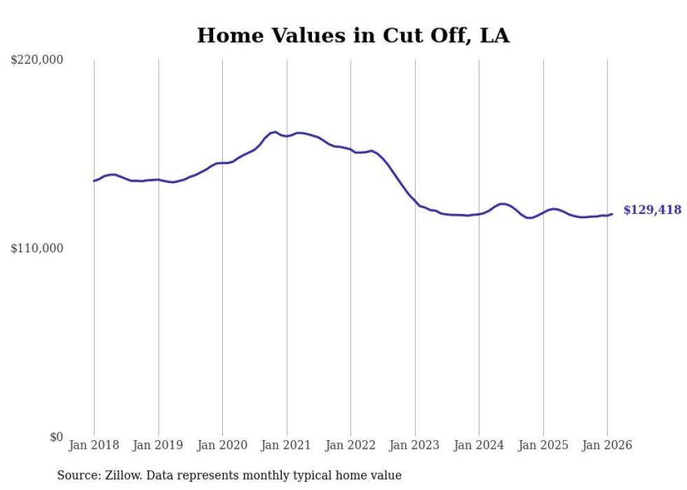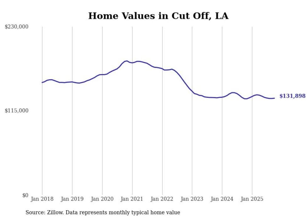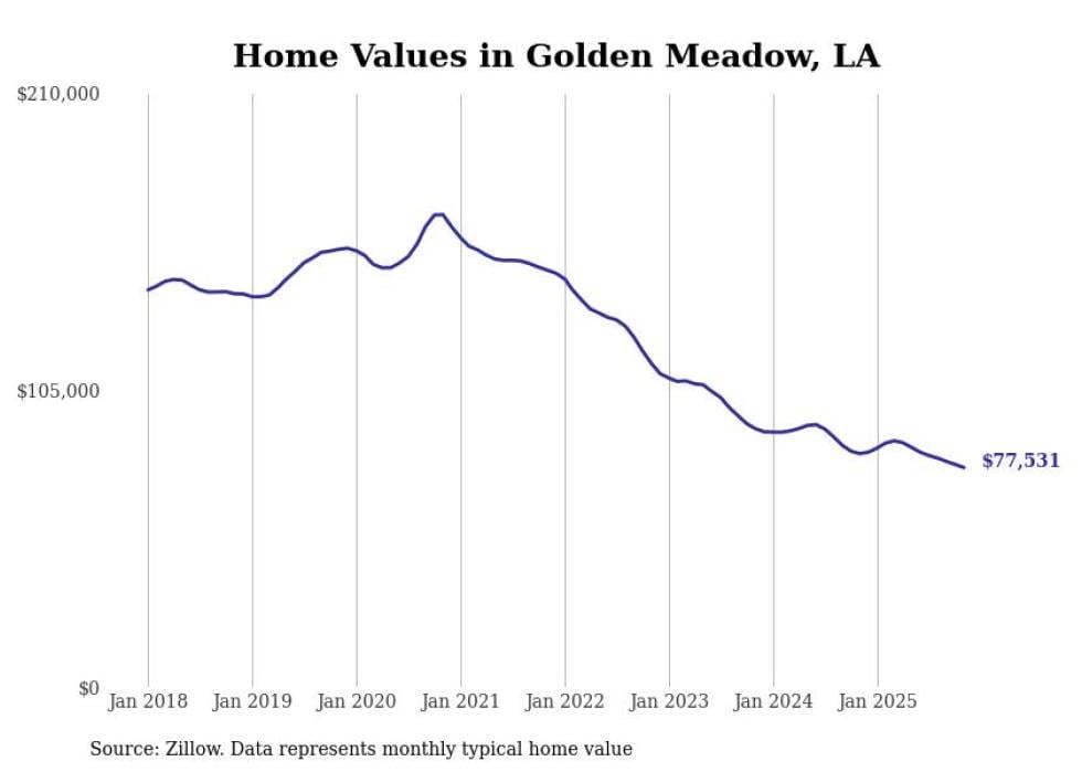 Stacker compiled a list of cities with the most expensive homes in the Houma-Thibodaux, LA metro area using data from Zillow. Charts show the monthly typical home value since January 2018.