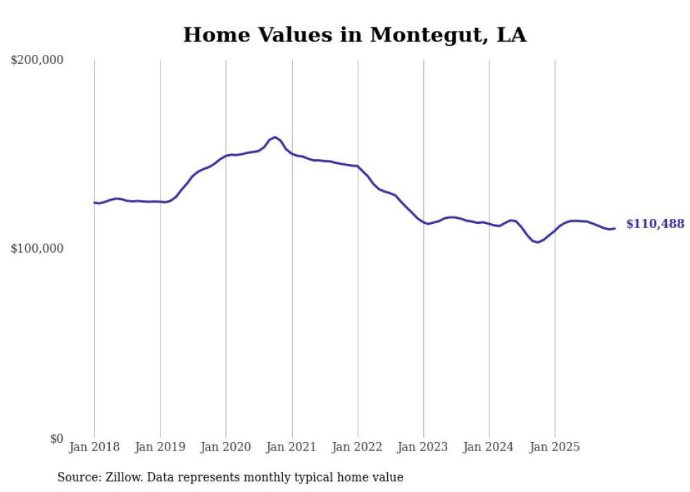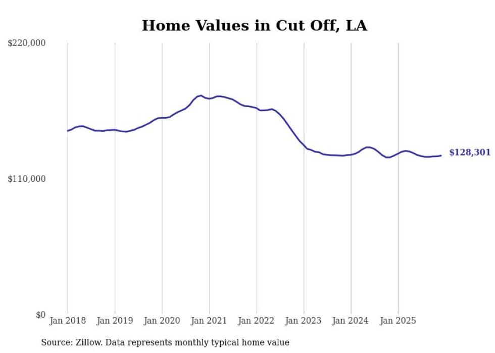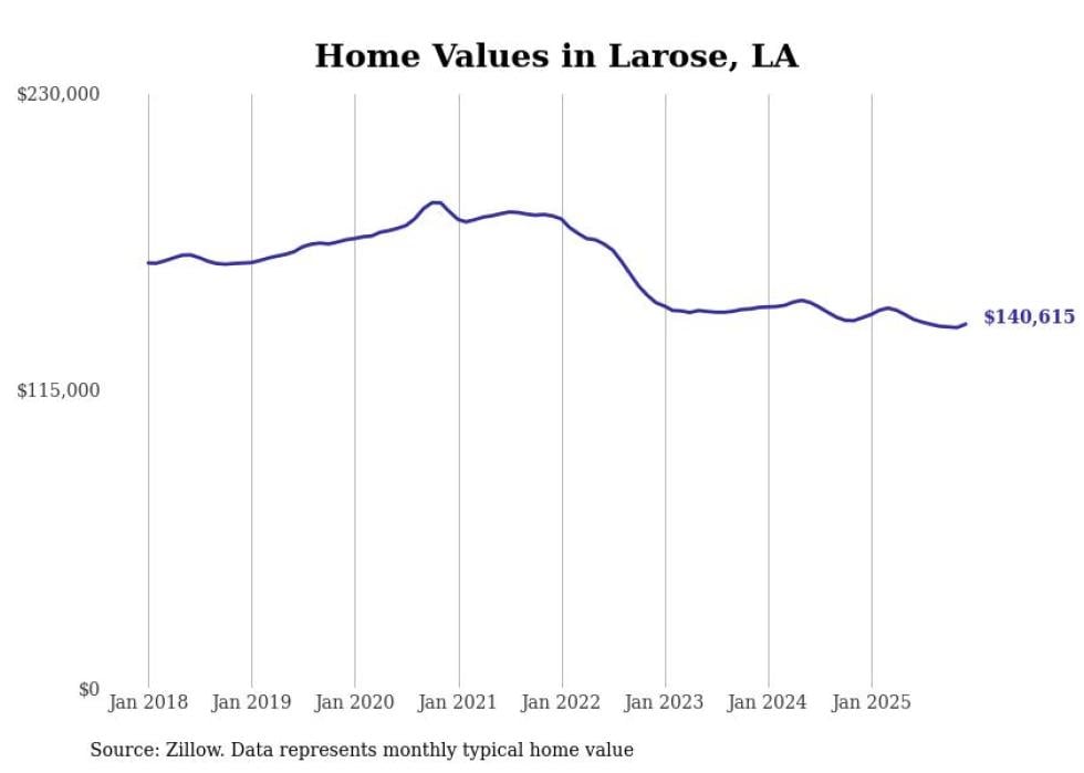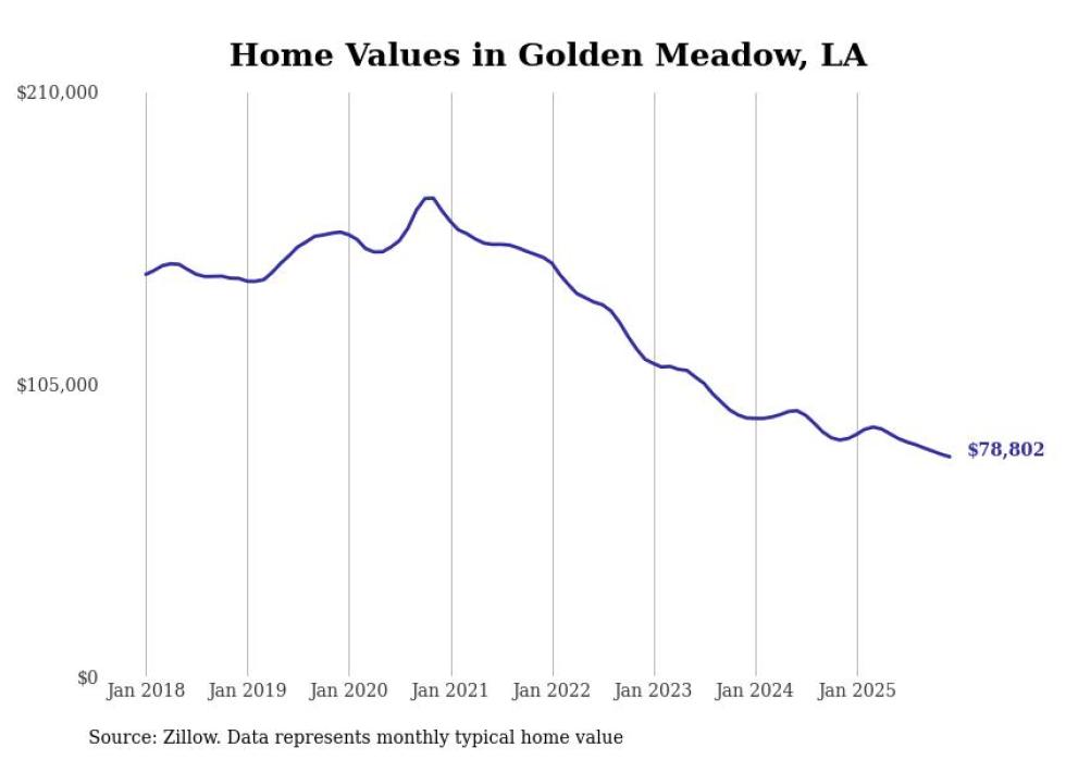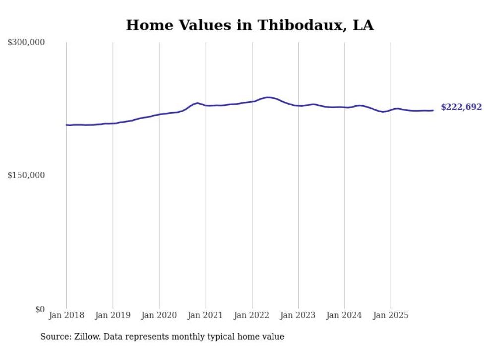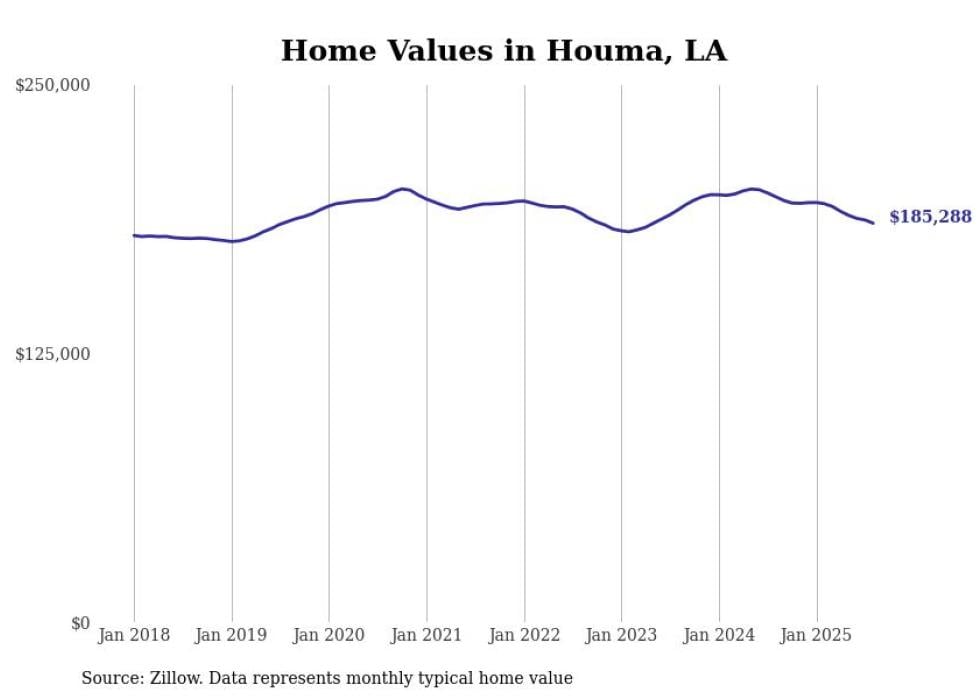 Stacker compiled a list of cities with the most expensive homes in the Houma metro area using data from Zillow. Charts show the monthly typical home value since January 2018. All 14 cities and towns with data available were included in the list.
