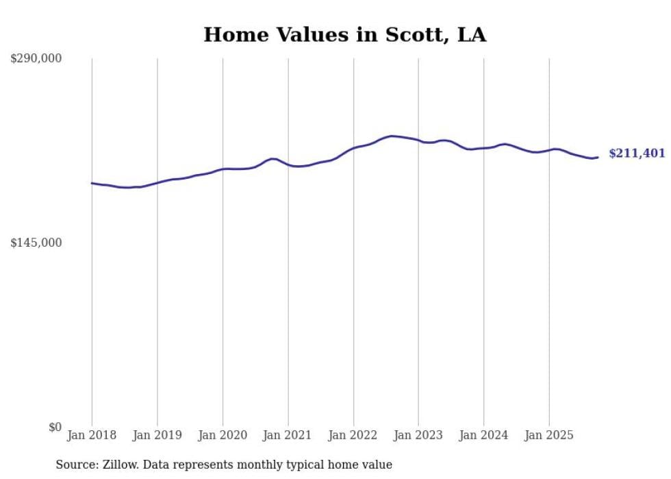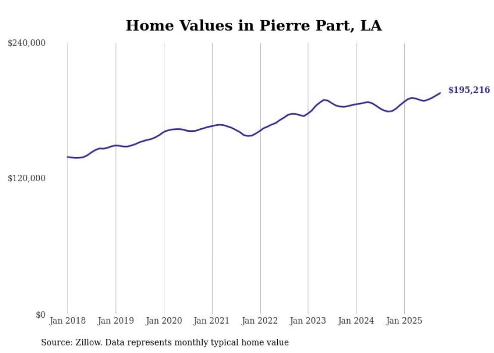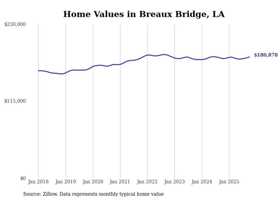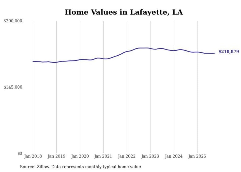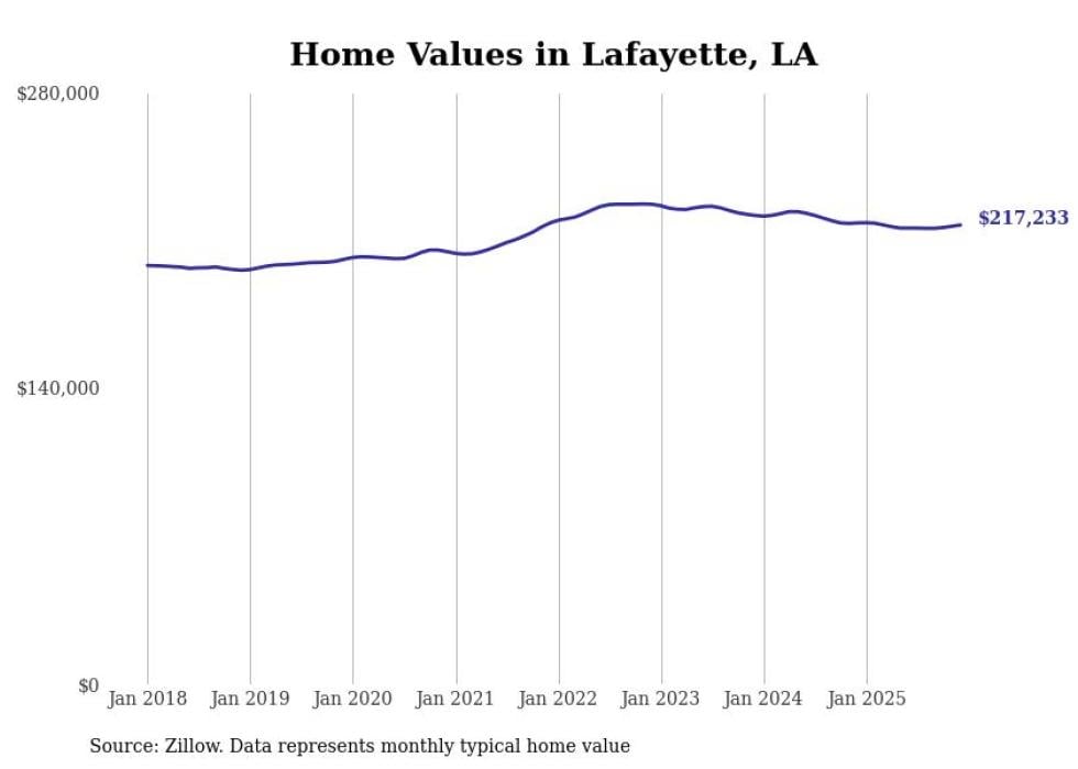 Stacker compiled a list of cities with the most expensive homes in the Lafayette, LA metro area using data from Zillow. Charts show the monthly typical home value since January 2018.