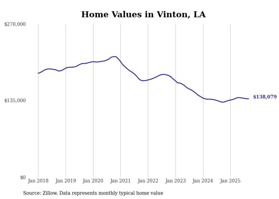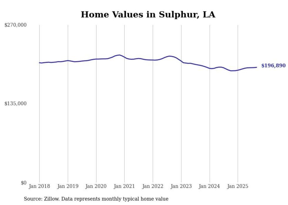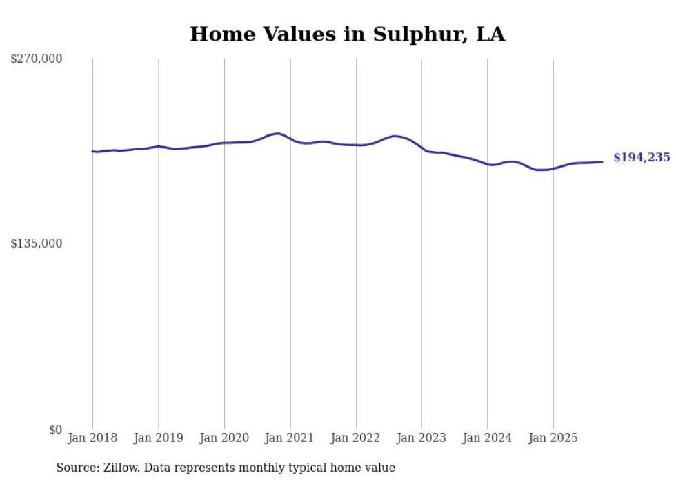 Stacker compiled a list of cities with the most expensive homes in the Lake Charles, LA metro area using data from Zillow. Charts show the monthly typical home value since January 2018.