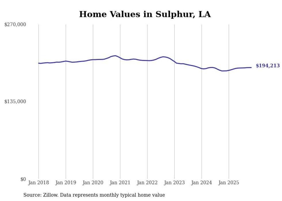 Stacker compiled a list of cities with the most expensive homes in the Lake Charles metro area using data from Zillow. Charts show the monthly typical home value since January 2018. All 10 cities and towns with data available were included in the list.