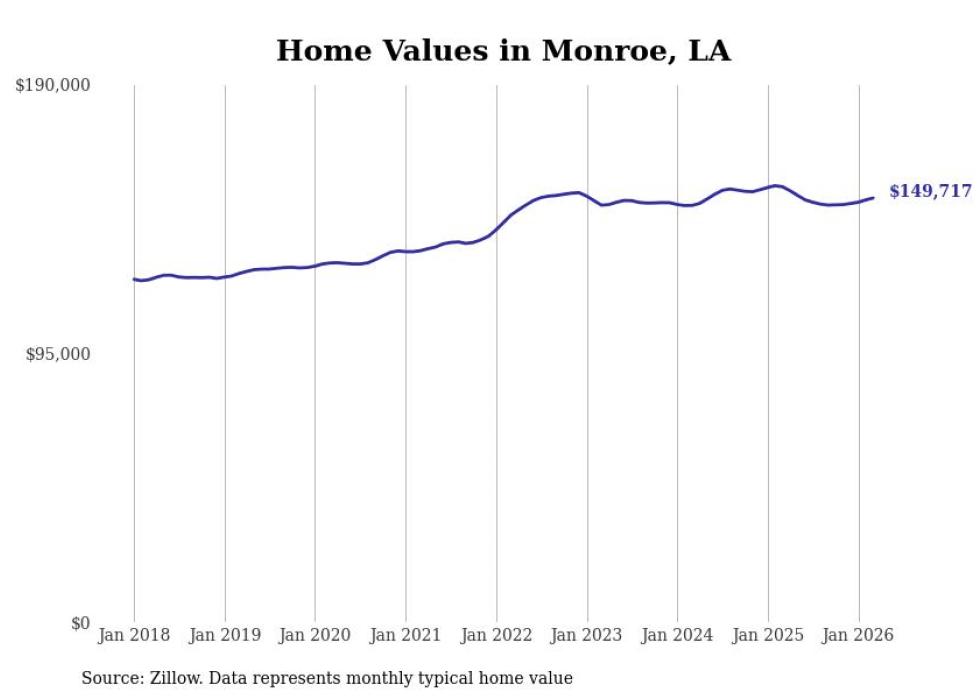 Stacker compiled a list of cities with the most expensive homes in the Monroe, LA metro area using data from Zillow. Charts show the monthly typical home value since January 2018.
