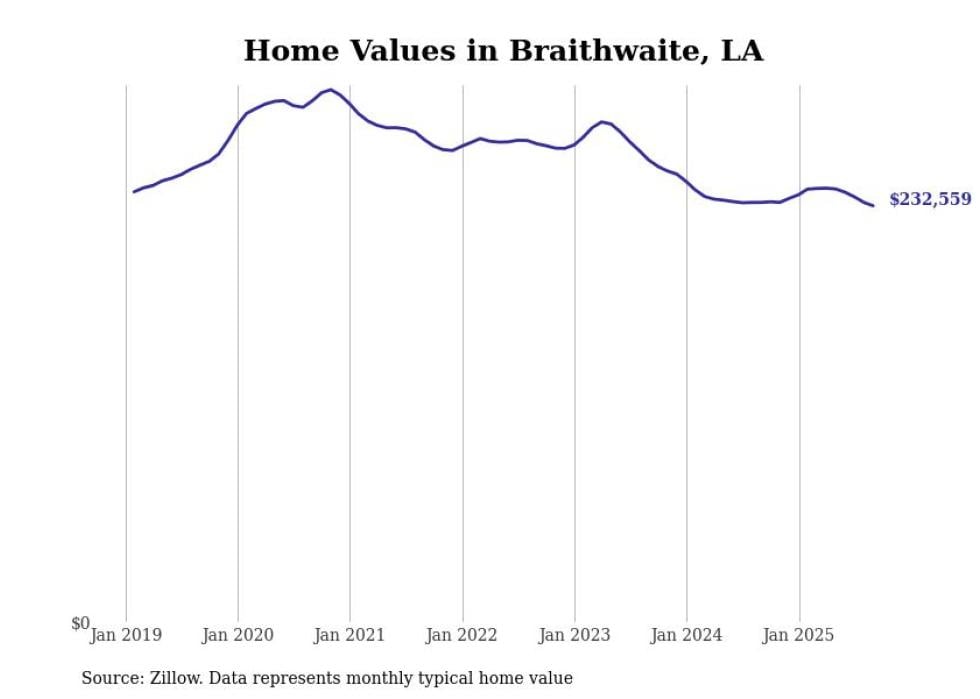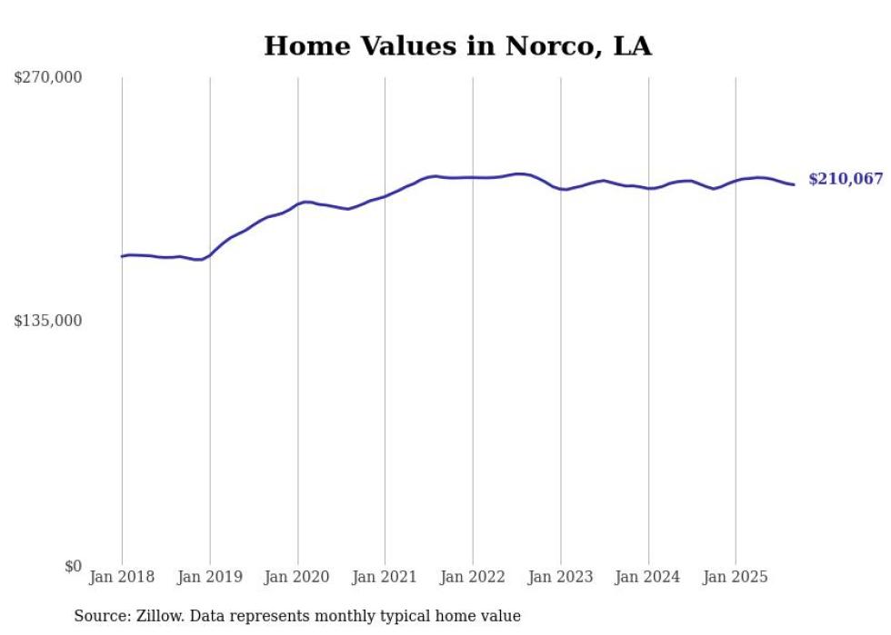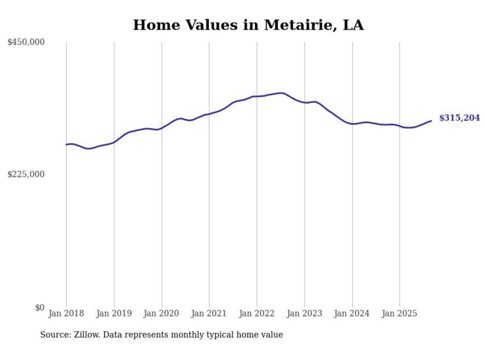 Stacker compiled a list of cities with the most expensive homes in the New Orleans-Metairie, LA metro area using data from Zillow. Charts show the monthly typical home value since January 2018.