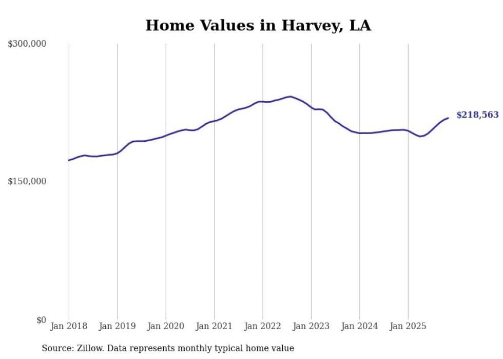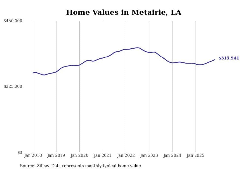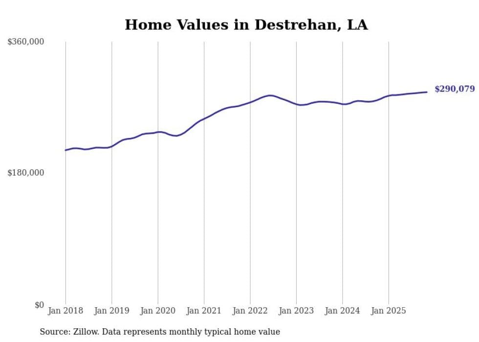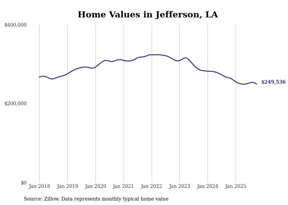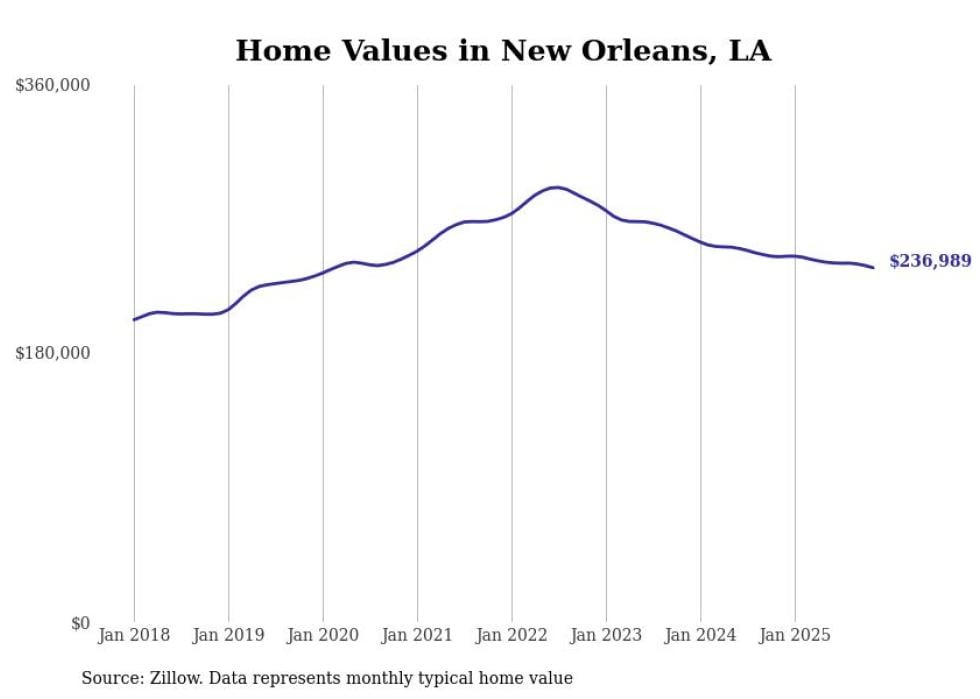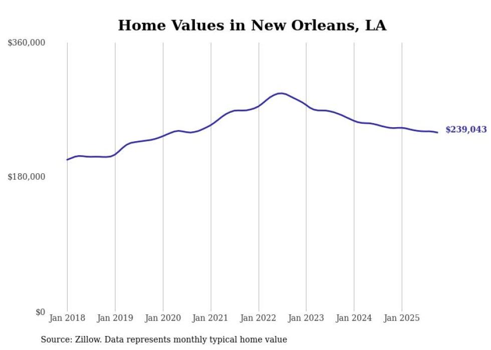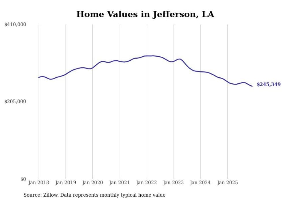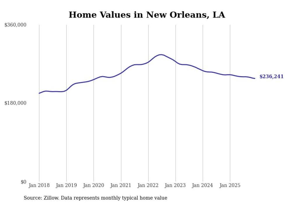 Stacker compiled a list of cities with the most expensive homes in the New Orleans metro area using data from Zillow. Charts show the monthly typical home value since January 2018. Data was available for 46 cities and towns.