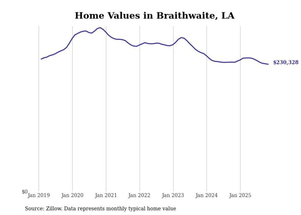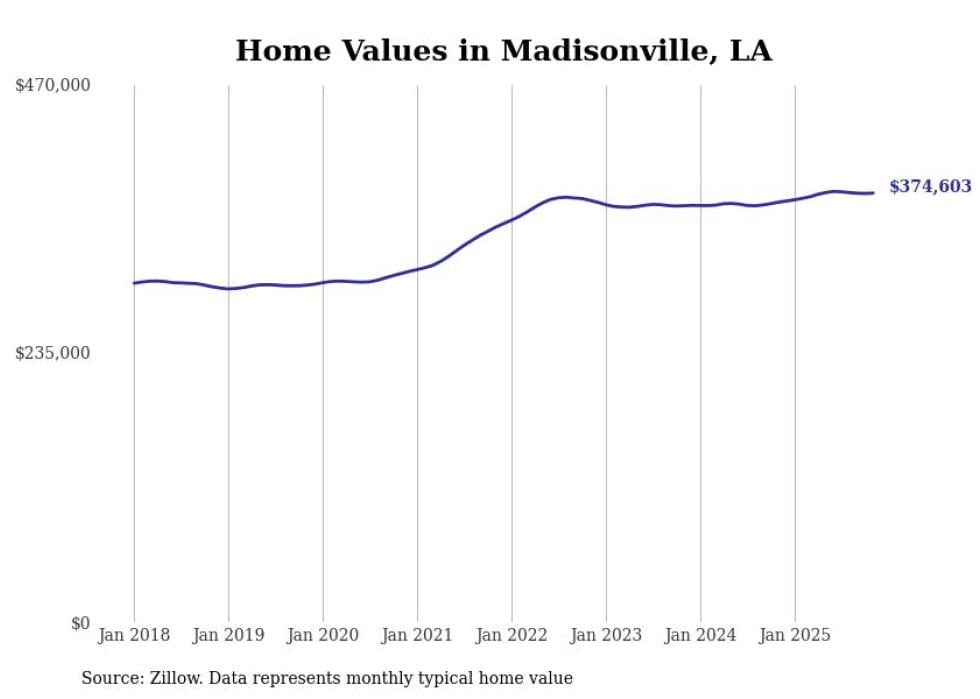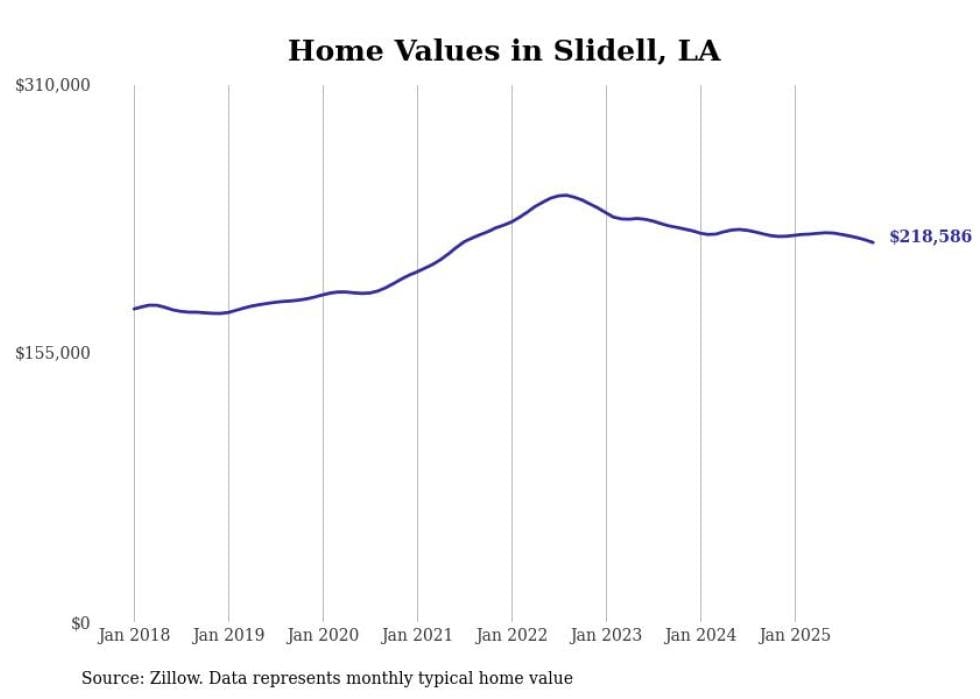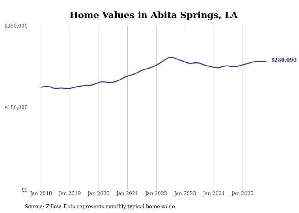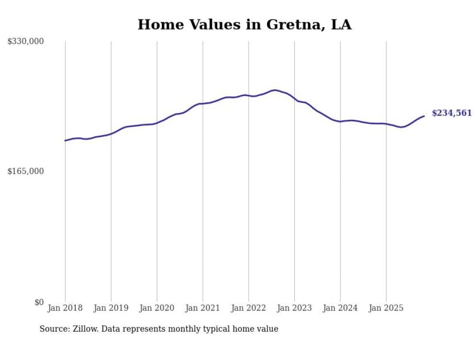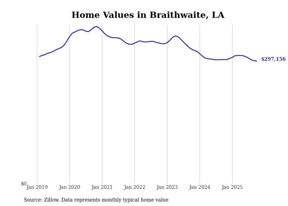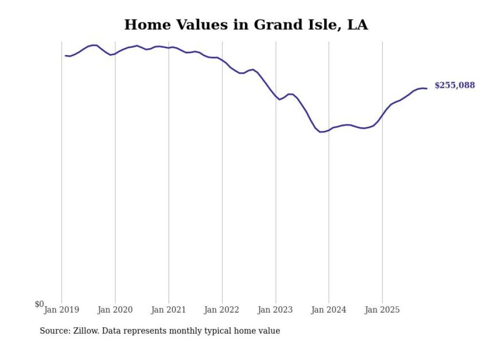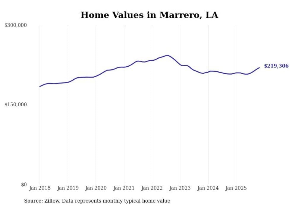 Stacker compiled a list of cities with the most expensive homes in the New Orleans metro area using data from Zillow. Charts show the monthly typical home value since January 2018. Data was available for 46 cities and towns.