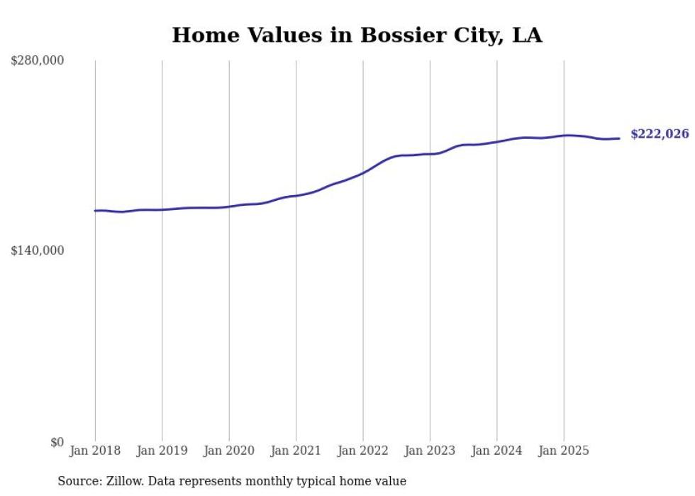 Stacker compiled a list of cities with the most expensive homes in the Shreveport-Bossier City, LA metro area using data from Zillow. Charts show the monthly typical home value since January 2018.