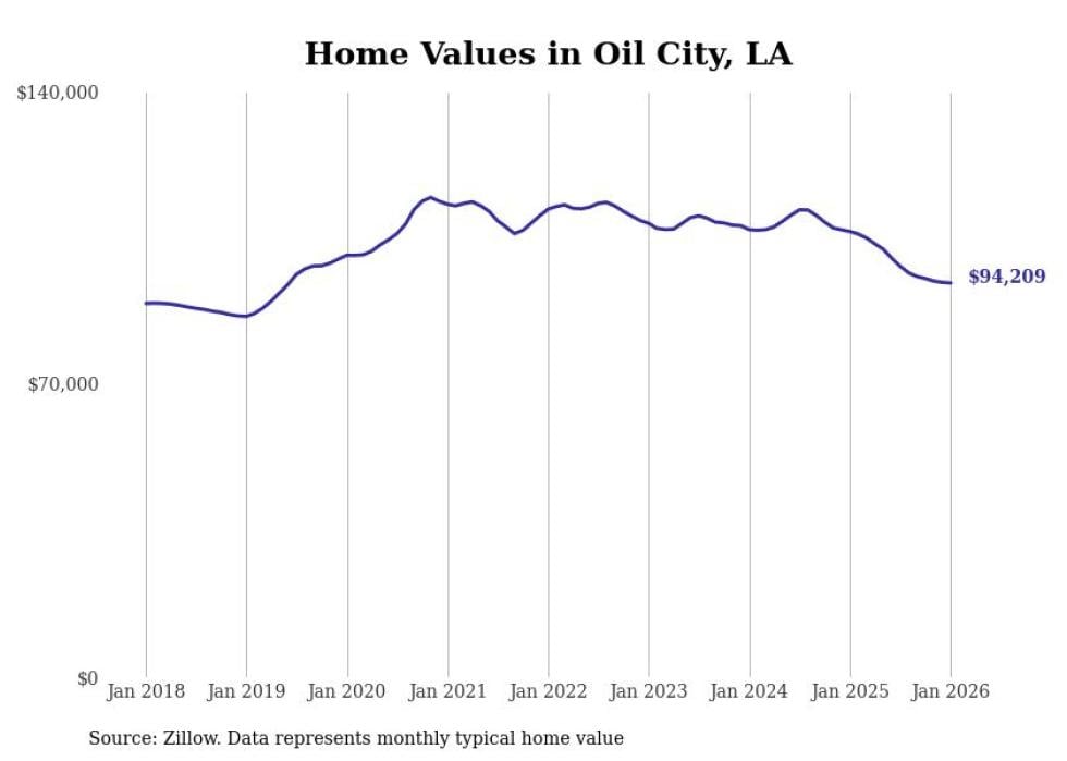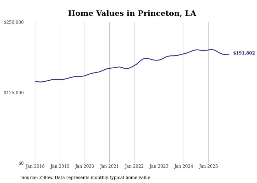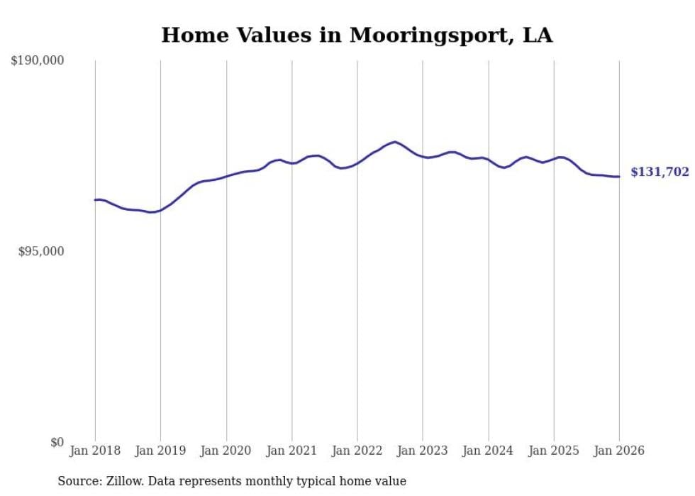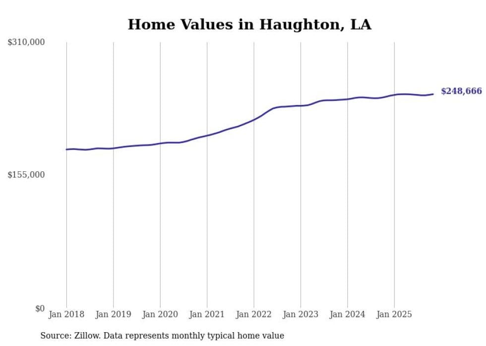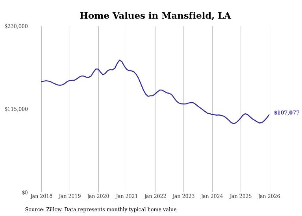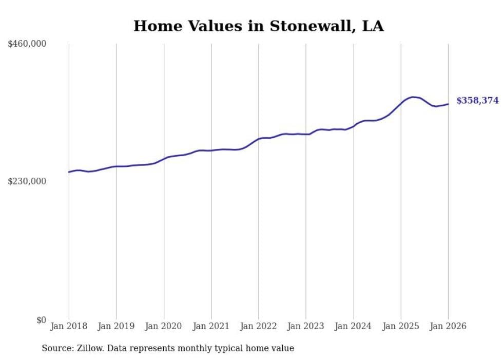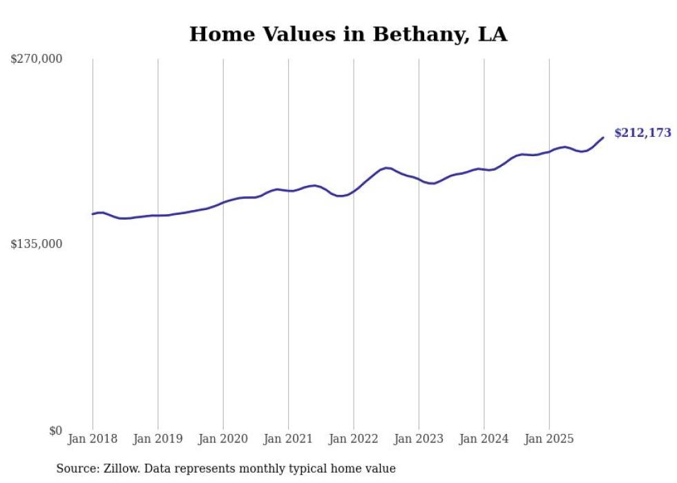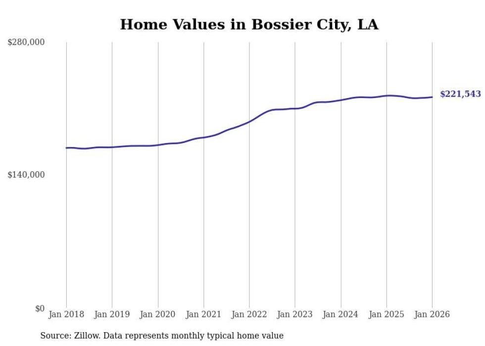 Stacker compiled a list of cities with the most expensive homes in the Shreveport metro area using data from Zillow. Charts show the monthly typical home value since January 2018. All 19 cities and towns with data available were included in the list.