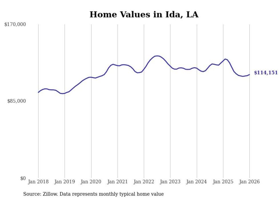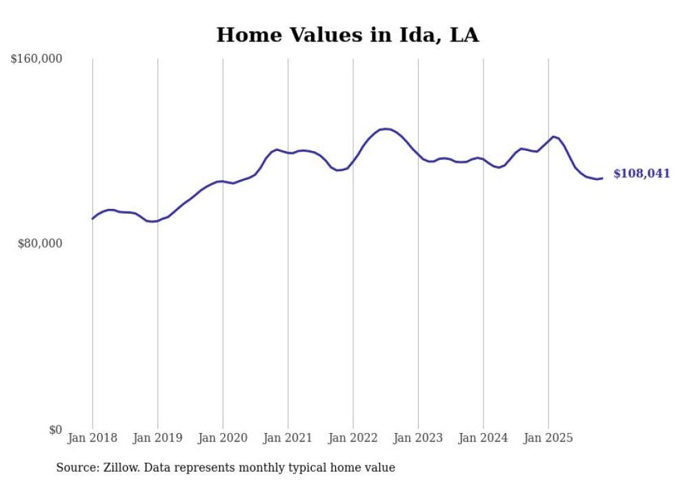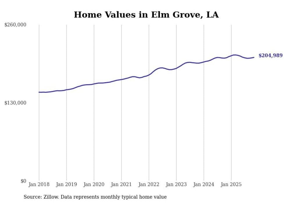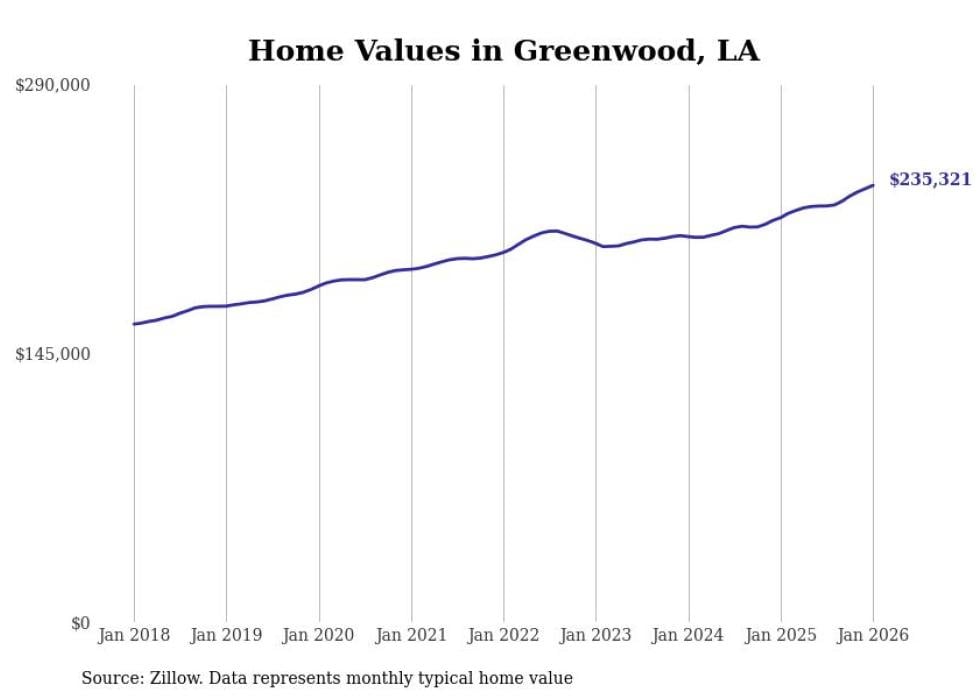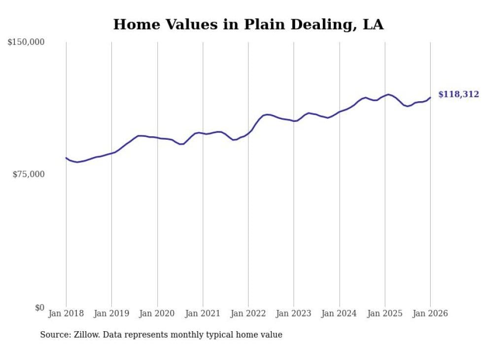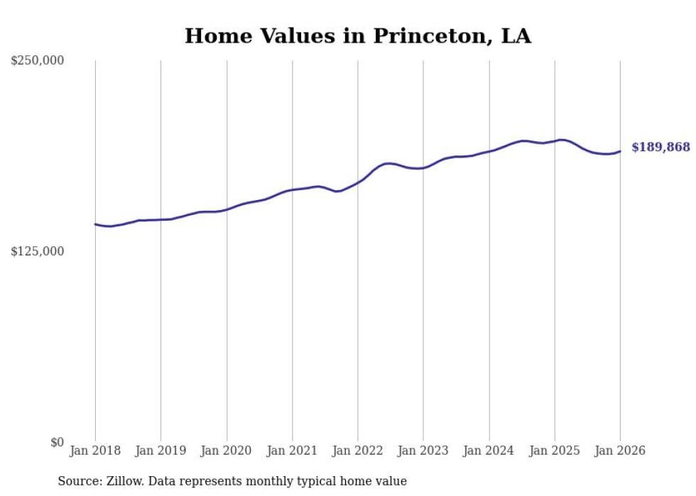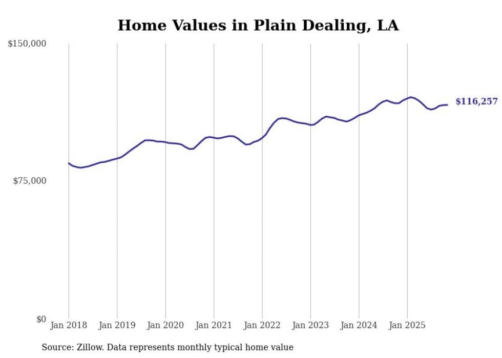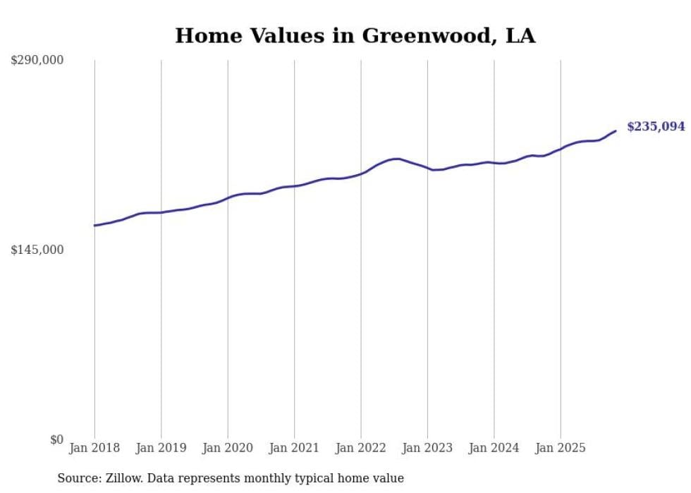 Stacker compiled a list of cities with the most expensive homes in the Shreveport metro area using data from Zillow. Charts show the monthly typical home value since January 2018. All 19 cities and towns with data available were included in the list.