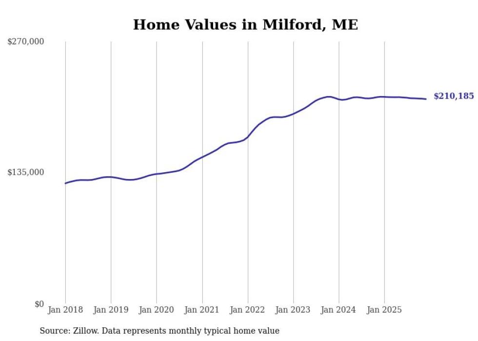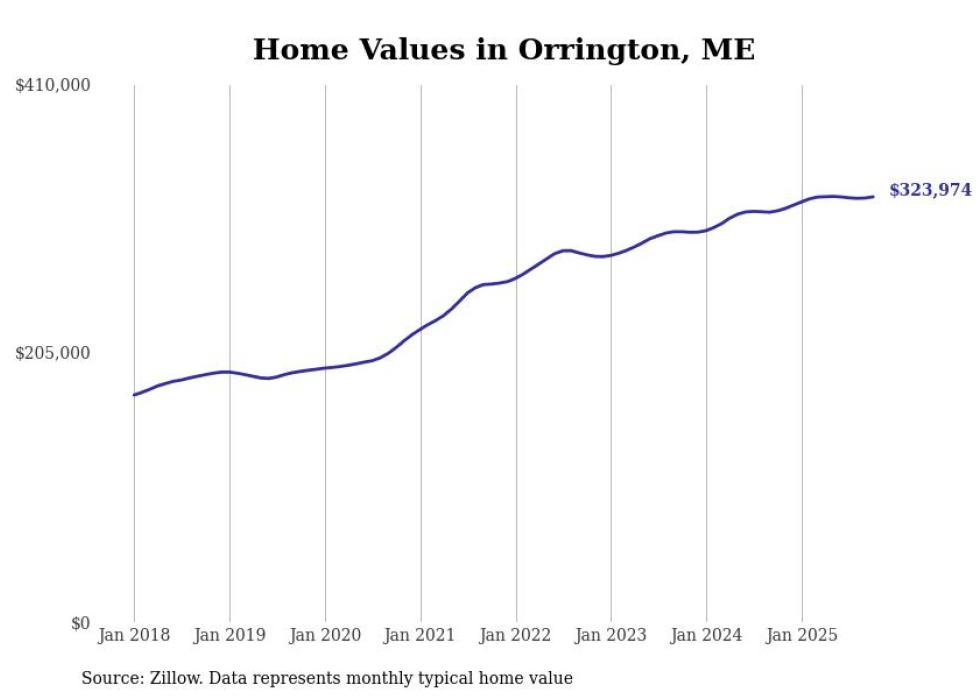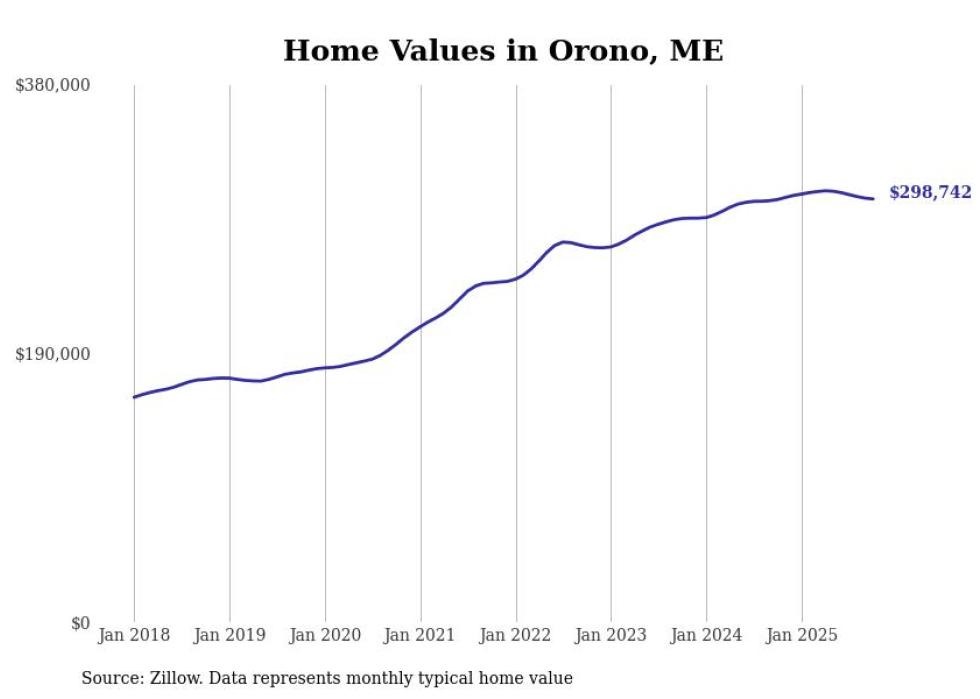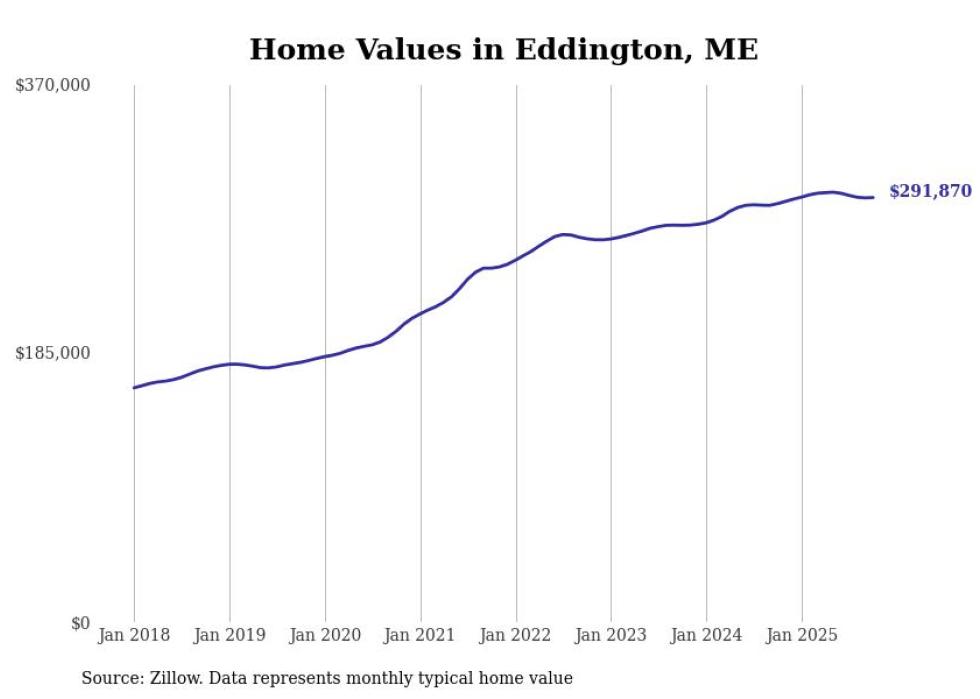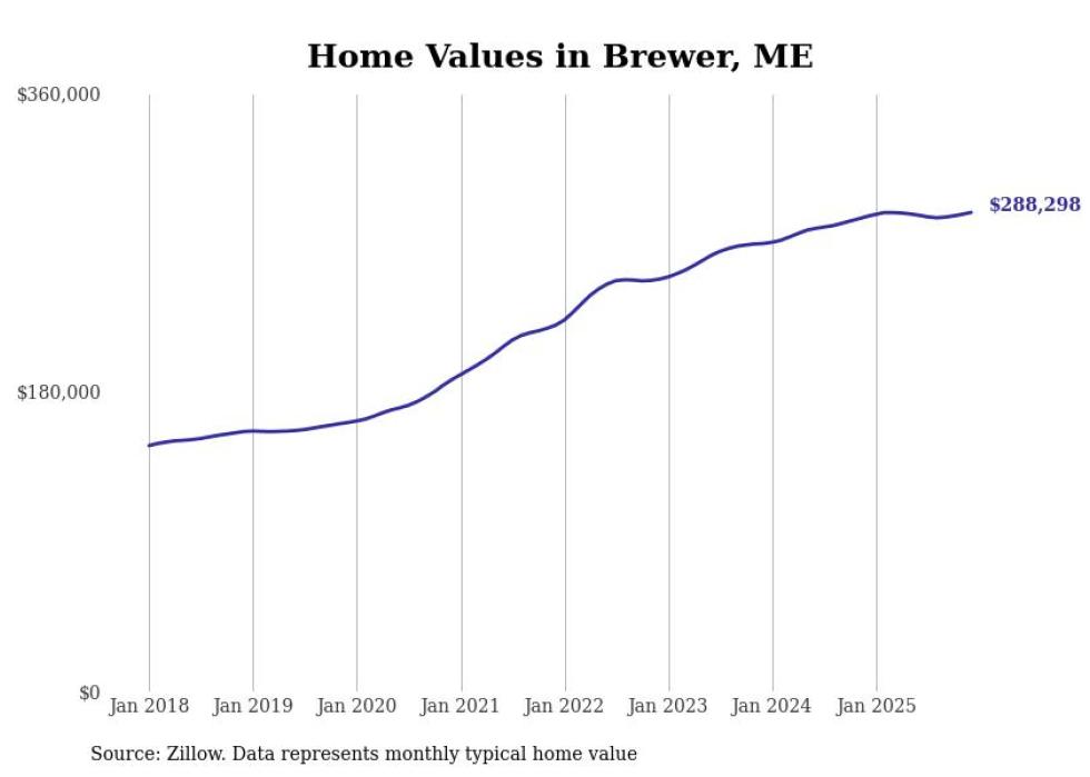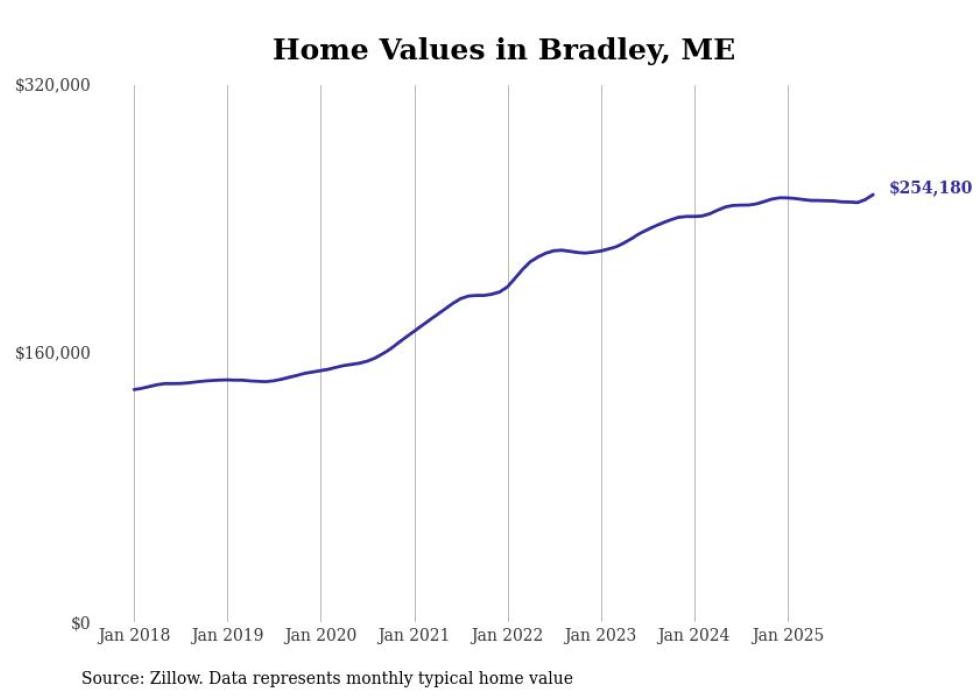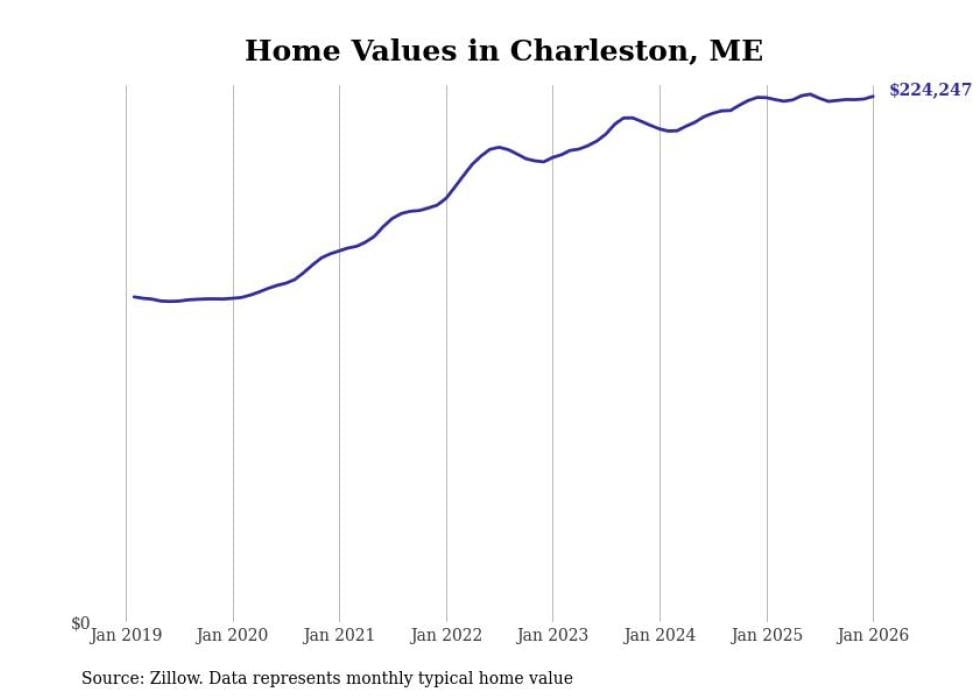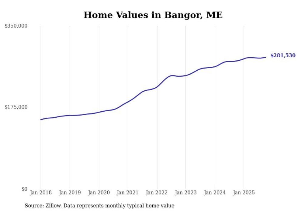 Stacker compiled a list of cities with the most expensive homes in the Bangor, ME metro area using data from Zillow. Charts show the monthly typical home value since January 2018.