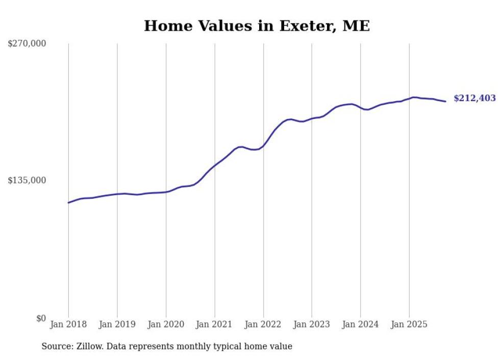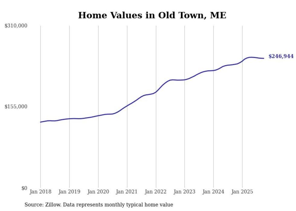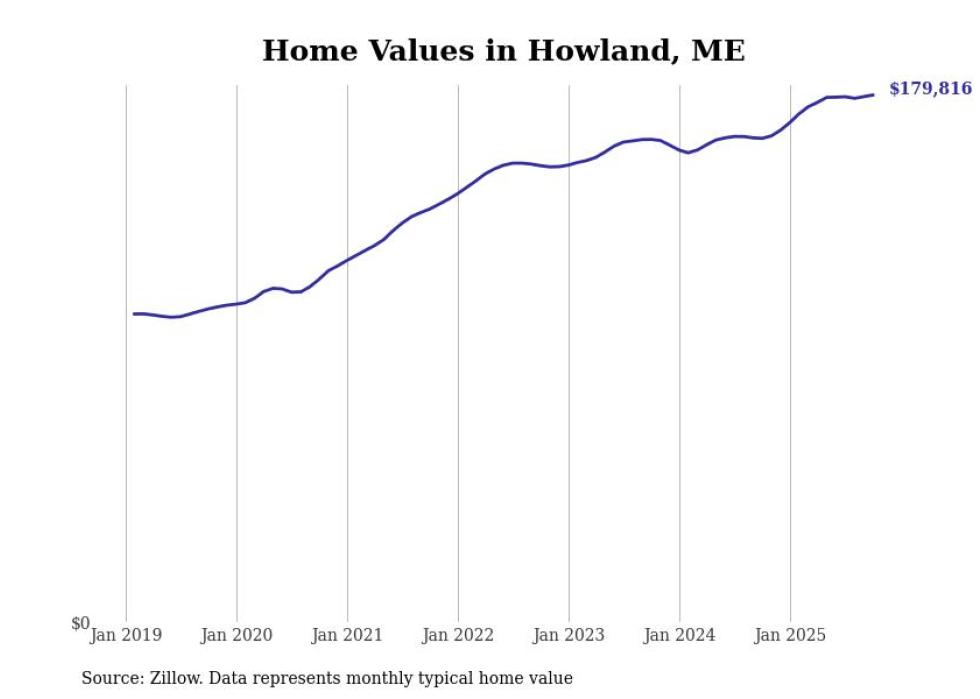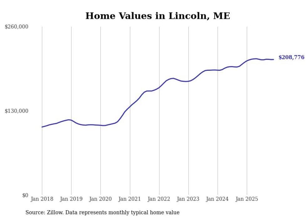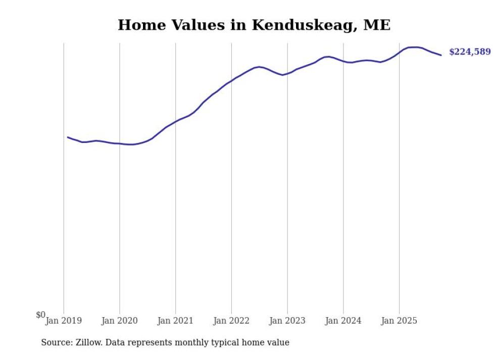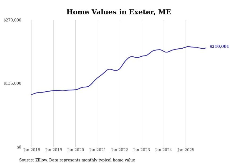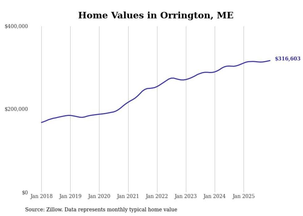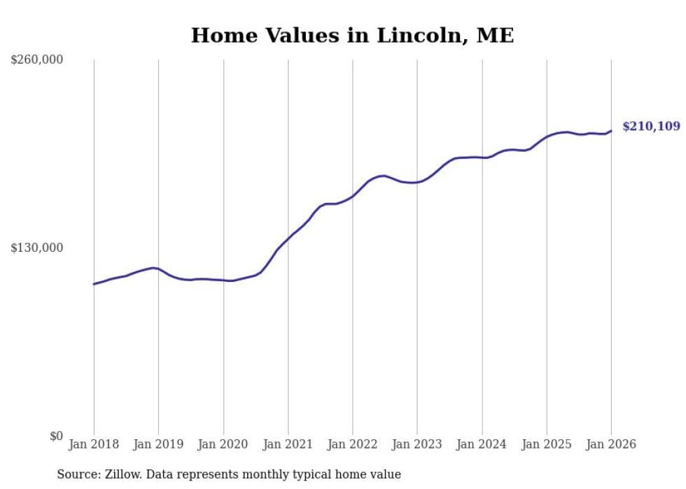 Stacker compiled a list of cities with the most expensive homes in the Bangor, ME metro area using data from Zillow. Charts show the monthly typical home value since January 2018.