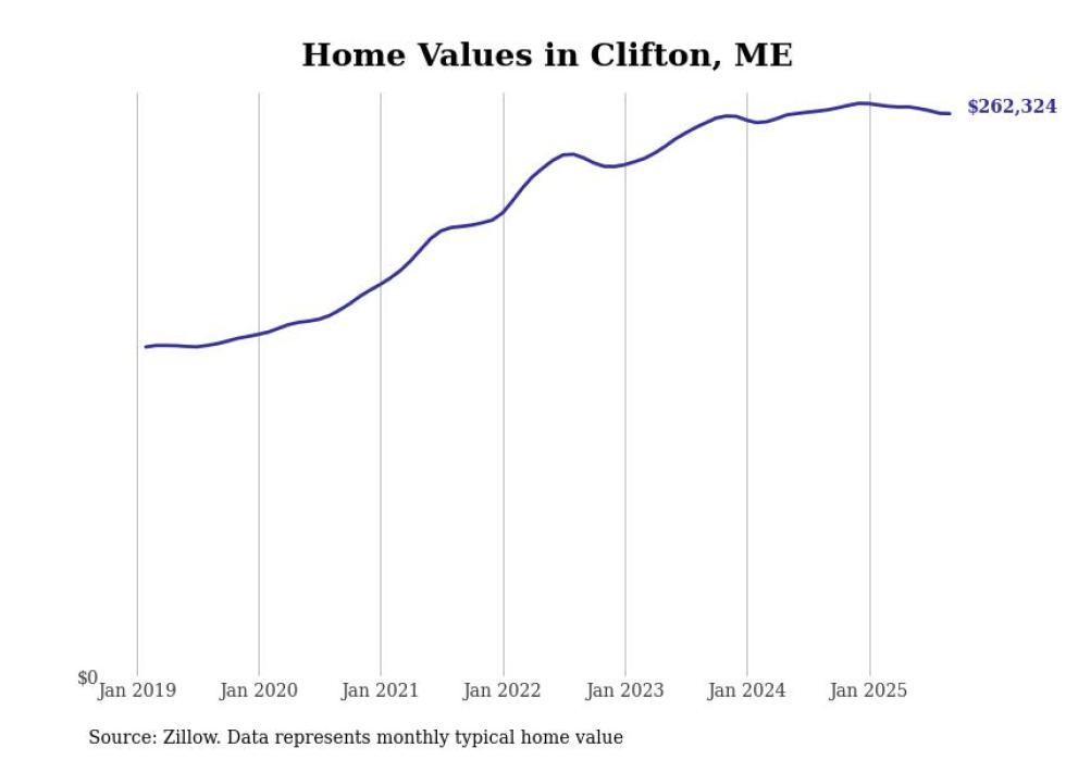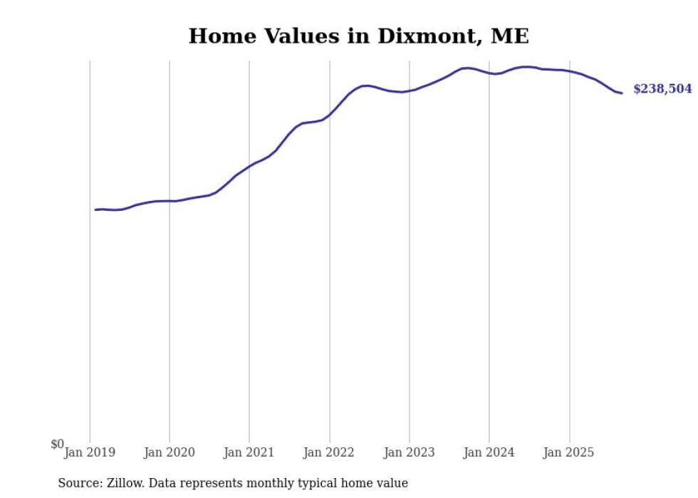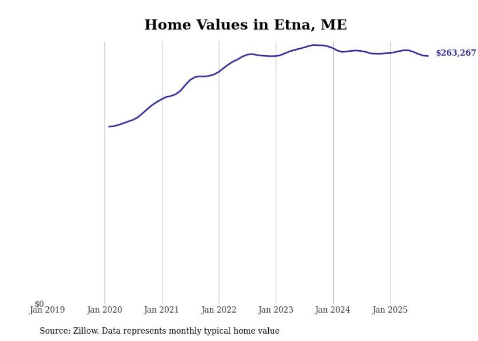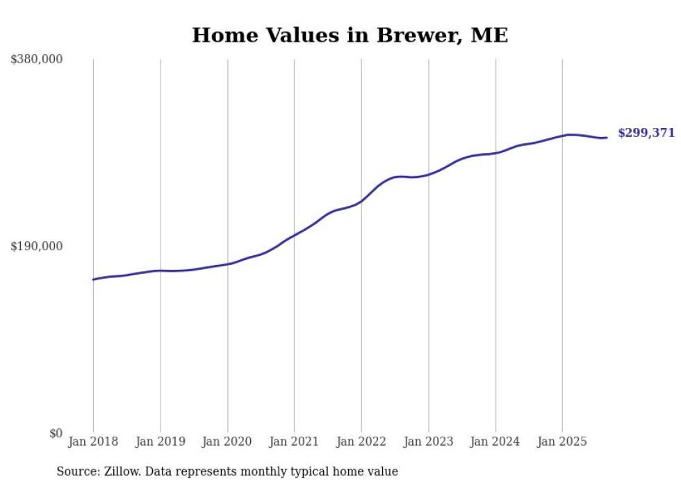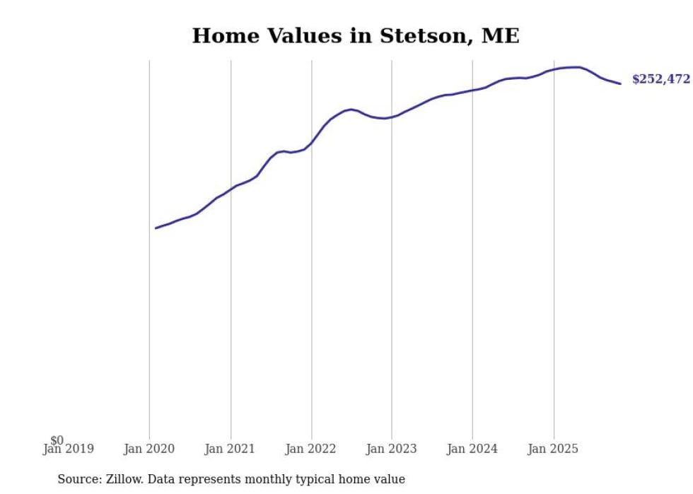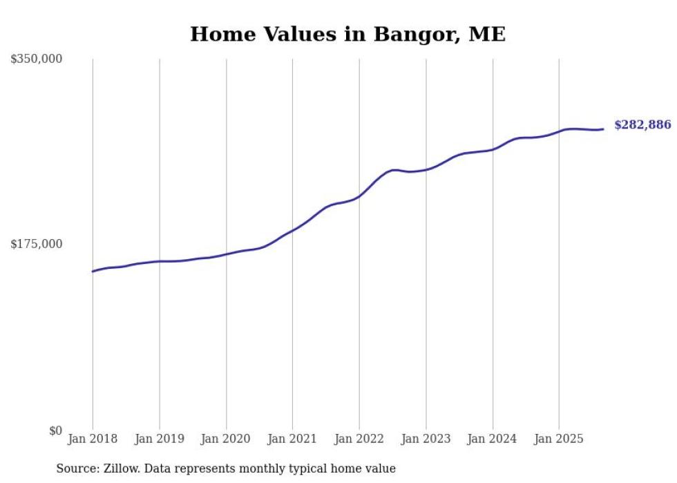 Stacker compiled a list of cities with the most expensive homes in the Bangor metro area using data from Zillow. Charts show the monthly typical home value since January 2018. Data was available for 35 cities and towns.