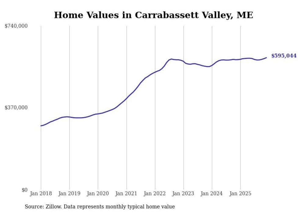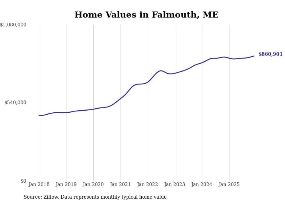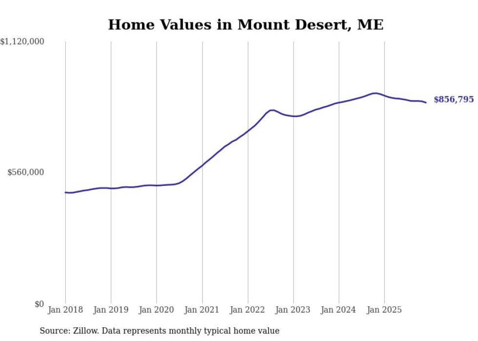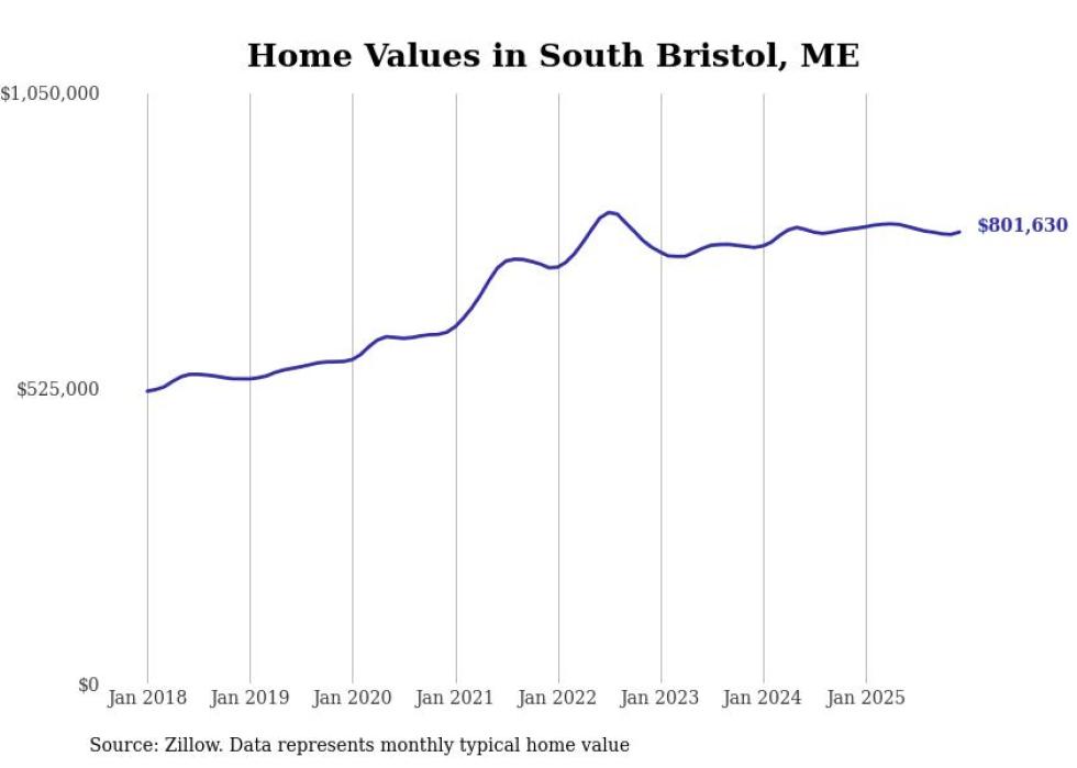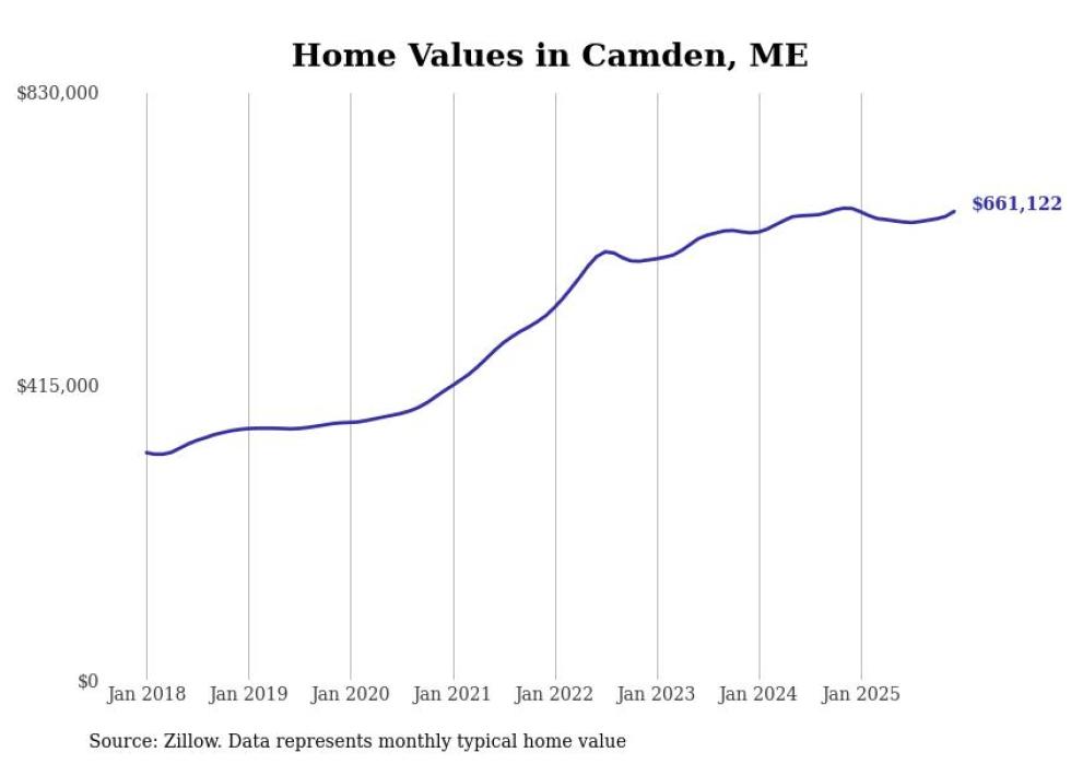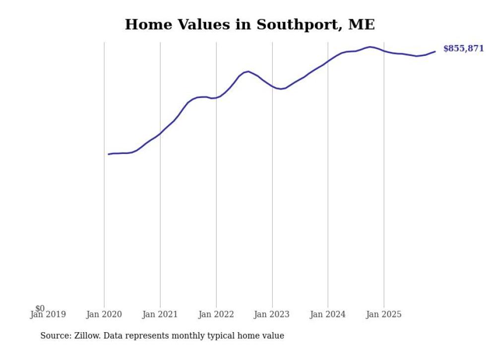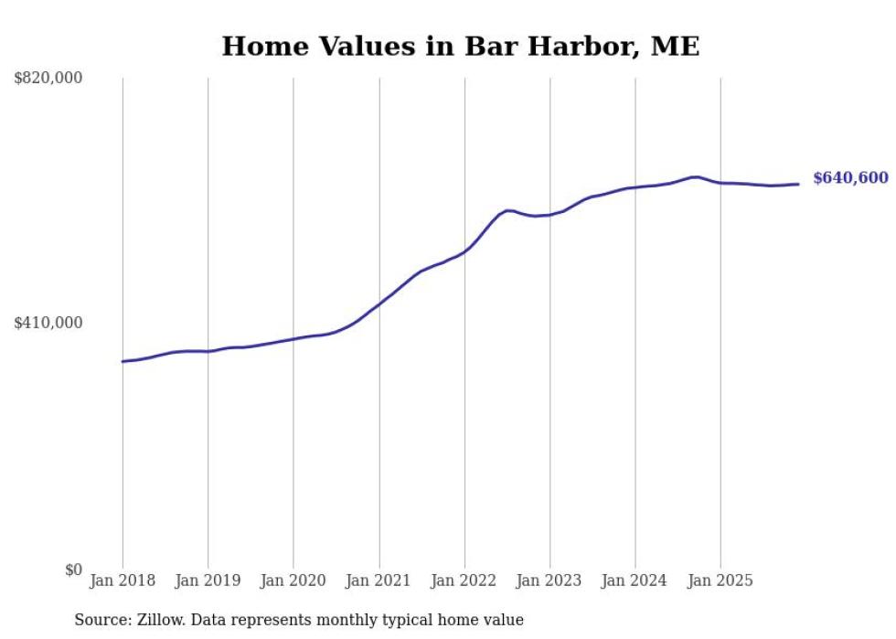 Stacker compiled a list of cities with the most expensive homes in Maine using data from Zillow. Cities are ranked by the Zillow Home Values Index for all homes as of December 2025. The charts in this story were created automatically using Matplotlib.