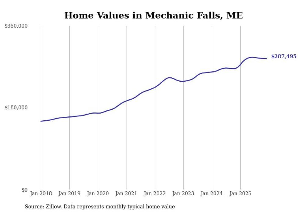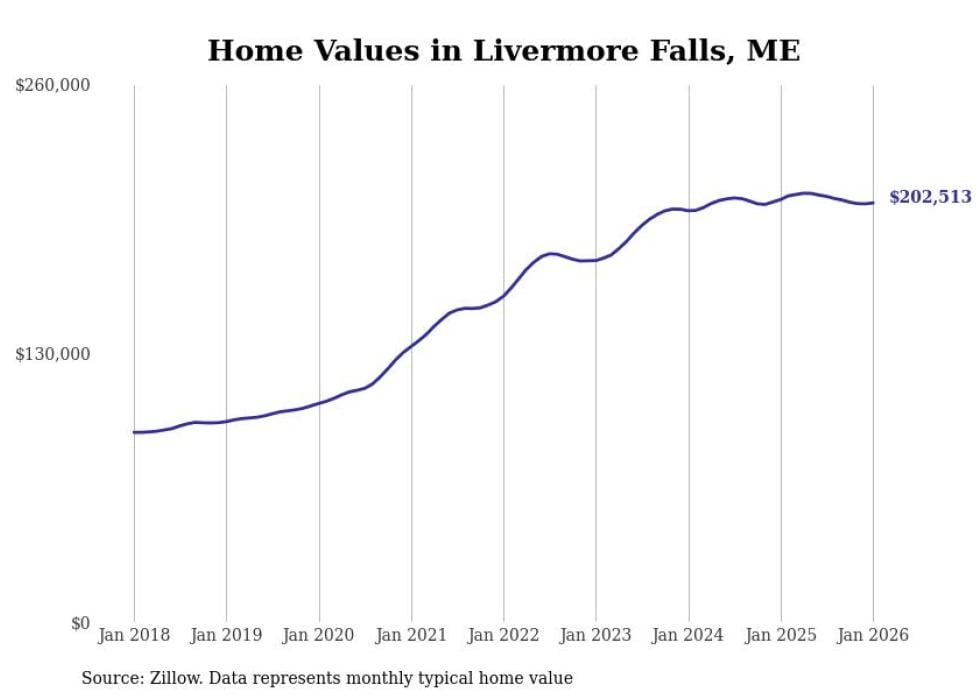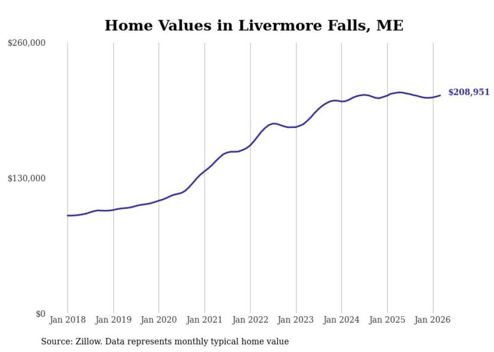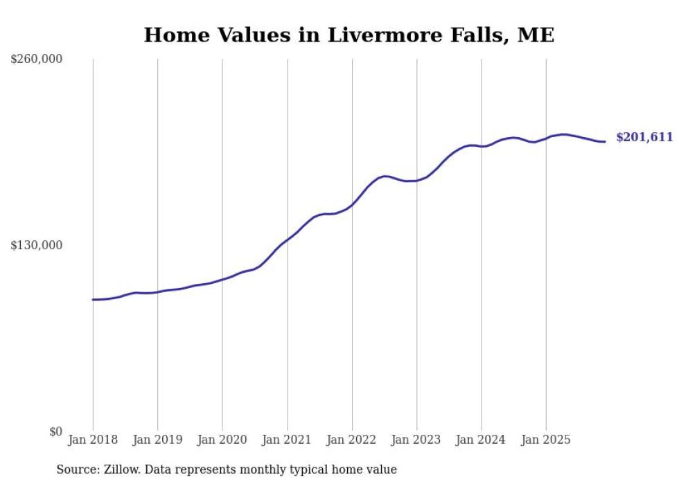 Stacker compiled a list of cities with the most expensive homes in the Lewiston-Auburn, ME metro area using data from Zillow. Charts show the monthly typical home value since January 2018.