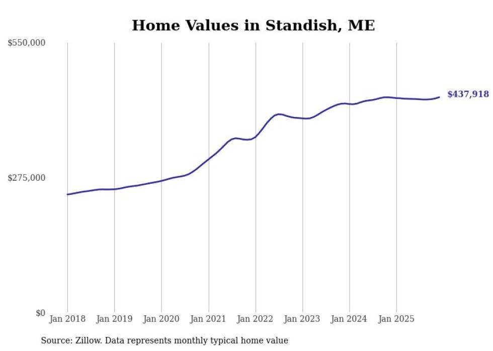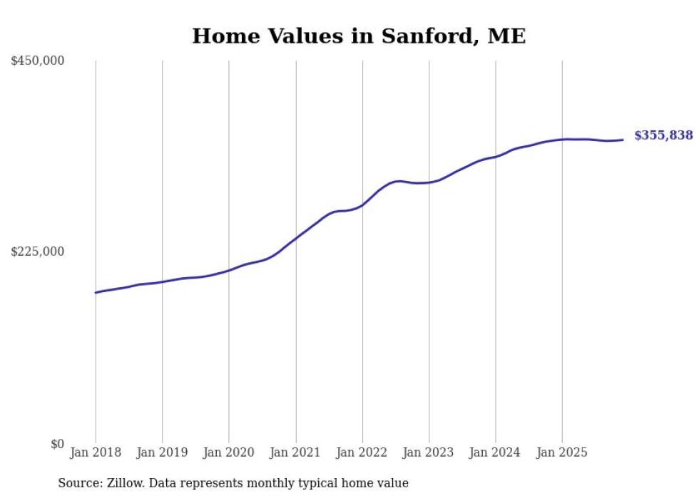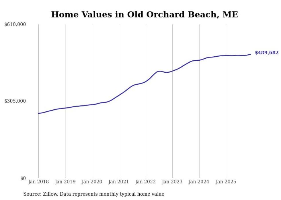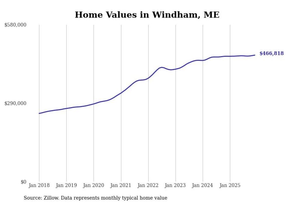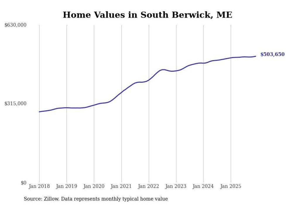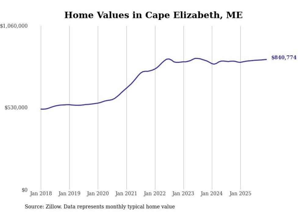 Stacker compiled a list of cities with the most expensive homes in the Portland-South Portland, ME metro area using data from Zillow. Charts show the monthly typical home value since January 2018.