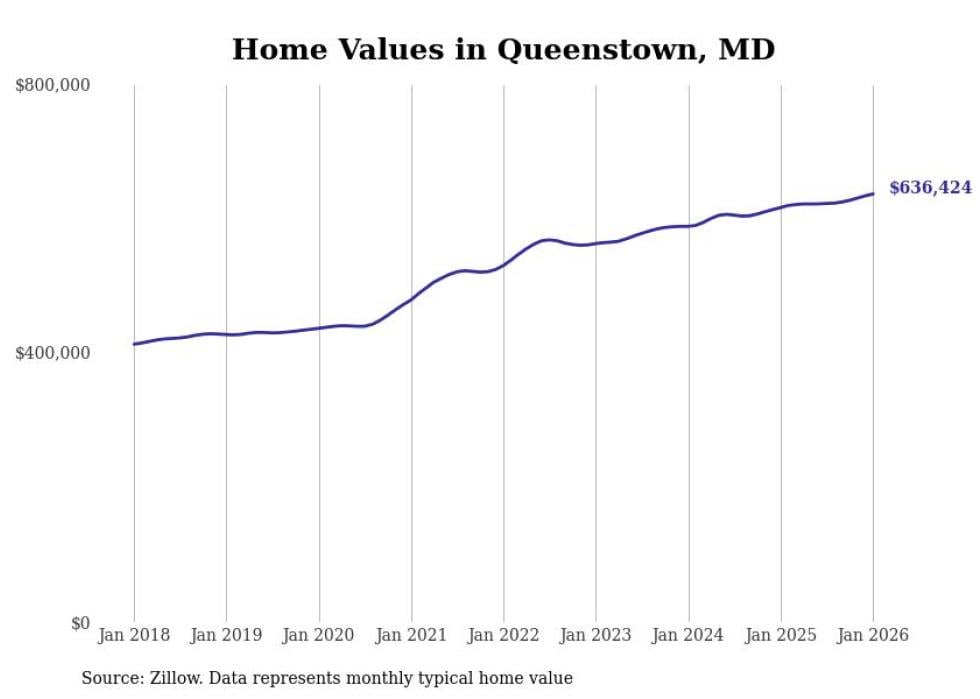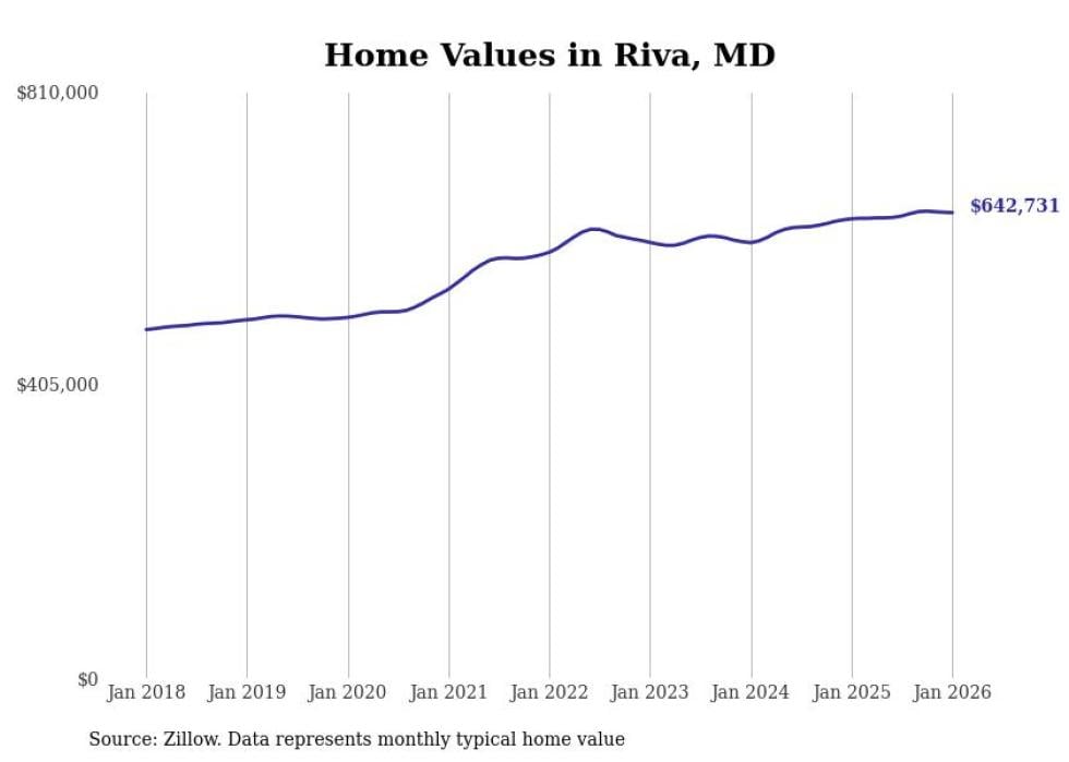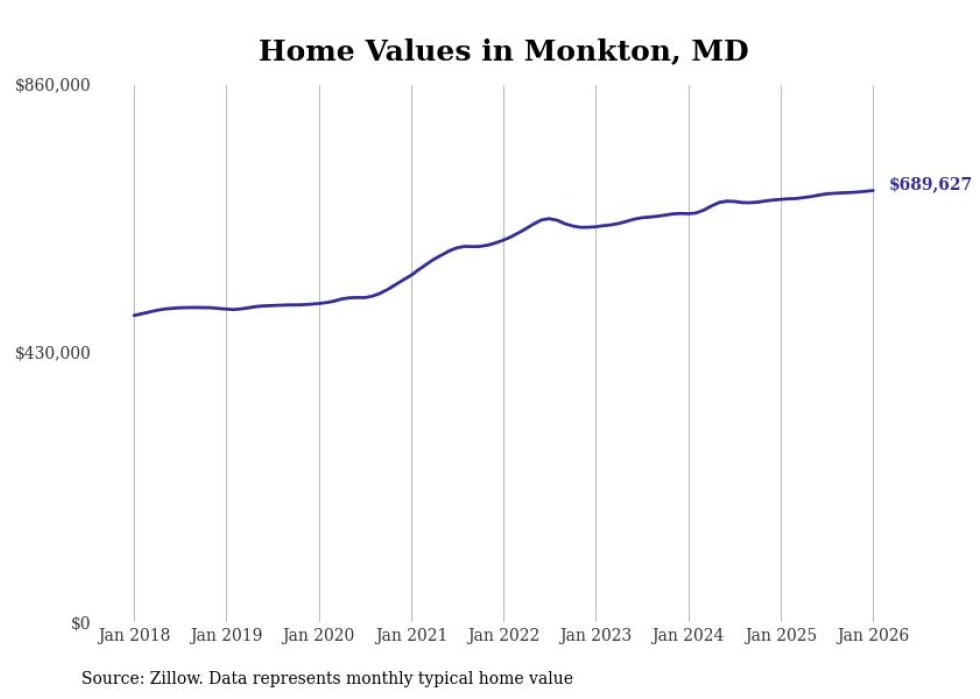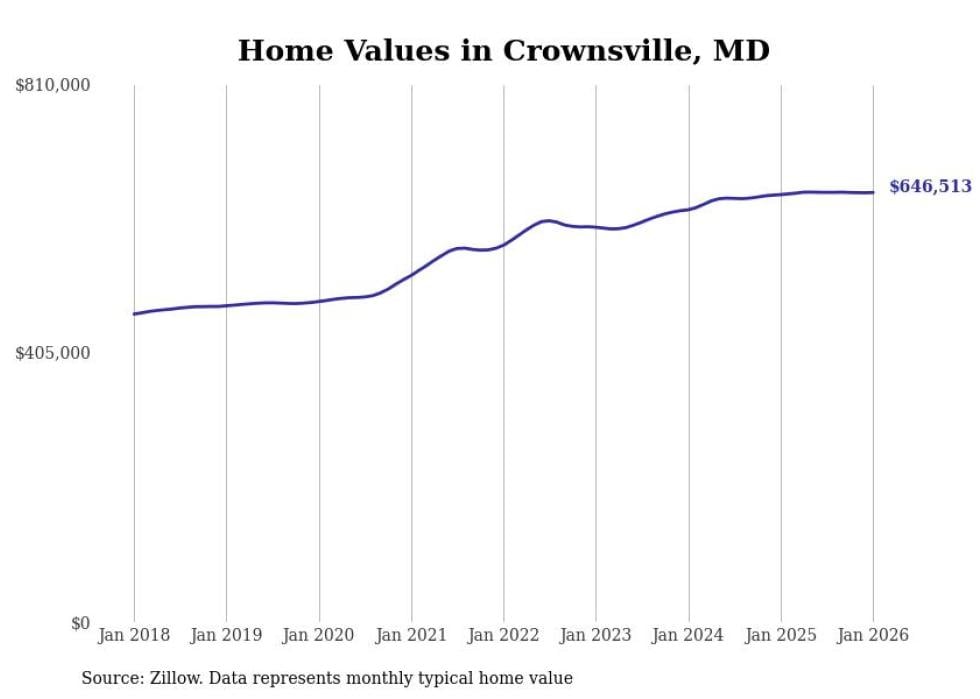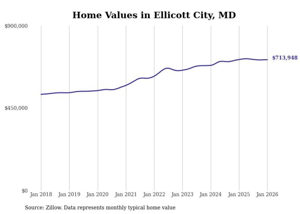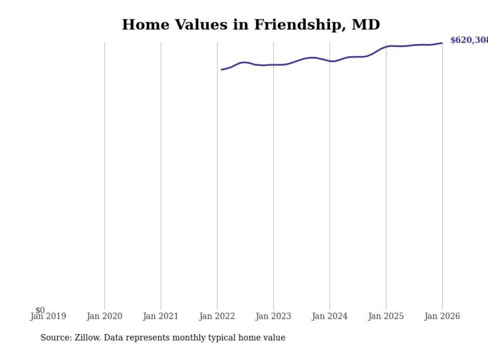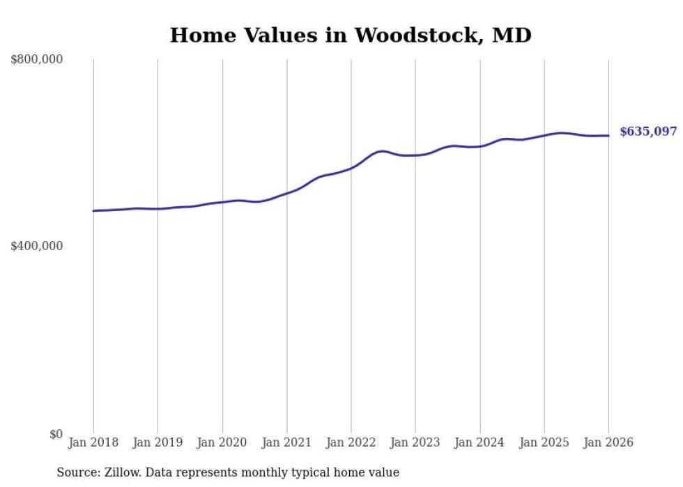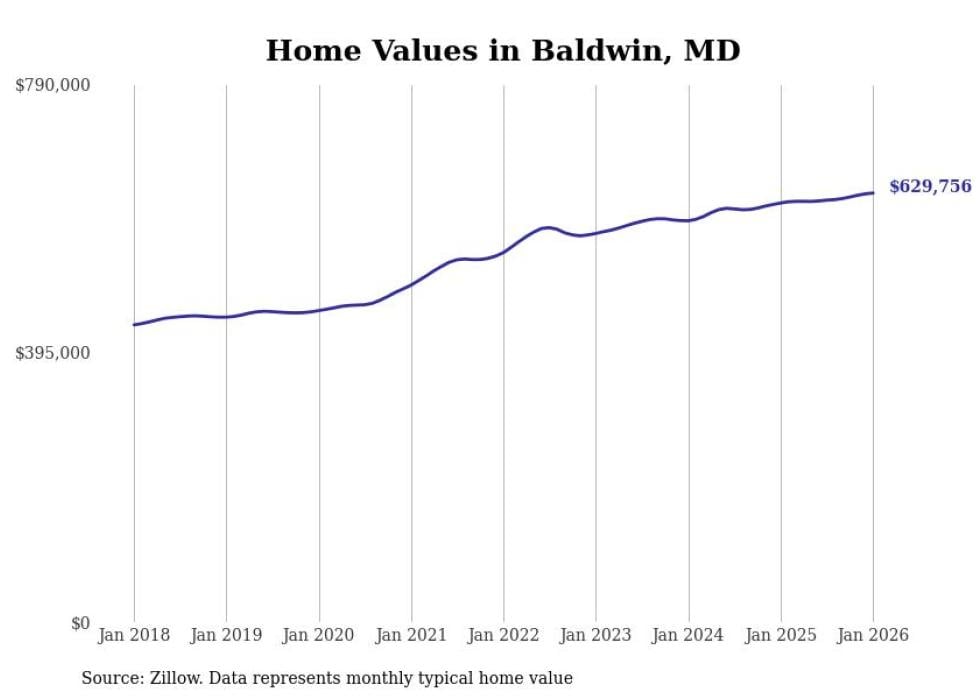 Stacker compiled a list of cities with the most expensive homes in the Baltimore metro area using data from Zillow. Charts show the monthly typical home value since January 2018. Data was available for 114 cities and towns.