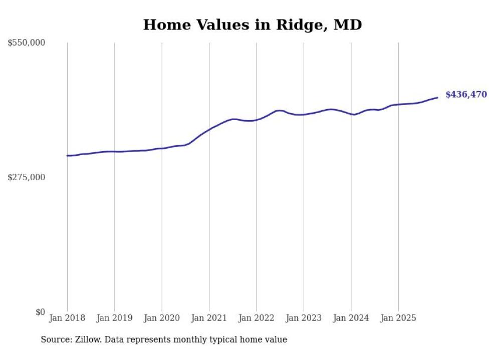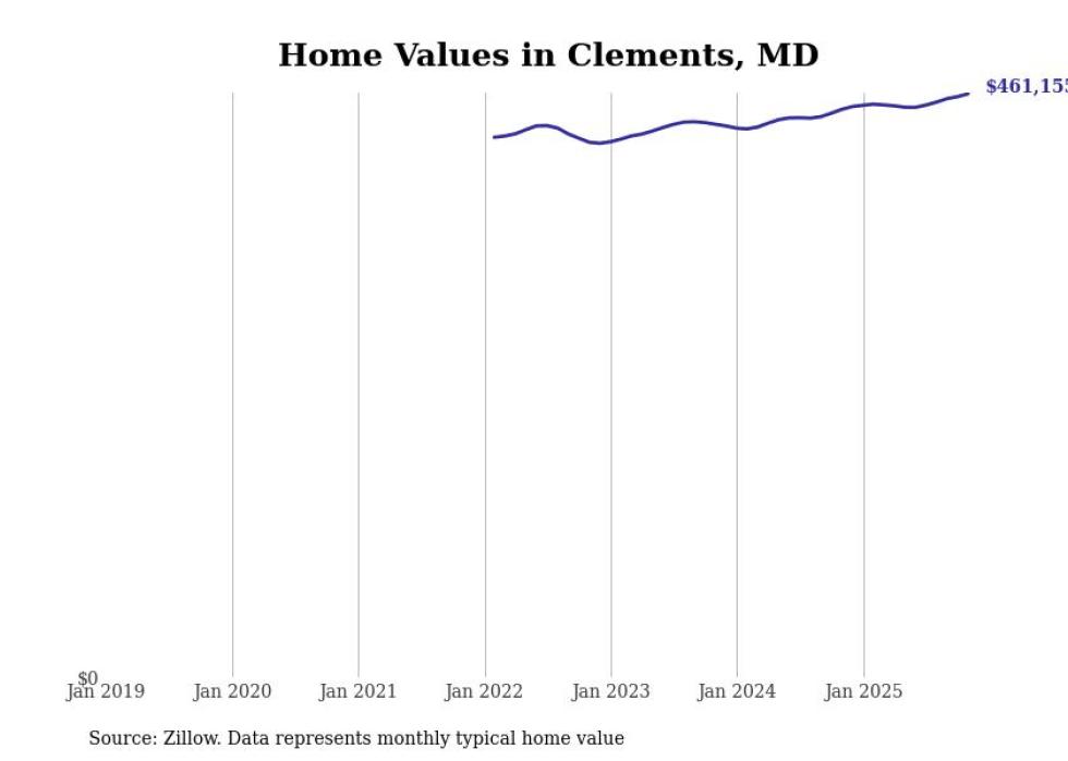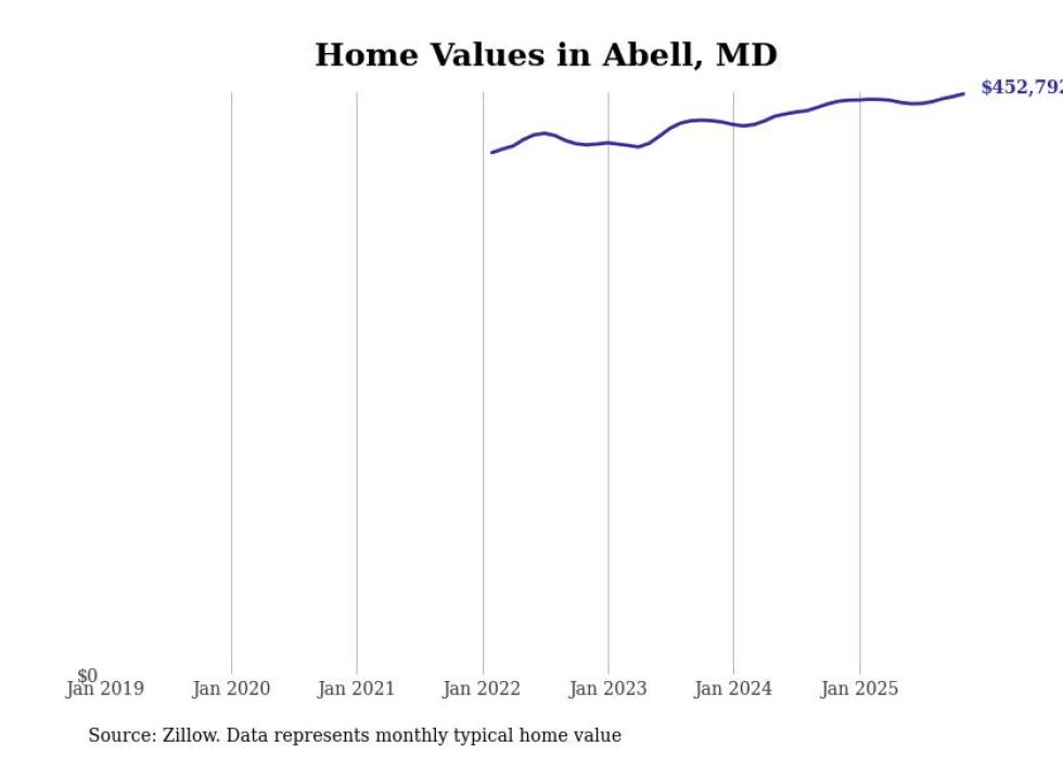 Stacker compiled a list of cities with the most expensive homes in the California-Lexington Park, MD metro area using data from Zillow. Charts show the monthly typical home value since January 2018.