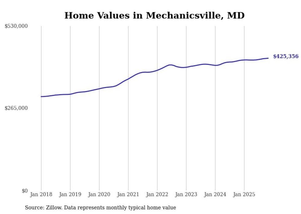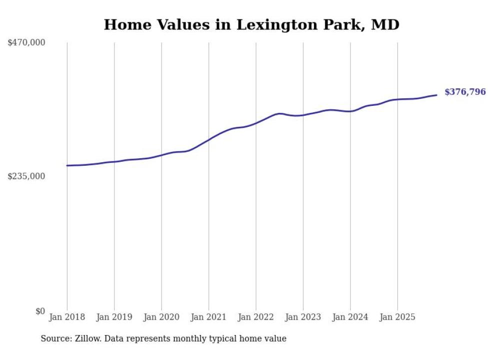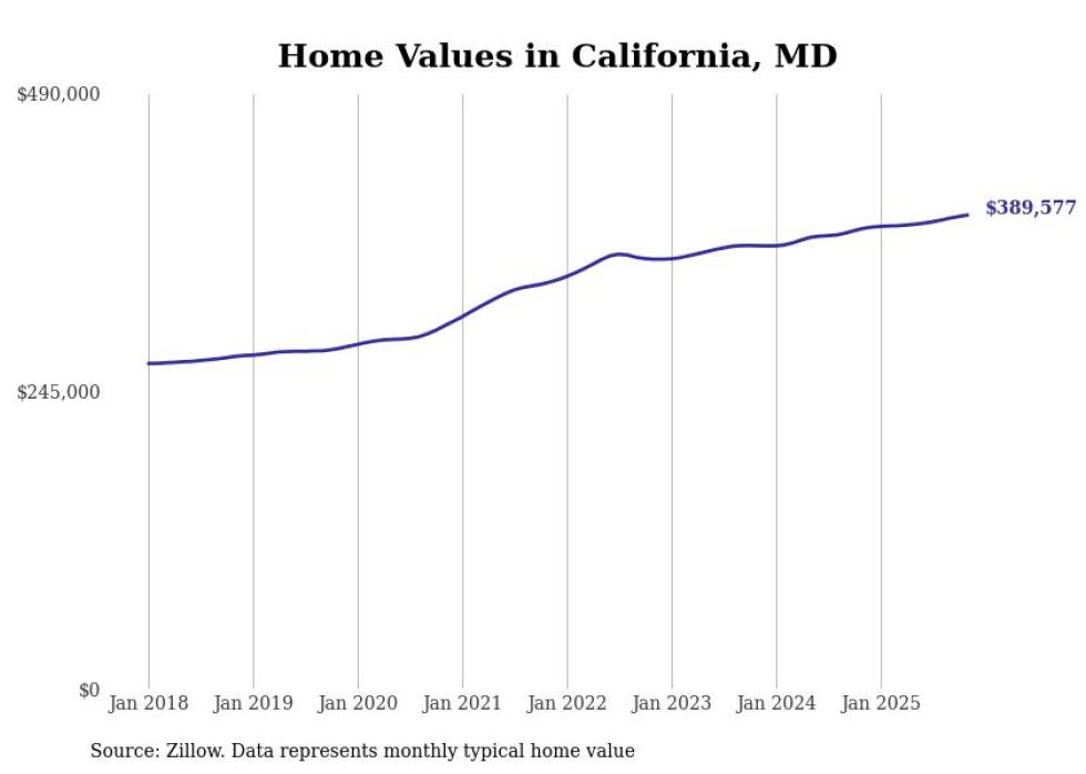 Cities with the fastest-growing home prices in the California, Maryland metro area