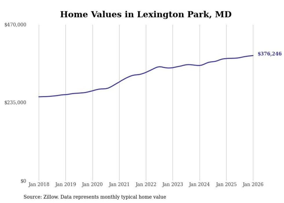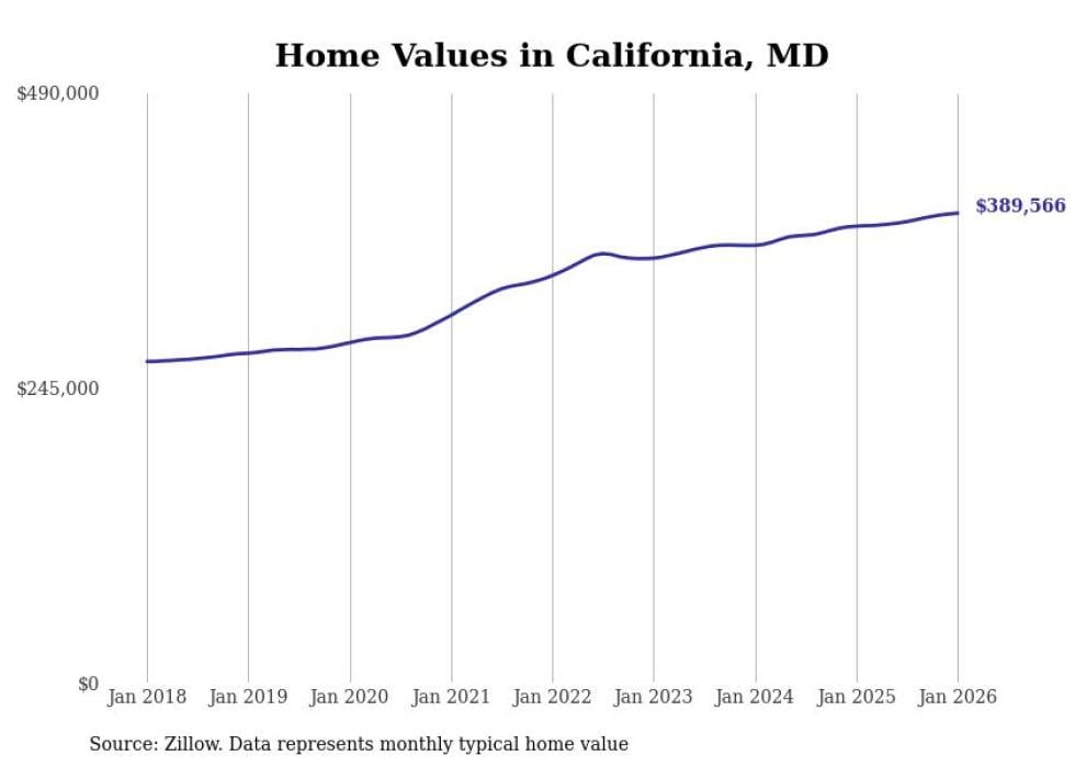 Stacker compiled a list of cities with the most expensive homes in the California, Maryland metro area using data from Zillow. Charts show the monthly typical home value since January 2018. All 22 cities and towns with data available were included in the list.