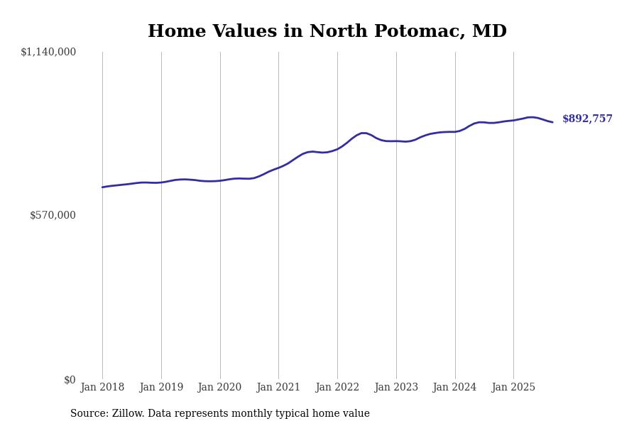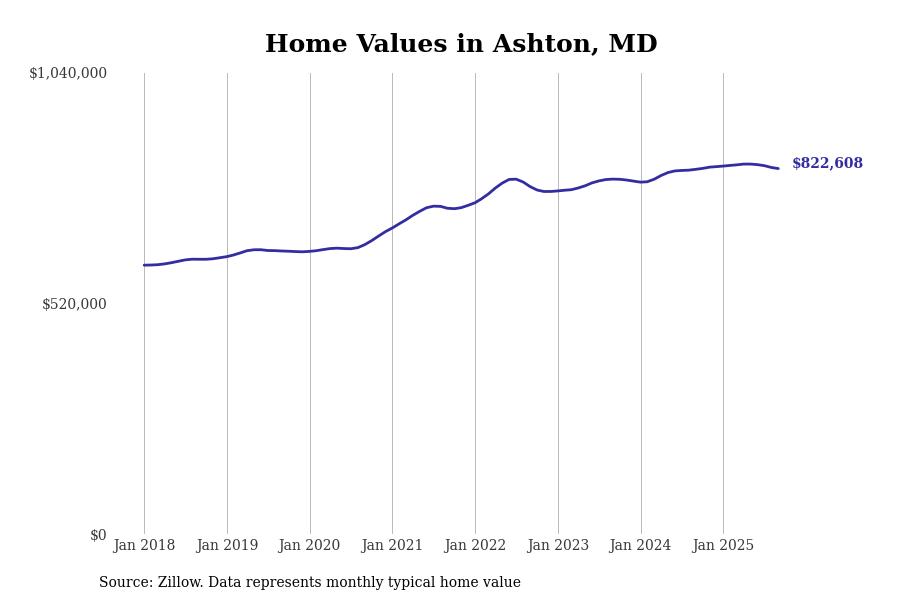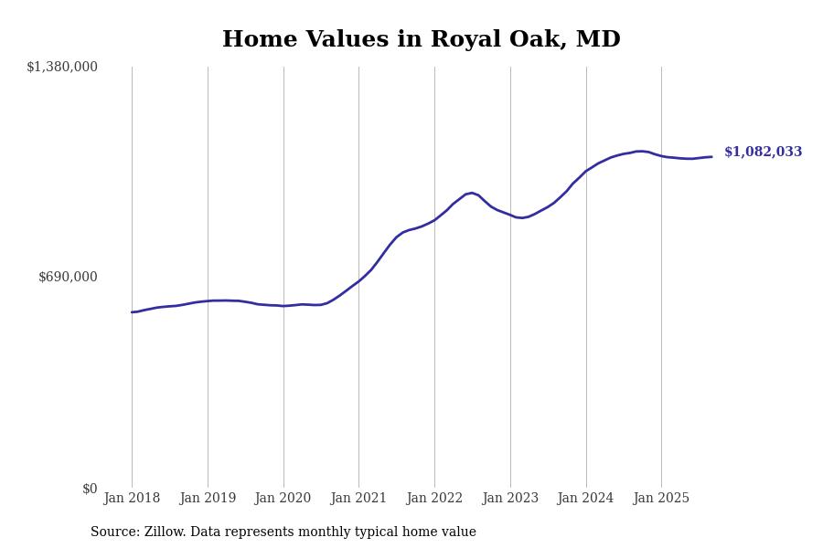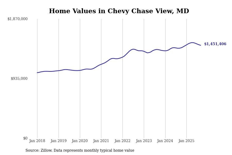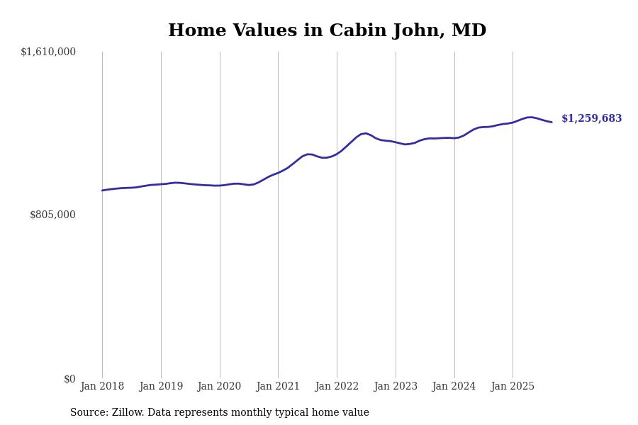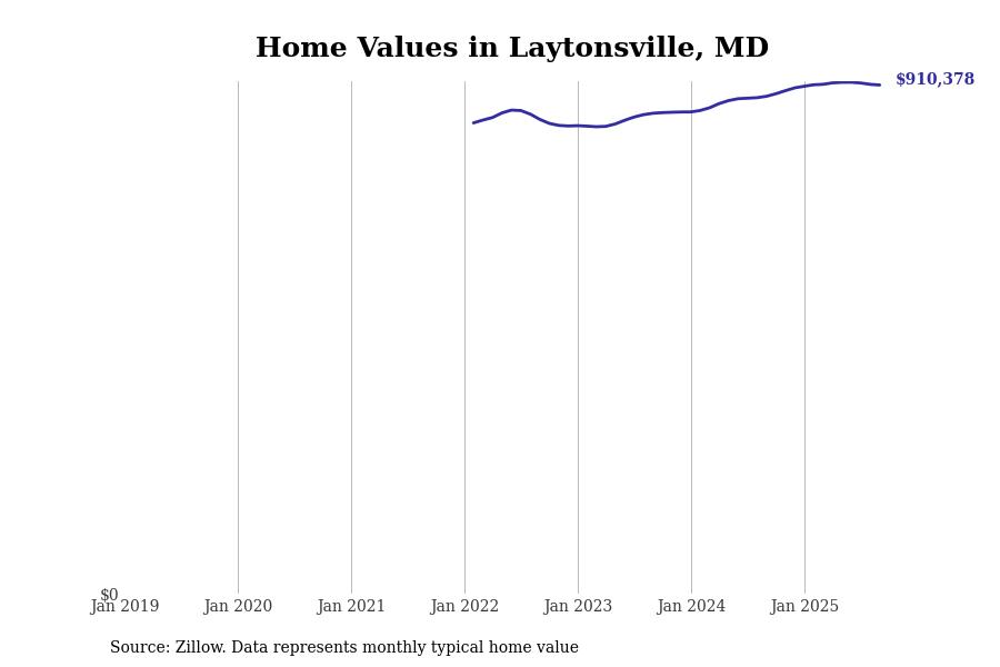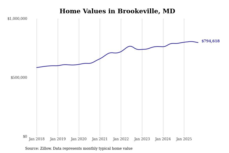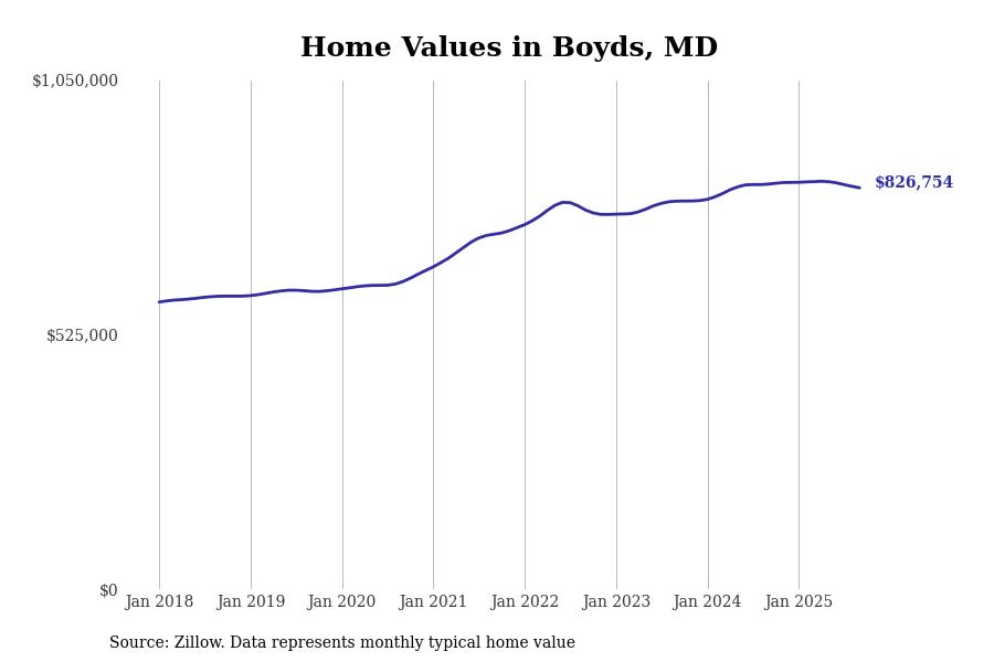 Stacker compiled a list of cities with the most expensive homes in Maryland using data from Zillow. Cities are ranked by the Zillow Home Values Index for all homes as of September 2025. The charts in this story were created automatically using Matplotlib.
