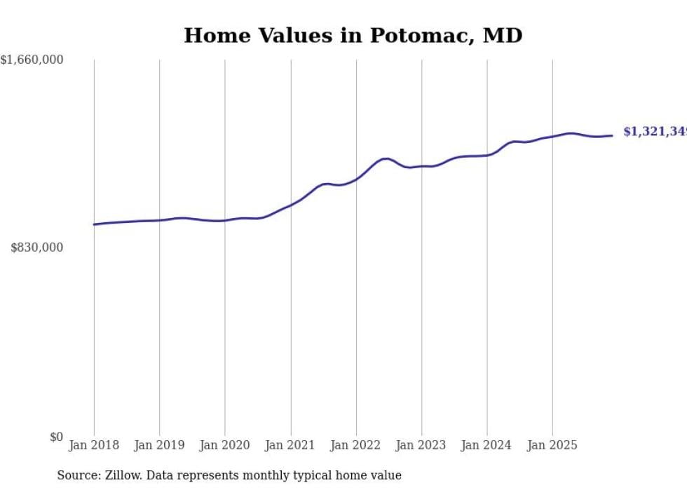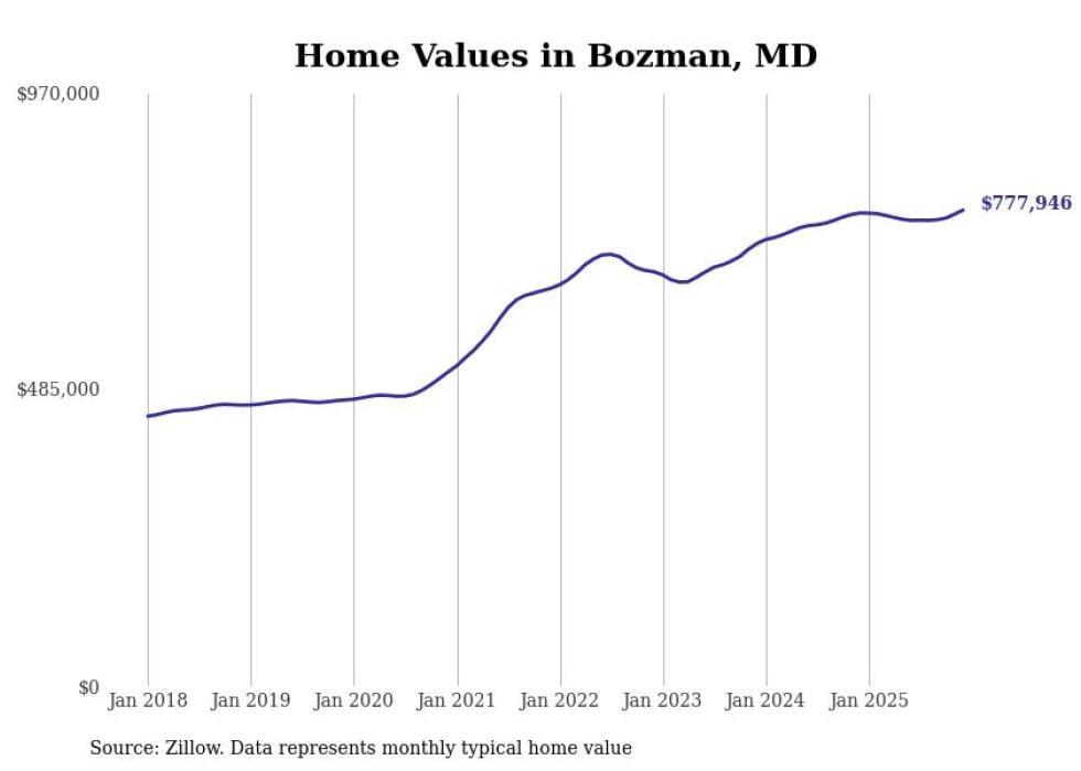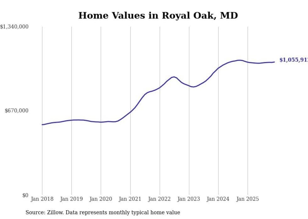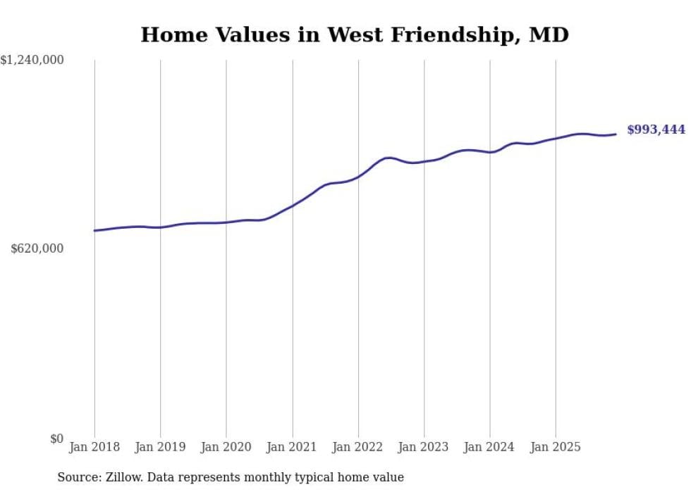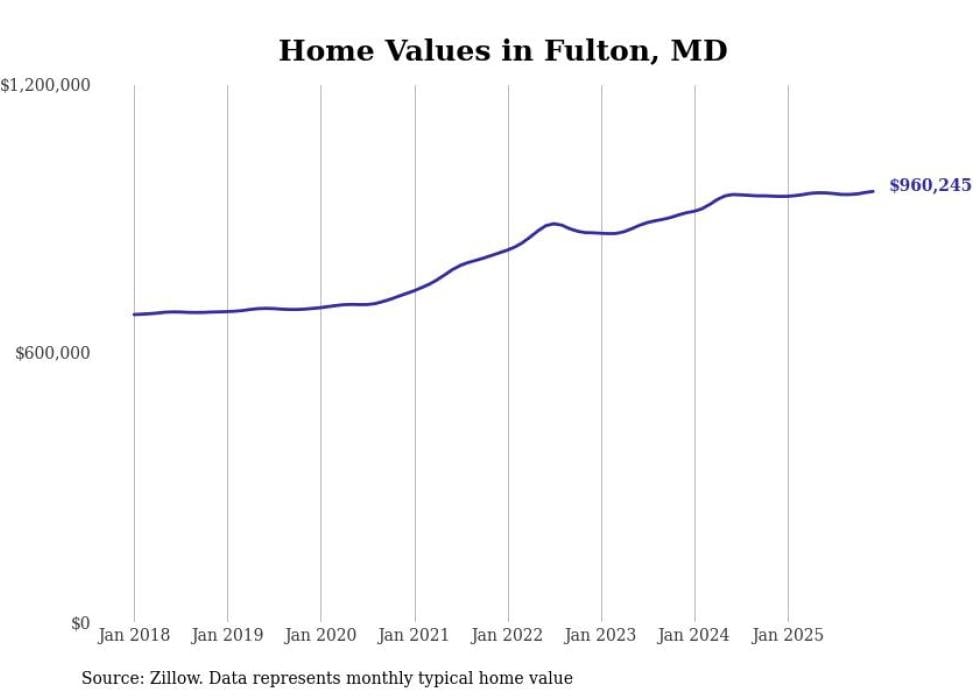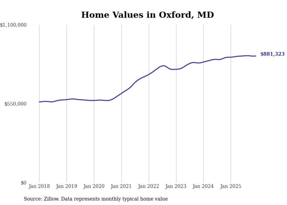 Stacker compiled a list of cities with the most expensive homes in Maryland using data from Zillow. Cities are ranked by the Zillow Home Values Index for all homes as of December 2025. The charts in this story were created automatically using Matplotlib.