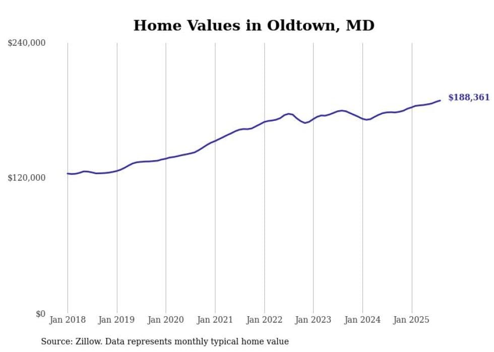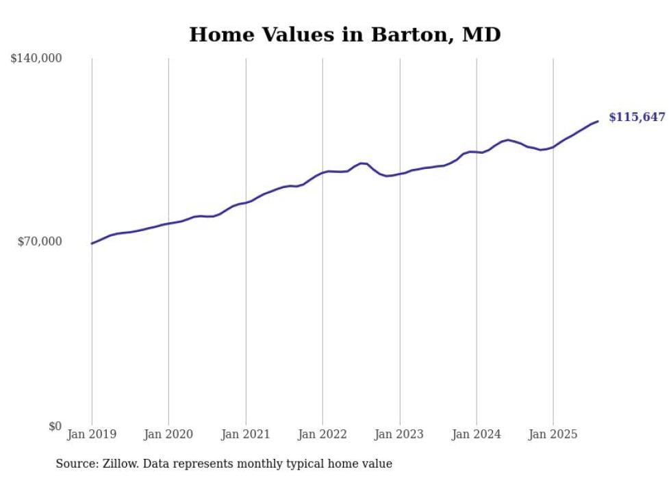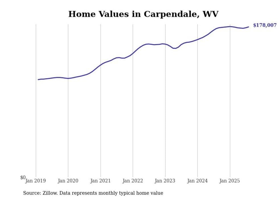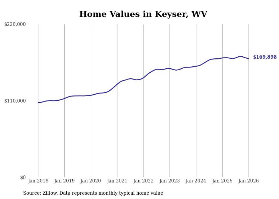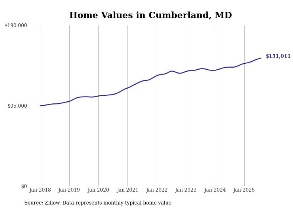 Stacker compiled a list of cities with the most expensive homes in the Cumberland, MD-WV metro area using data from Zillow. Charts show the monthly typical home value since January 2018.