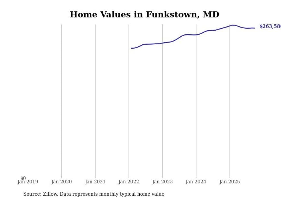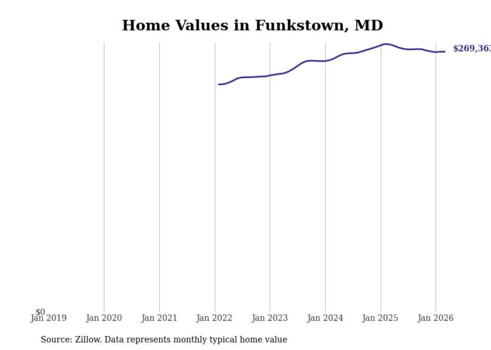 Stacker compiled a list of cities with the most expensive homes in the Hagerstown-Martinsburg, MD-WV metro area using data from Zillow. Charts show the monthly typical home value since January 2018.