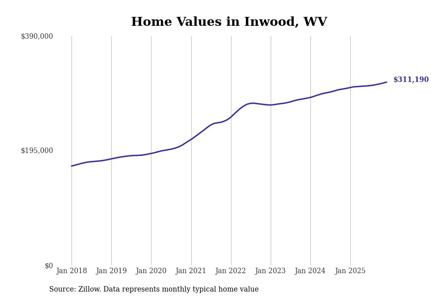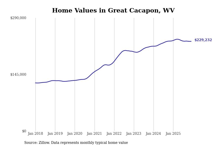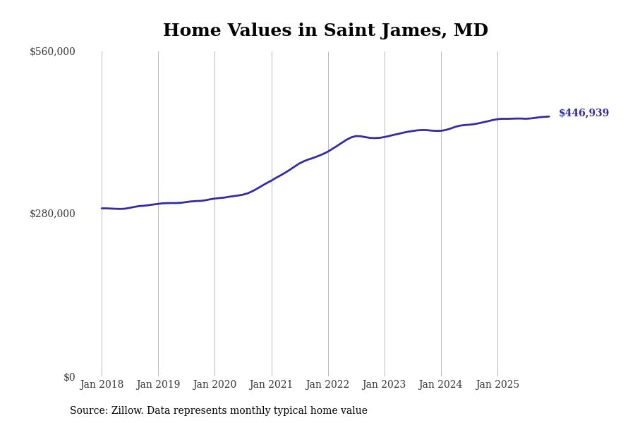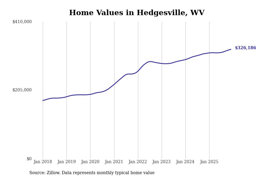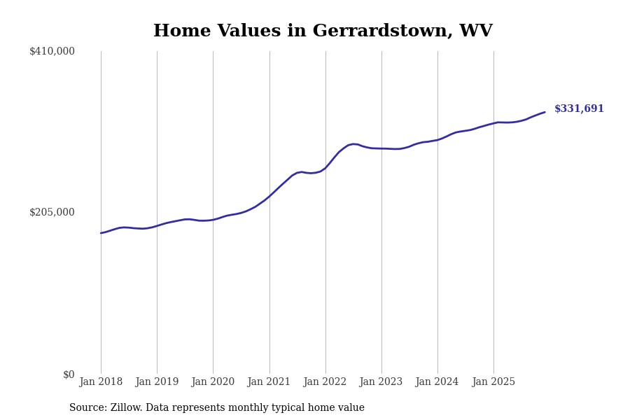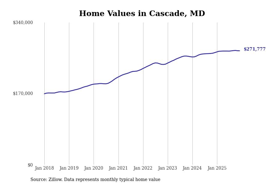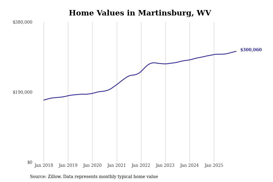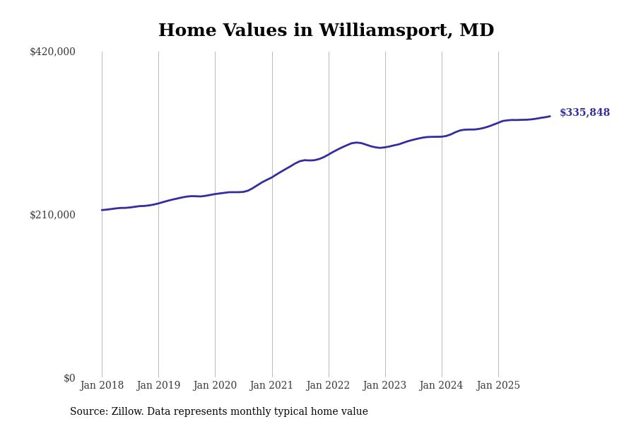 Stacker compiled a list of cities with the most expensive homes in the Hagerstown metro area using data from Zillow. Charts show the monthly typical home value since January 2018. All 29 cities and towns with data available were included in the list.